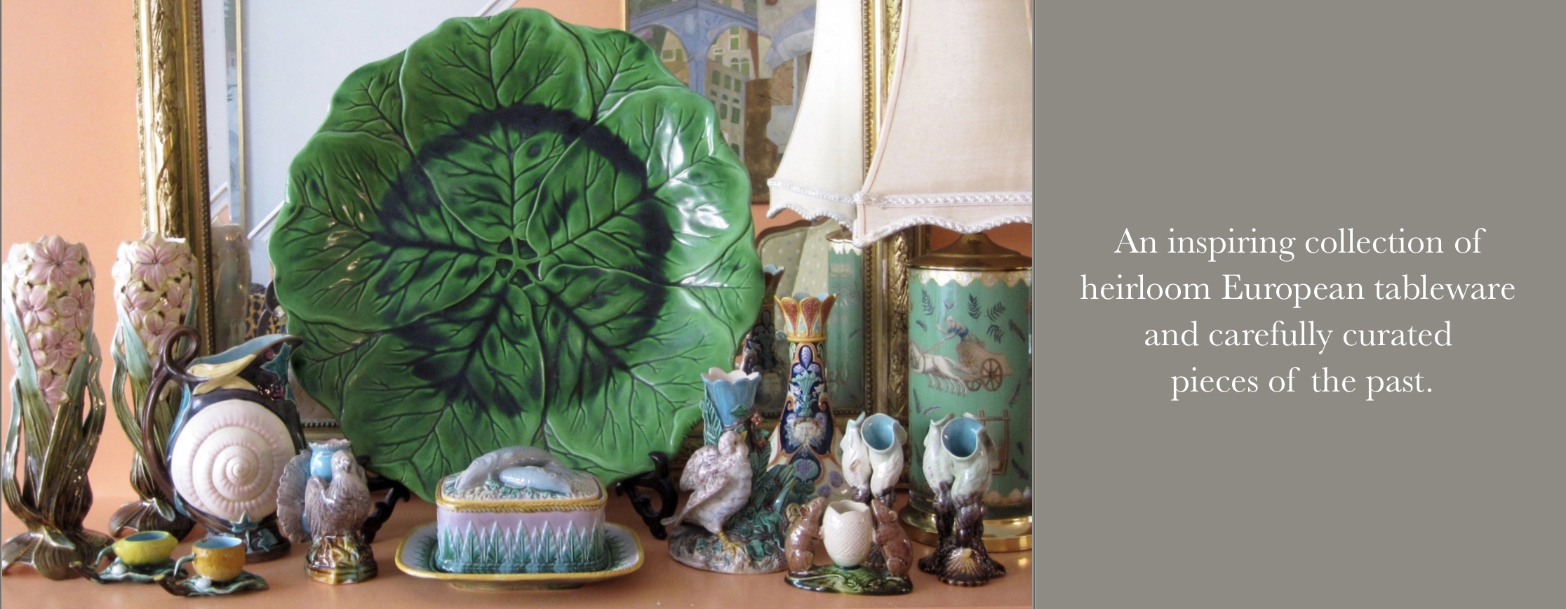 *Home Page Browse our Unique Antiques, Collectibles, and Curiosities. Asparagus Servers Bibelots Ephemera / Textiles Faïence Française Glasses / Barware Majolica Mid-Century Mirrors / Wall Decor Oyster Servers Silver / Cutlery Staffordshire Various Bits & Bobs Insured Store to Door Global Delivery Shipping Fees are calculated by dimension, distance, and carrier rates. You will receive a separate invoice for shipping costs once your order is processed. * All items will remain available for purchase until payment in full, including shipping fees, are received. Your table should be as interesting as the conversation. Shop the Collection
