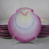 Scallop shell shaped seafood salad plates, a part of Wedgwood’s Nautilus Pearlware dessert service, often marked as R.Pholas Eastatus or V.Pecton Japonicum.
