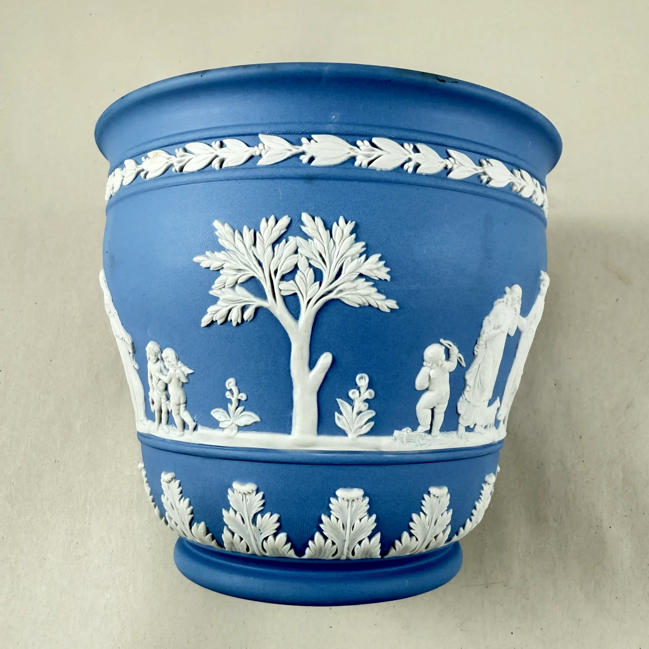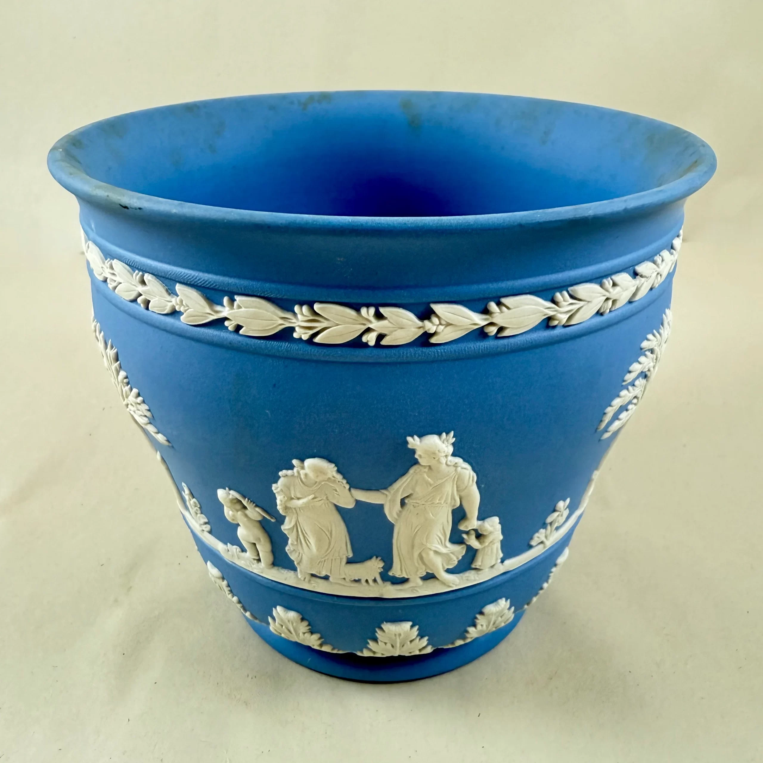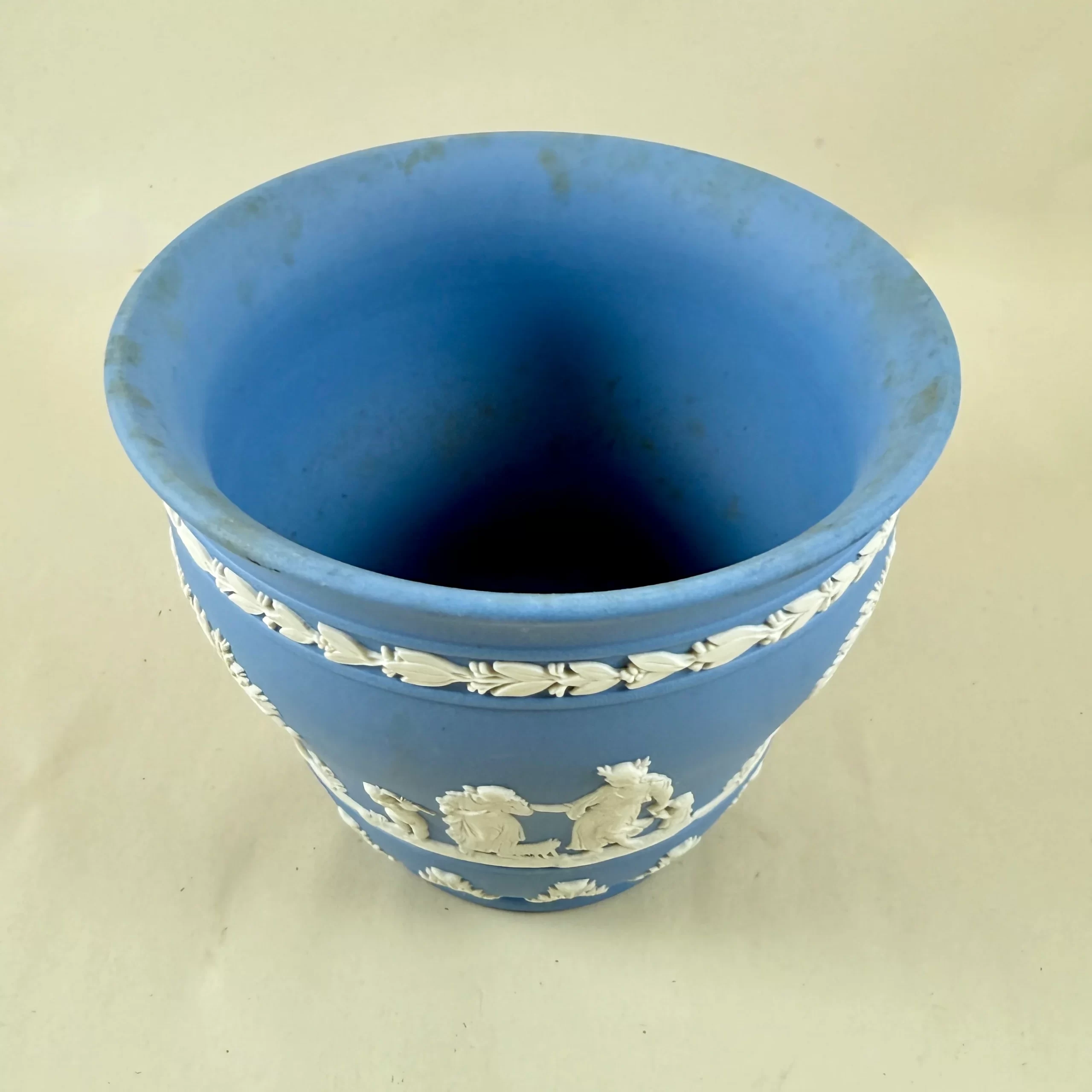 From Wedgwood, a light Blue Jasperware cache pot or jardiniere, date marked 1970.