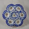 A faïence Provençal oyster plate from the south western area of France called Angoulême, signed Alfred Renoleau, circa 1890 – 1900. Six-wells surround a central condiment well. The lobed edged earthenware plate shows hand-painted floral sprays outlined in a bright Cobalt blue. Beautiful dimensional mold work.