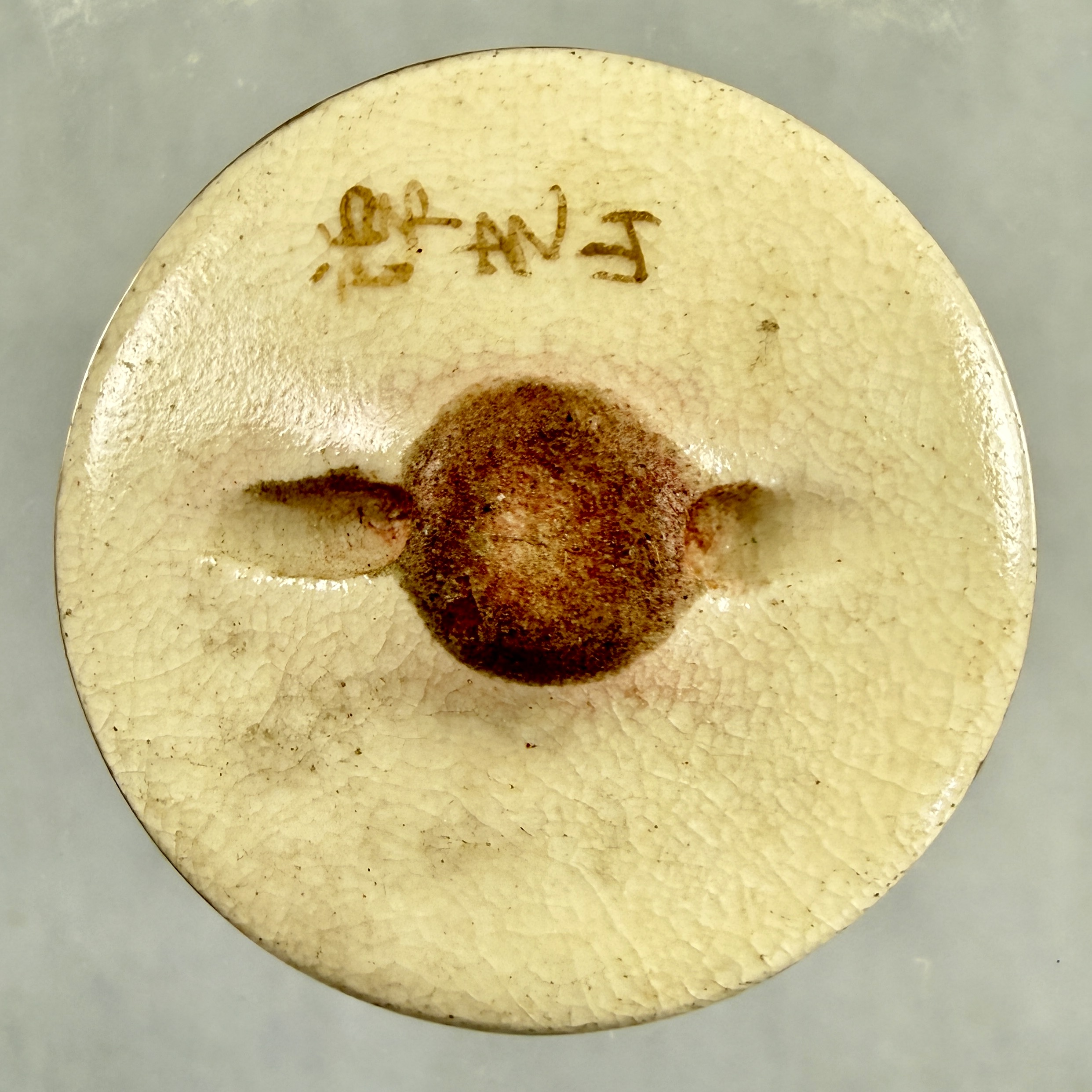 The verso shows a molded thread guide and the signature of the artist.