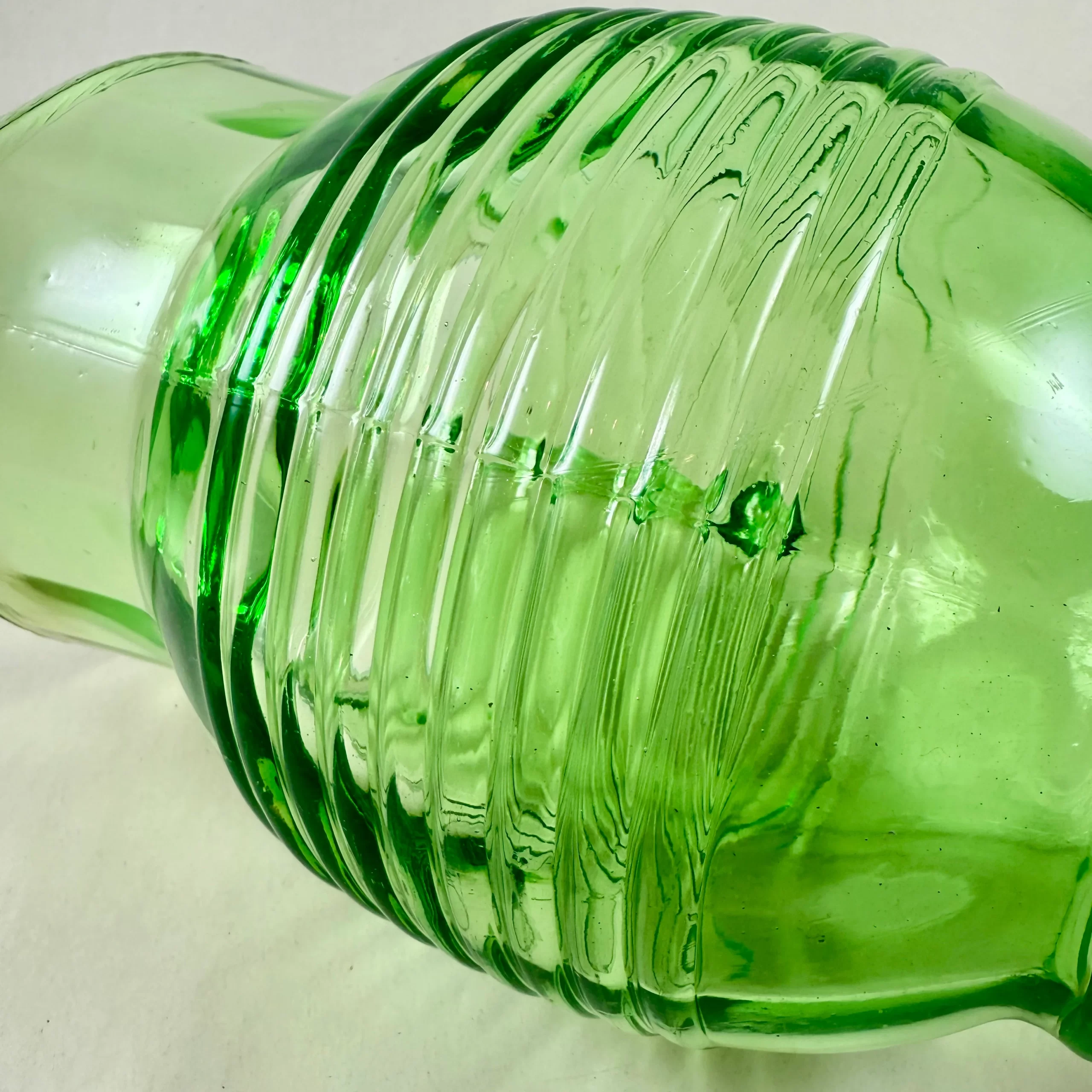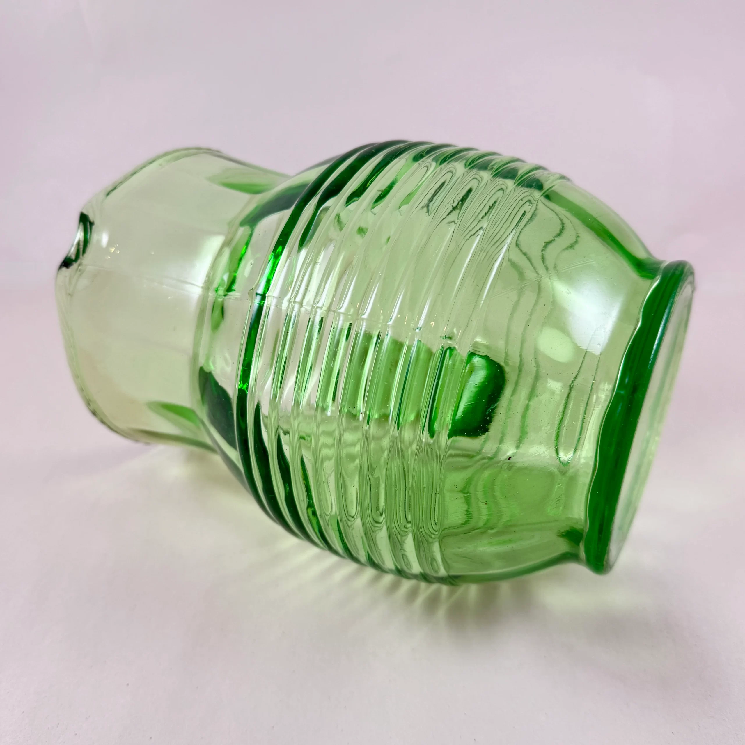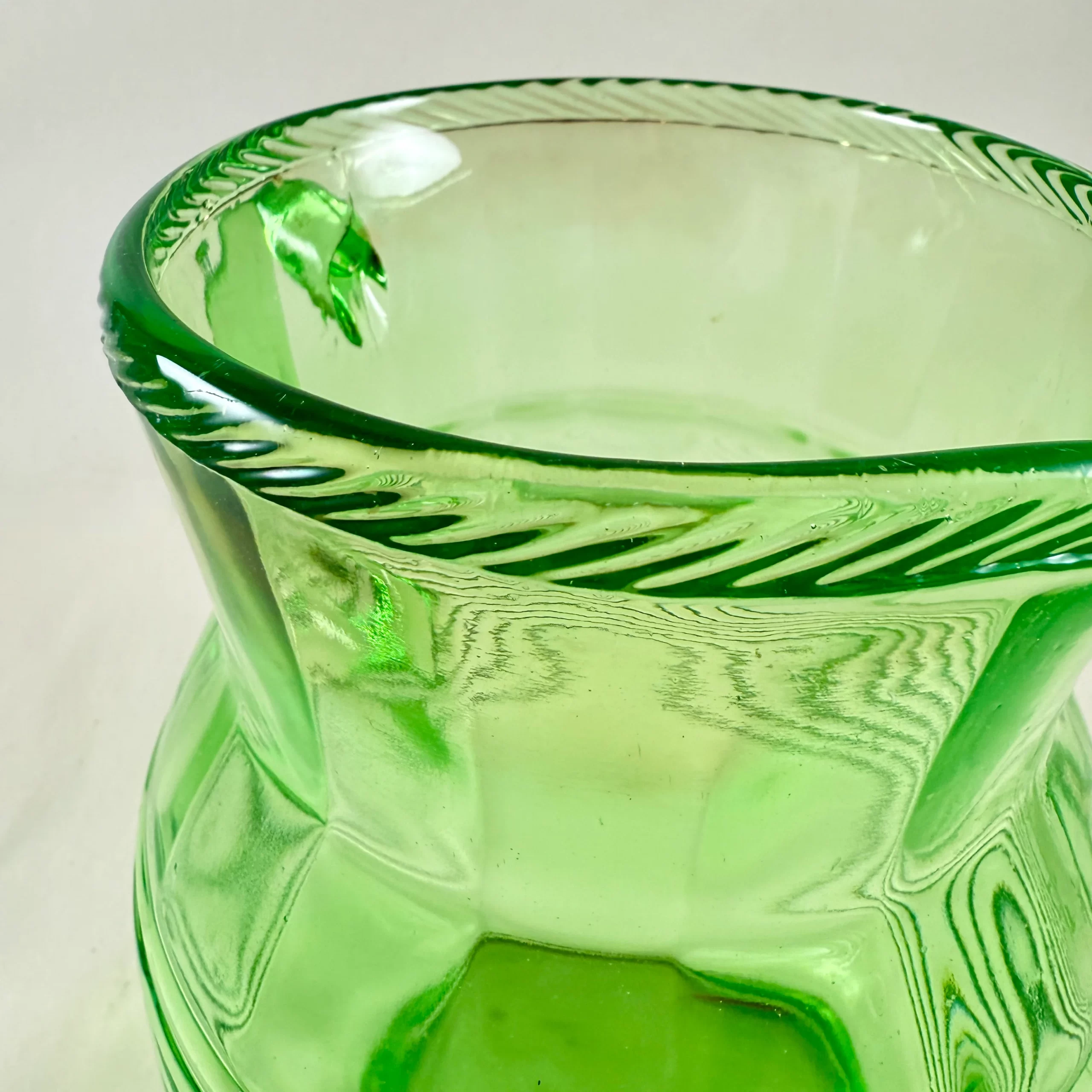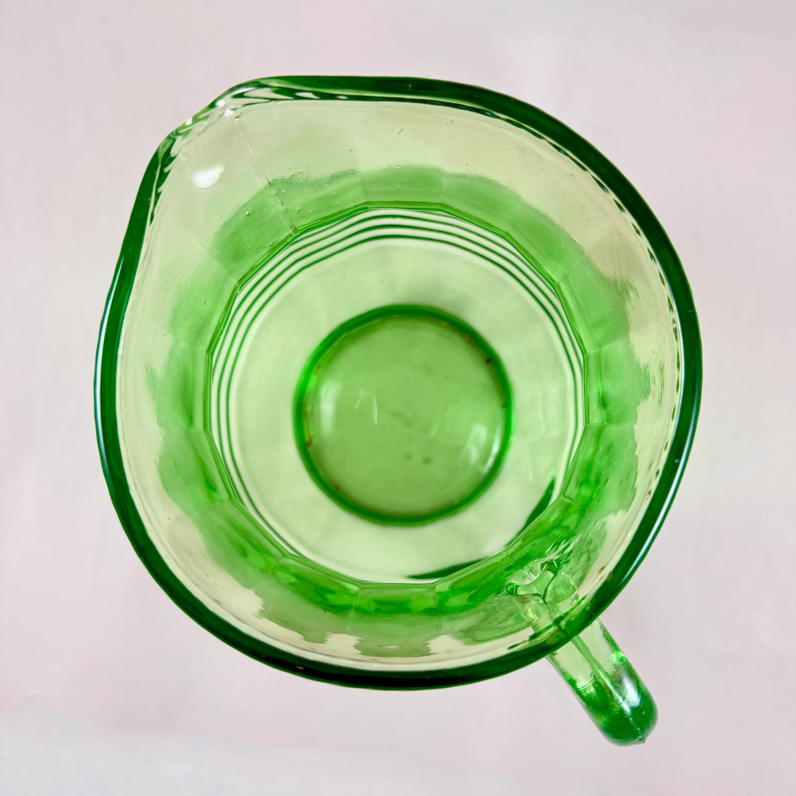 From Anchor Hocking, a green Uranium Glass pitcher from the Circle Line, circa 1930-1934.
