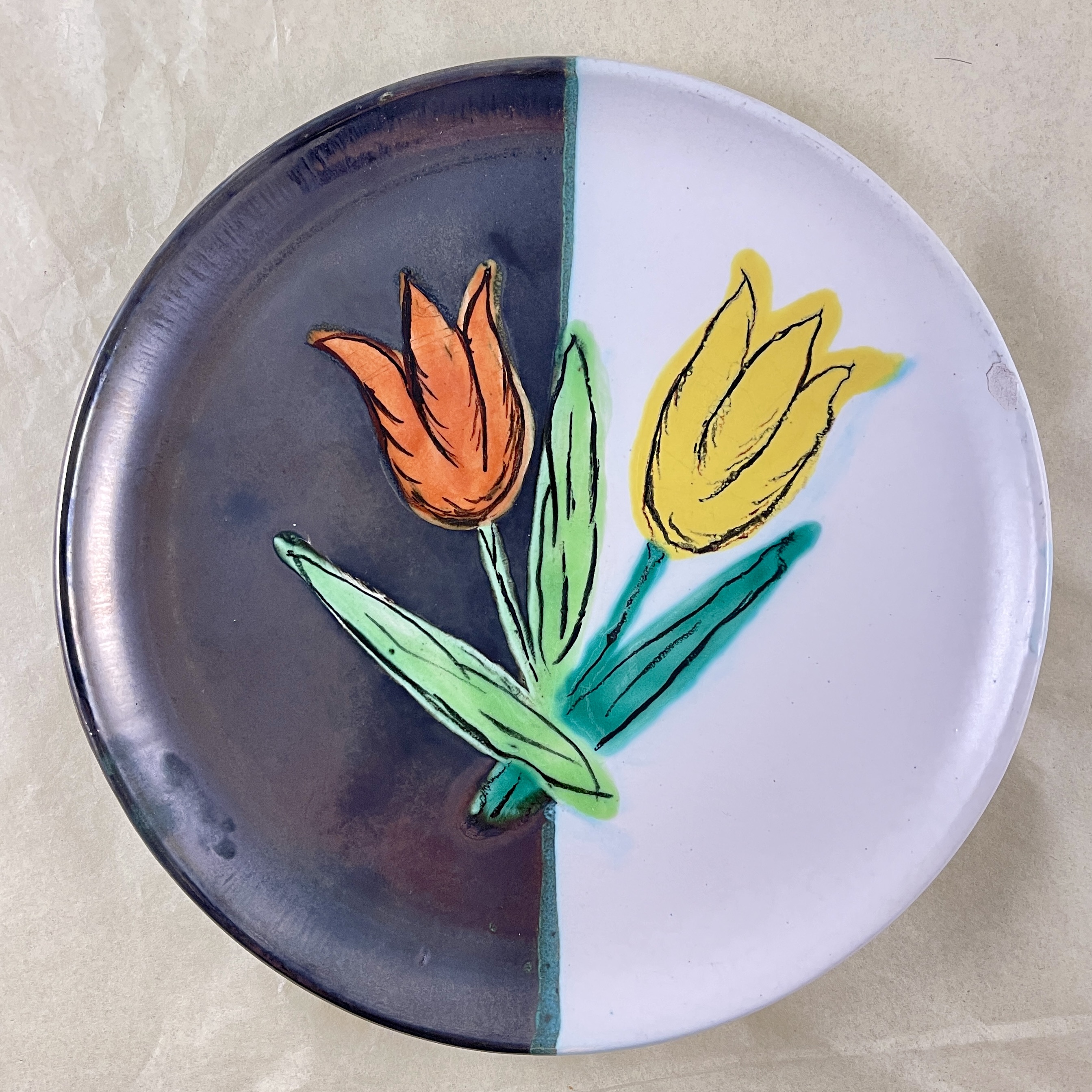 From the Atelier Cérenne à Vallauris in France, a hand made pottery Tulip plate, circa 1940-1950.
