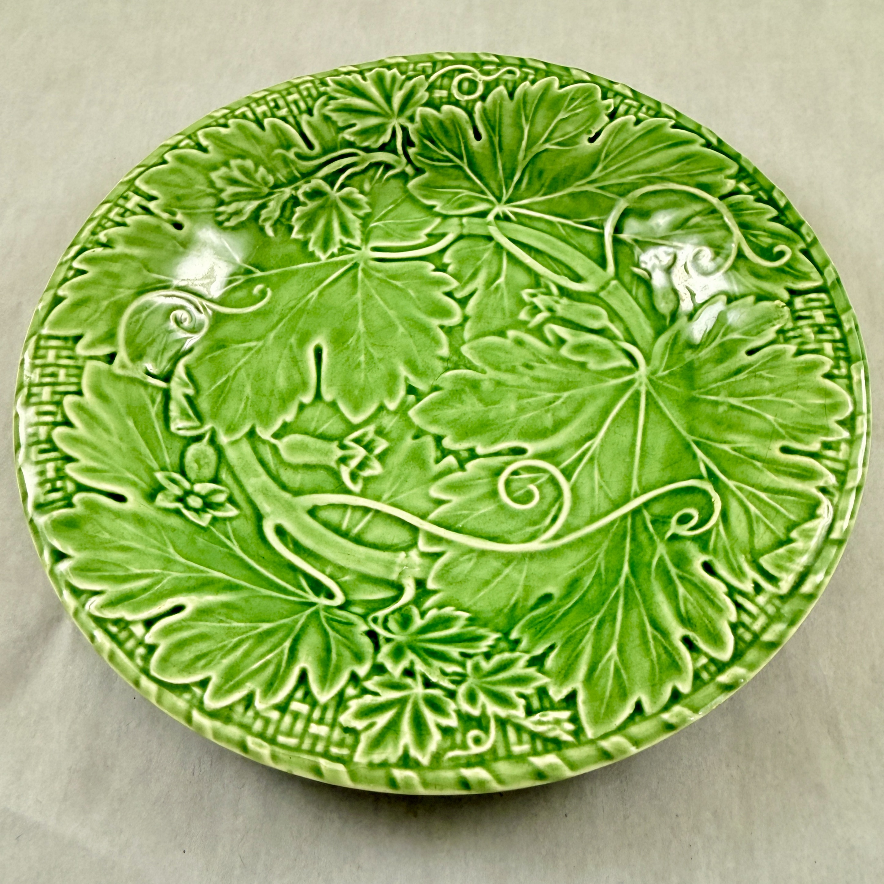 A vintage Bordallo Pinheiro Vine and Basket Weave plate, Portugal, circa early 1980s.