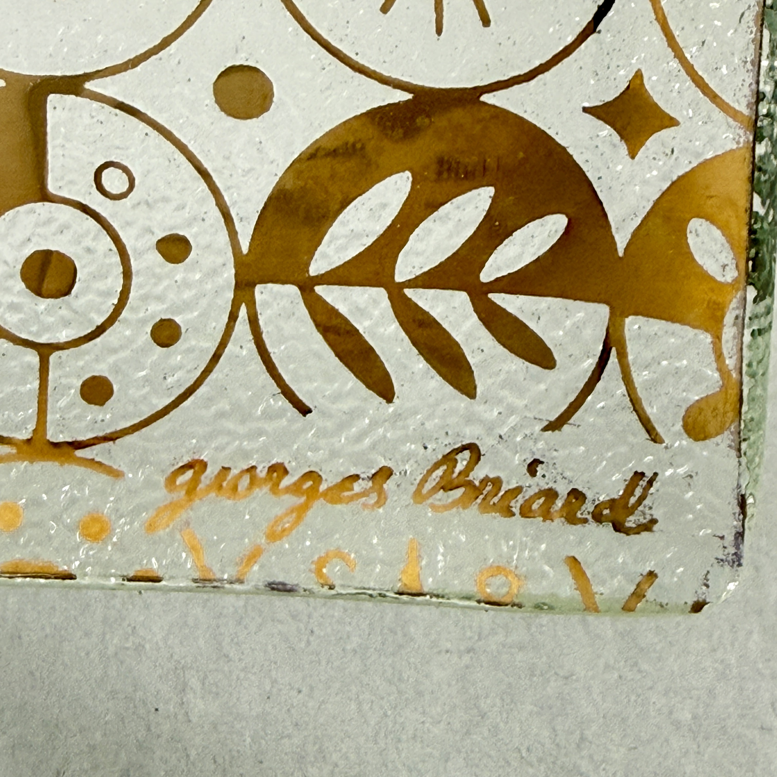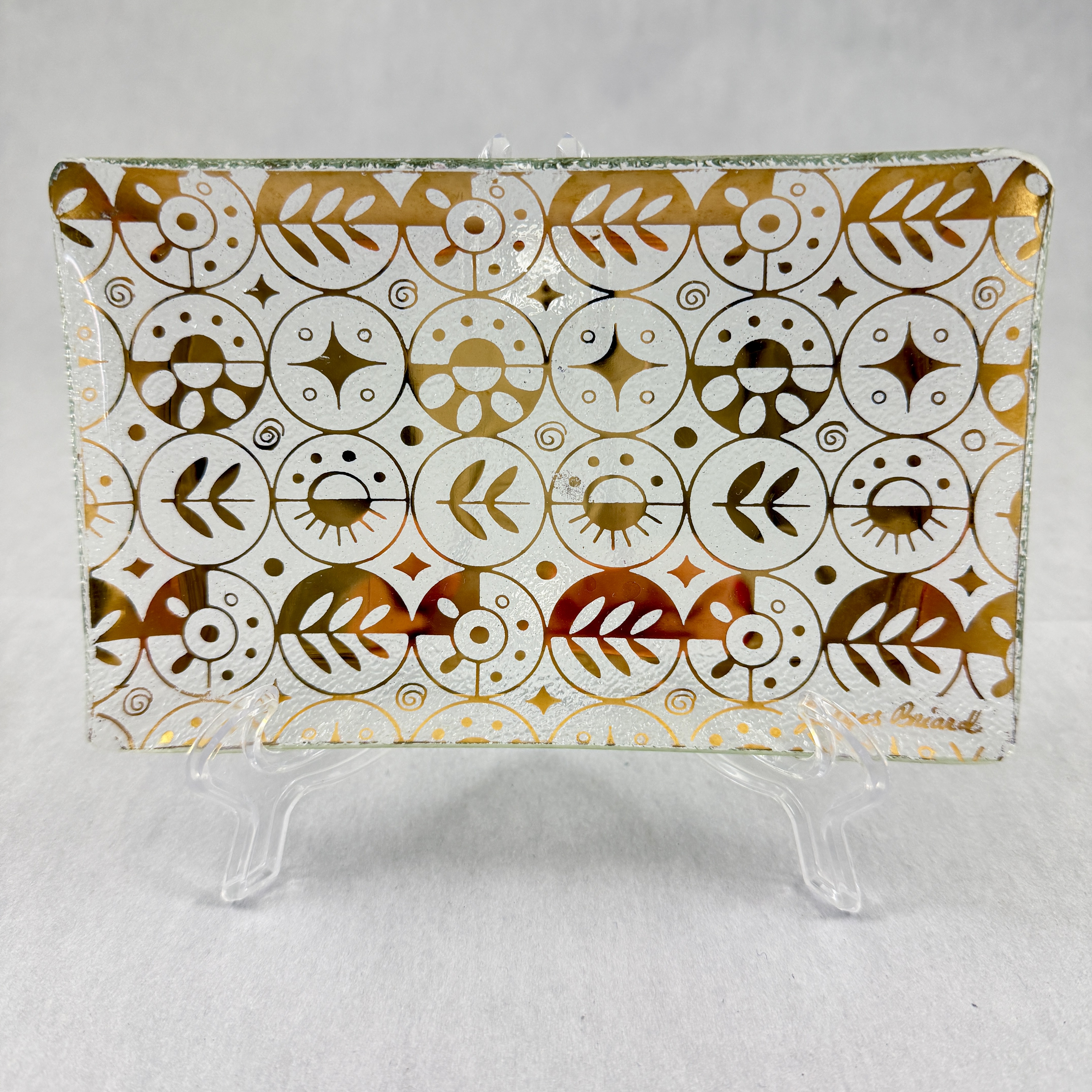 Georges Briard created award-winning designs for items including glasses, trays, coffeepots and dishes in materials like glass, ceramics, metal, wood, and gold-plated serveware. His serveware was especially popular from the 1950s to ’70s. It was produced by companies including Culver, Pfaltzgraff and Medina Glass and sold at high-end department stores like Neiman Marcus and Bonwit Teller. Briard’s designs were found in the homes of the most fashionable hosts of the mid-century. Today, they are highly prized by collectors.