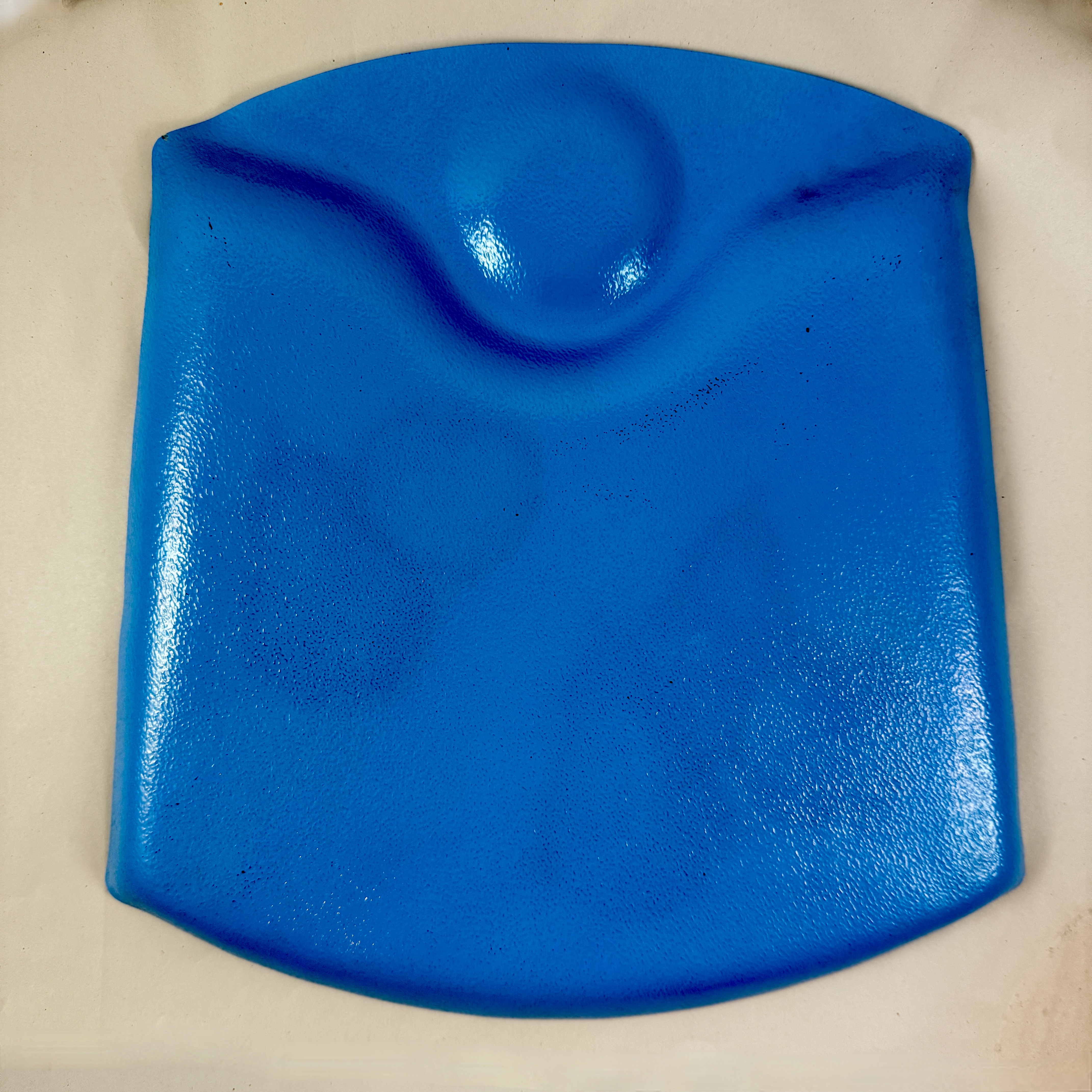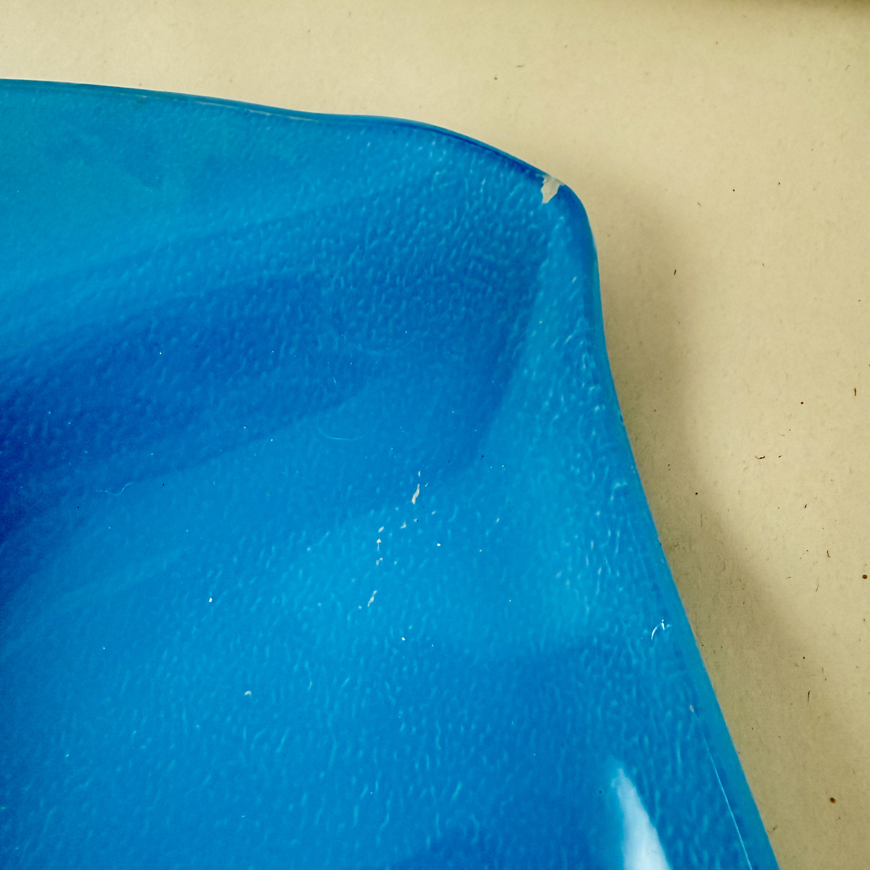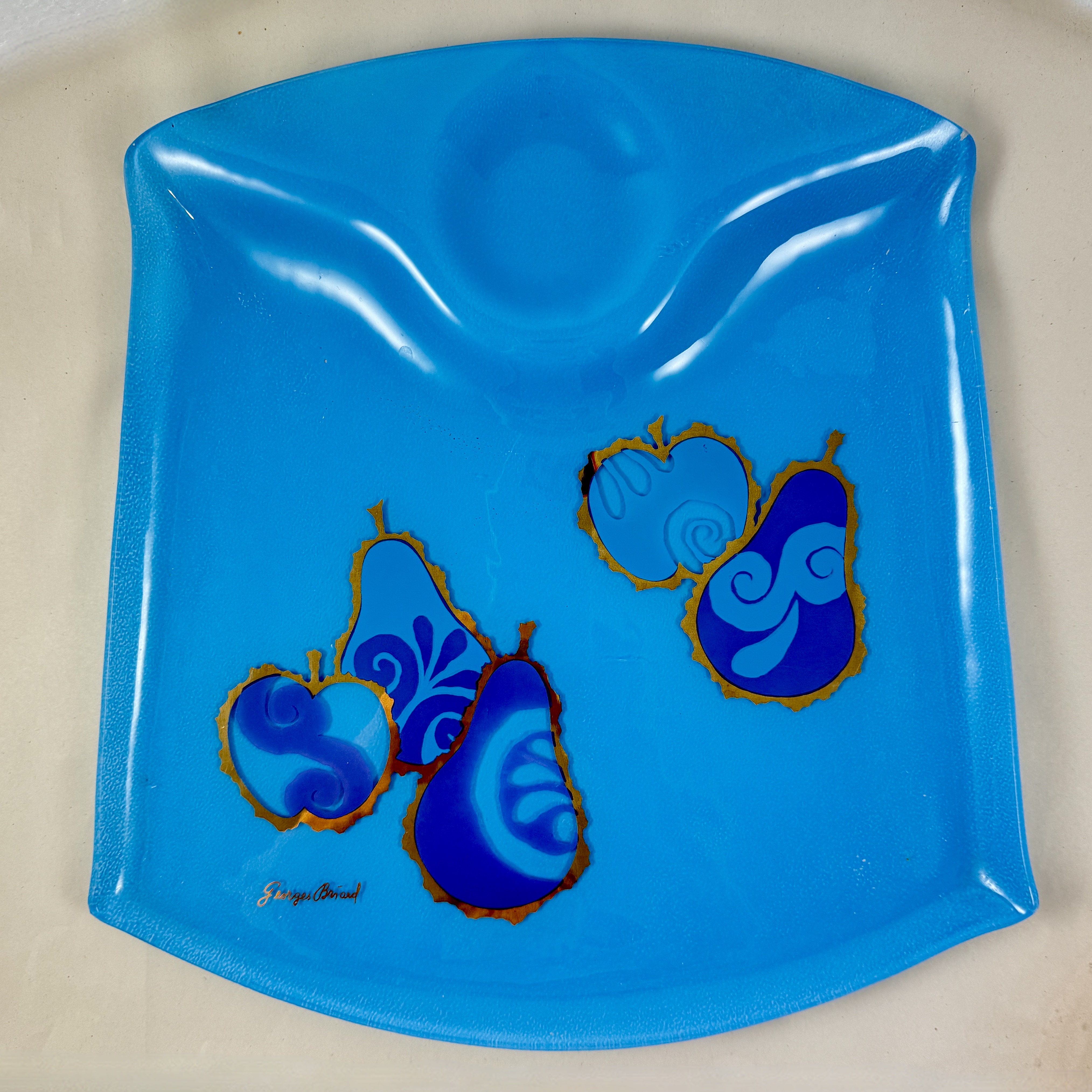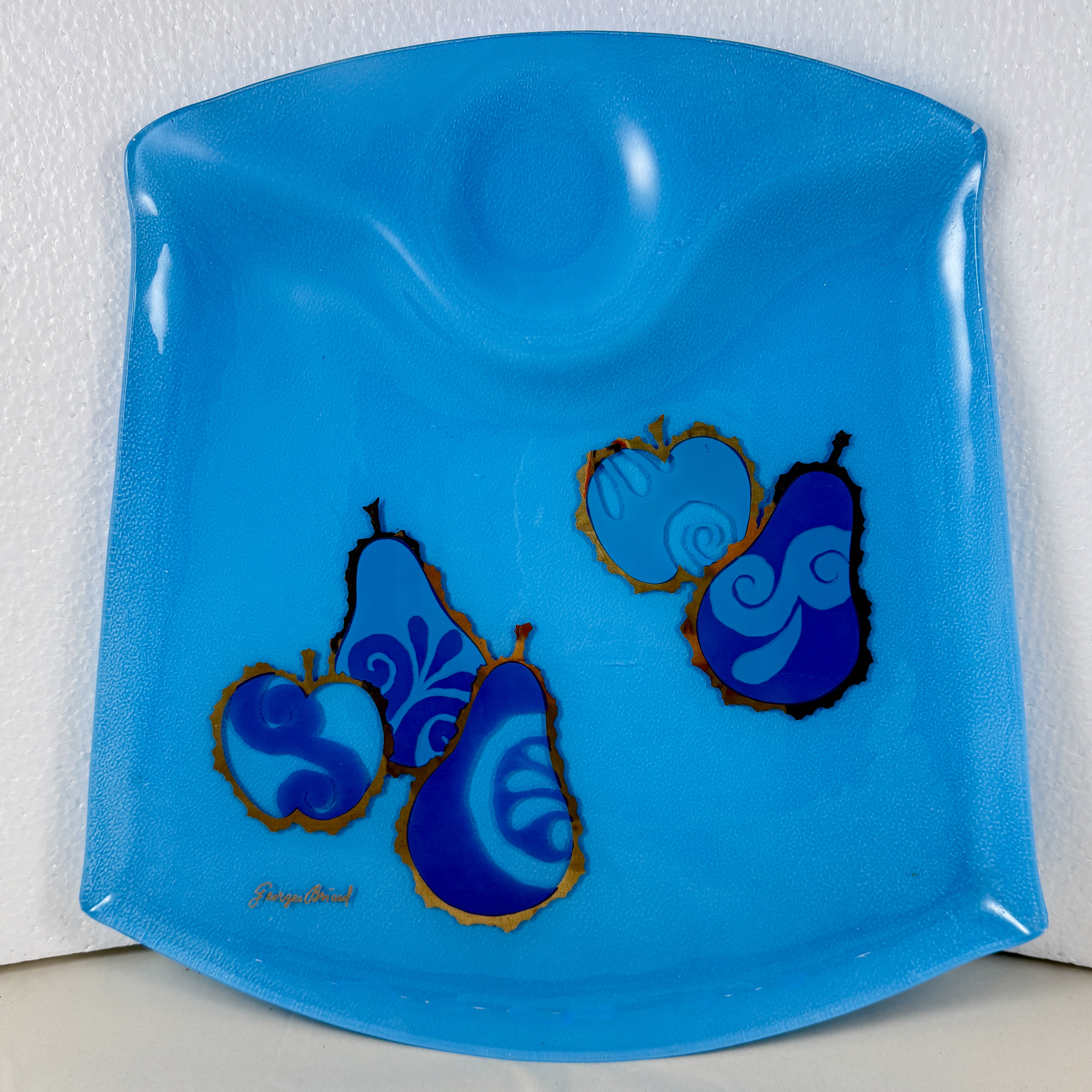 From the designer Georges Briard, and from the Pageant Fruit collection, a Peacock Blue glass serving tray, circa 1964.
