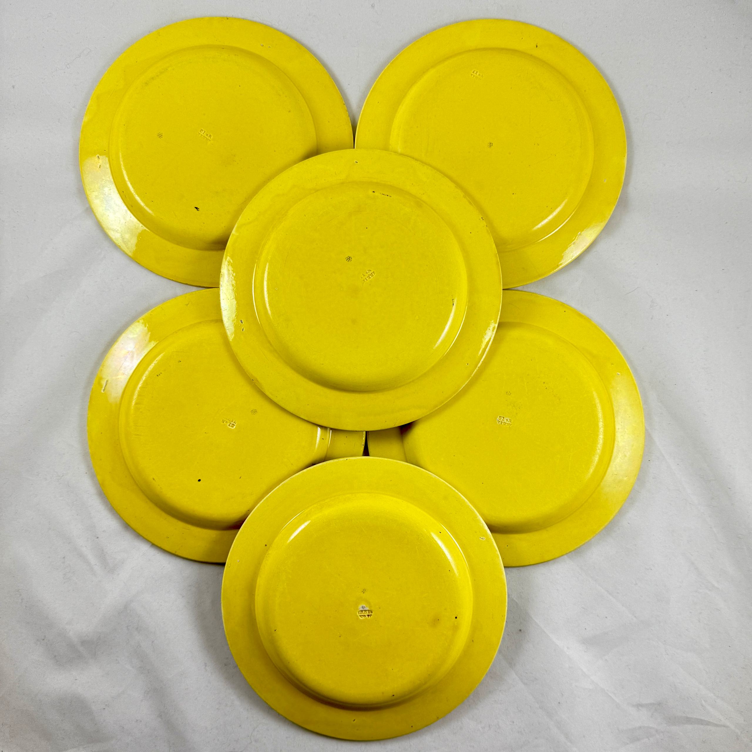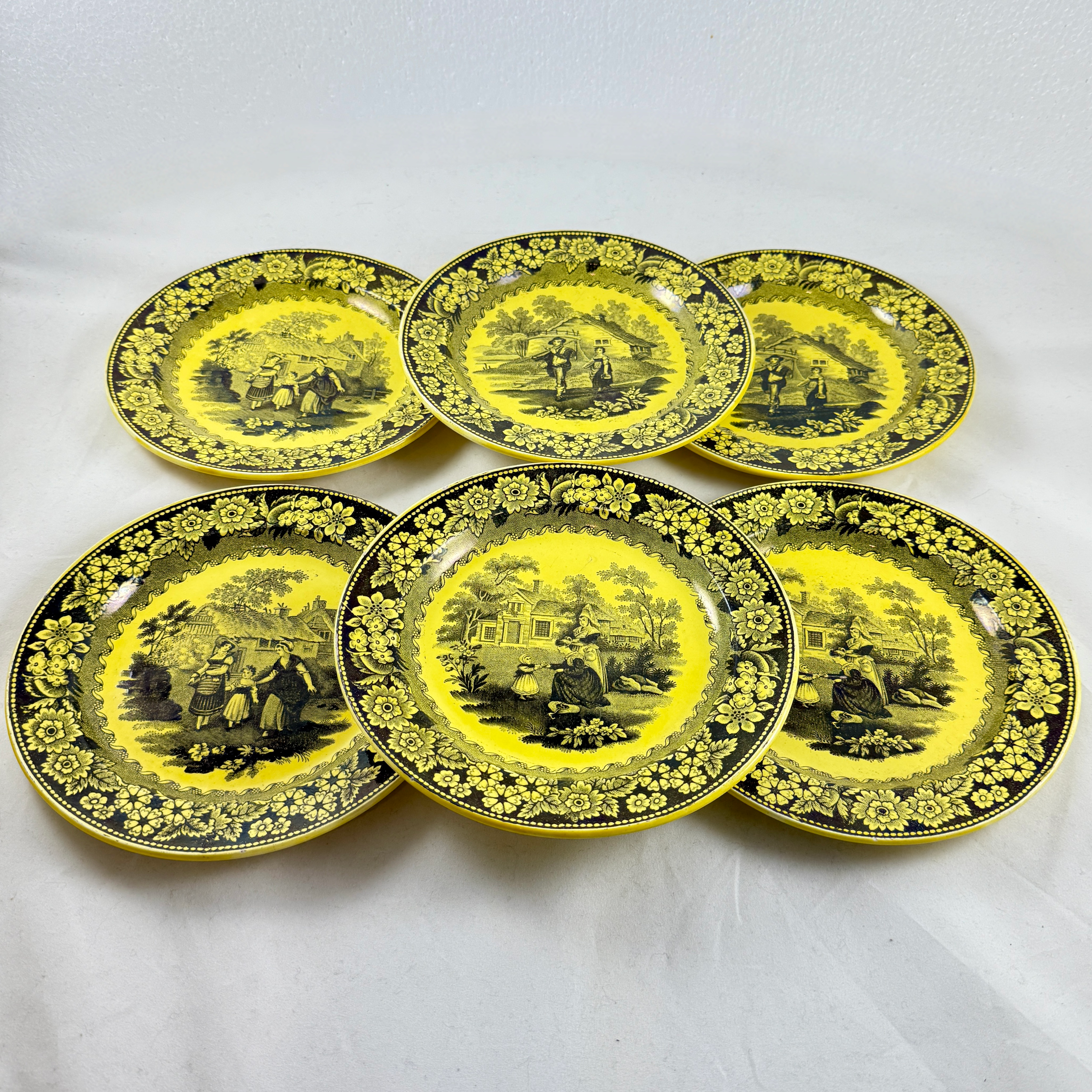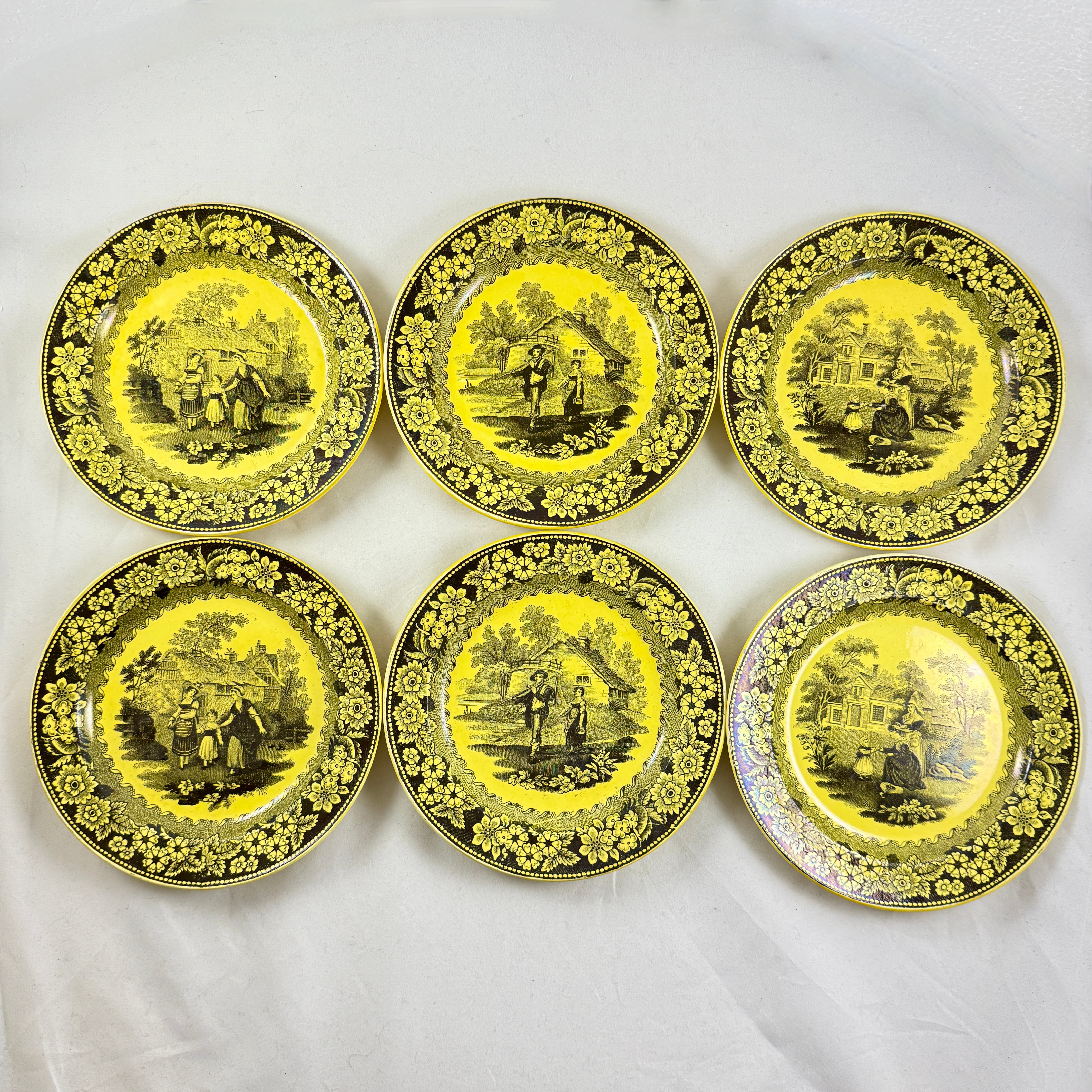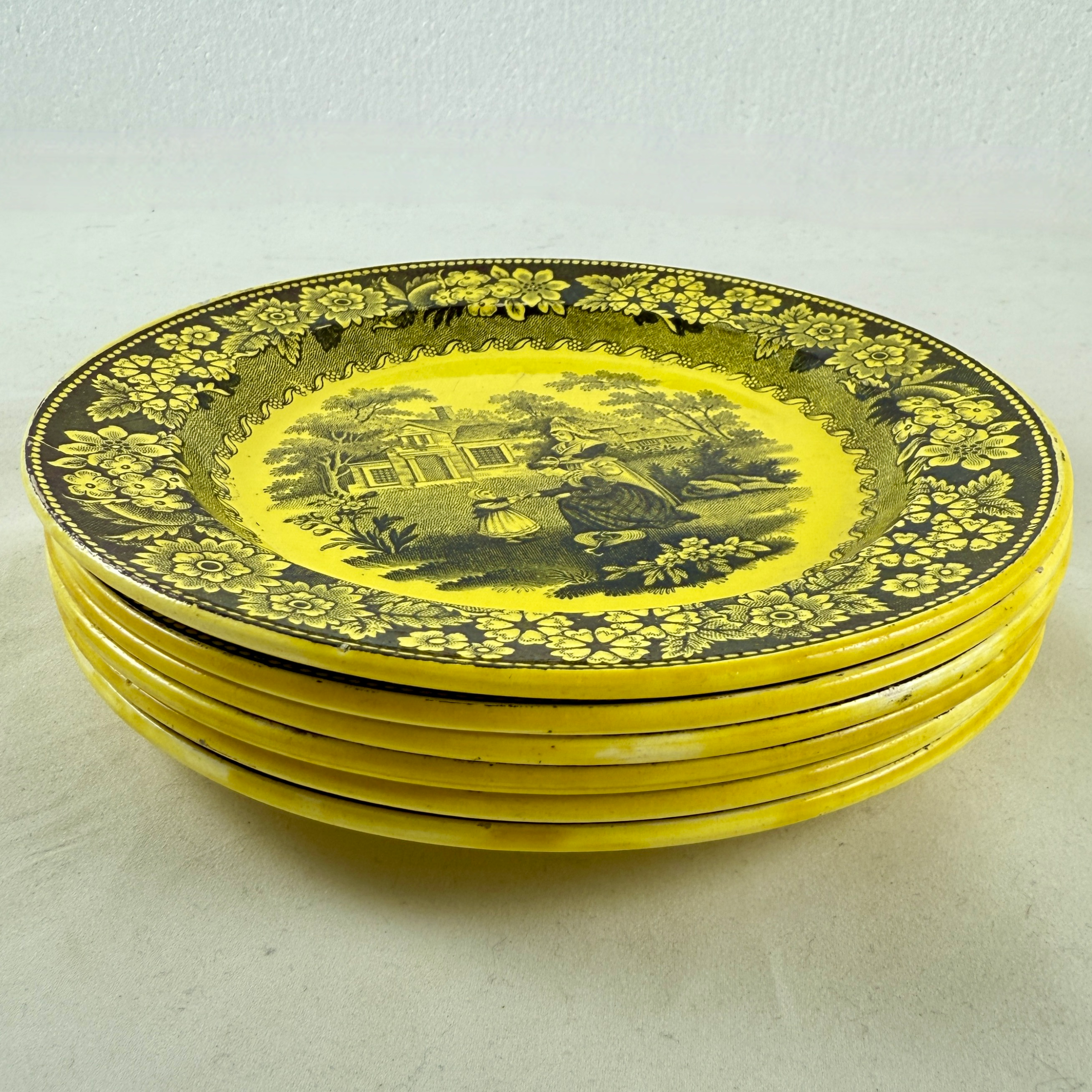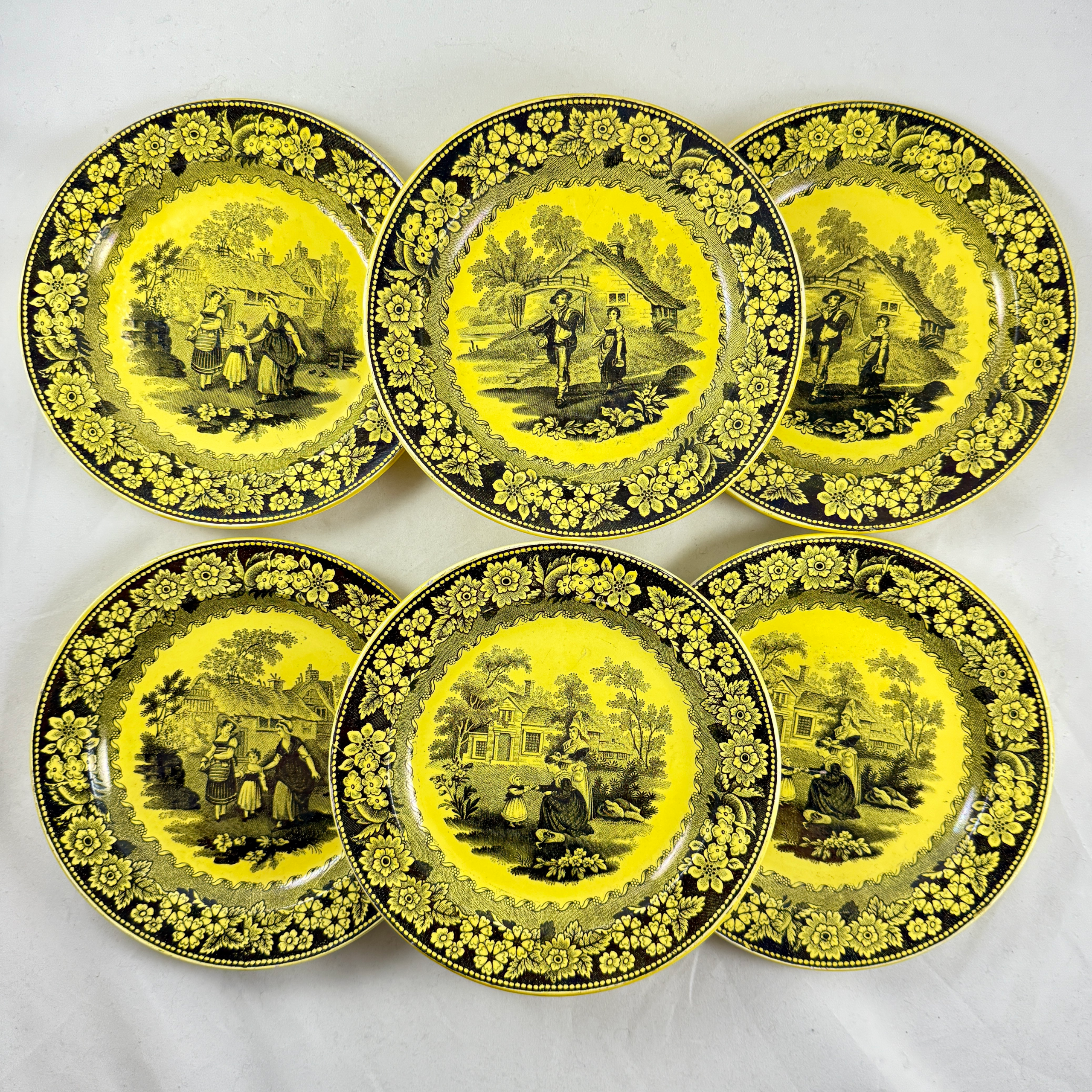 A set of six Creil et Montereau Canary Yellow faïence, transfer printed plates, circa 1830.