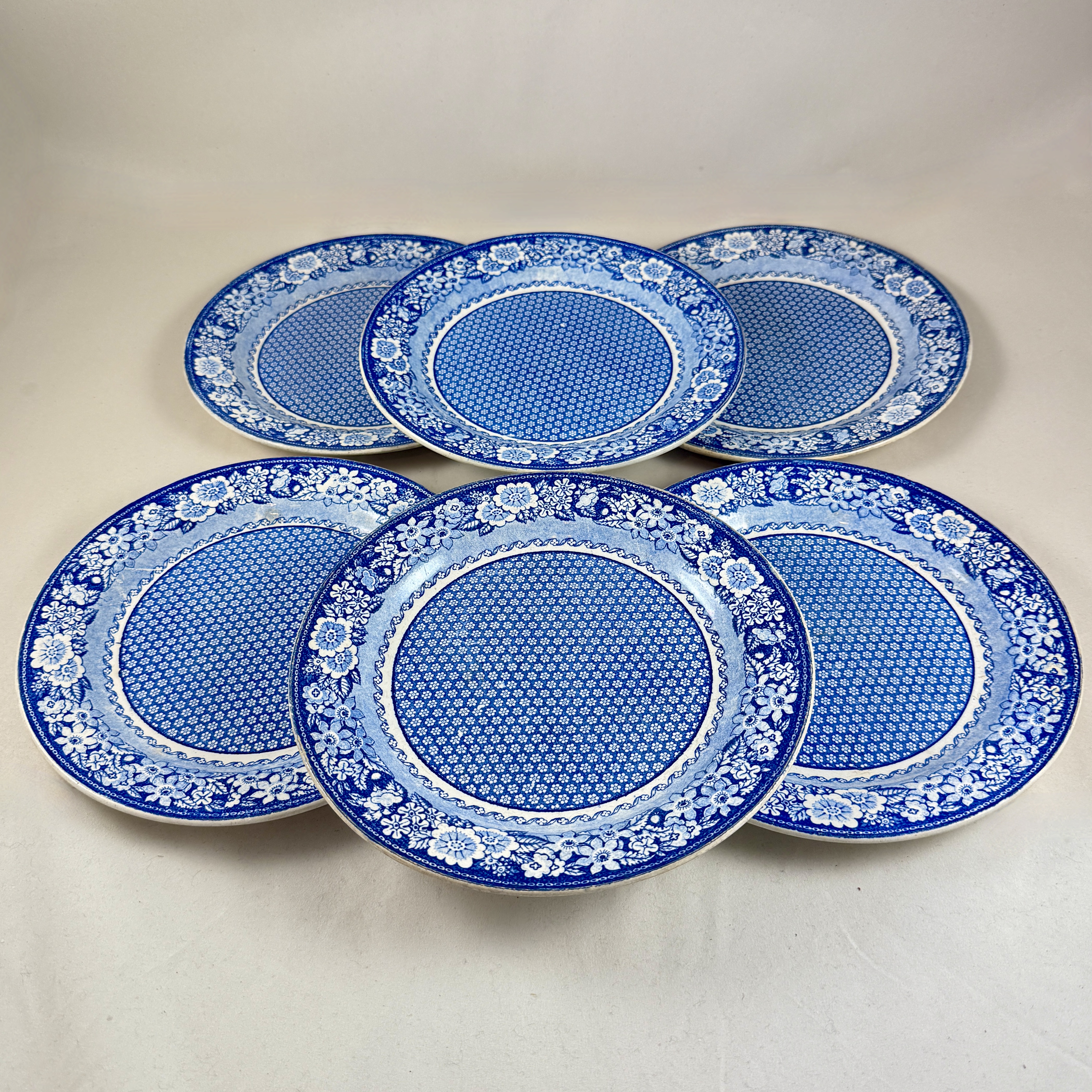 Creil et Montereau Faïence Blue & White Plates, set of six