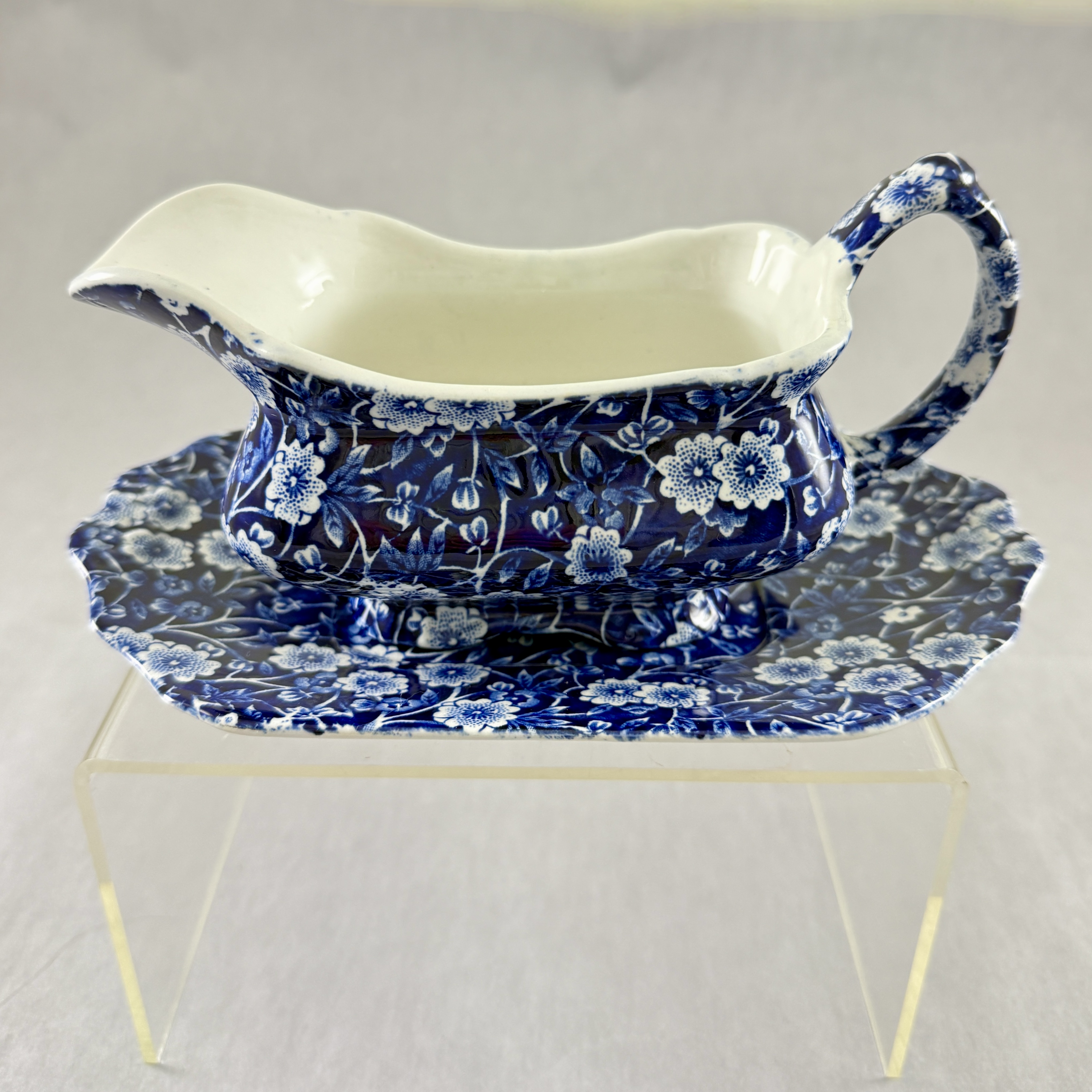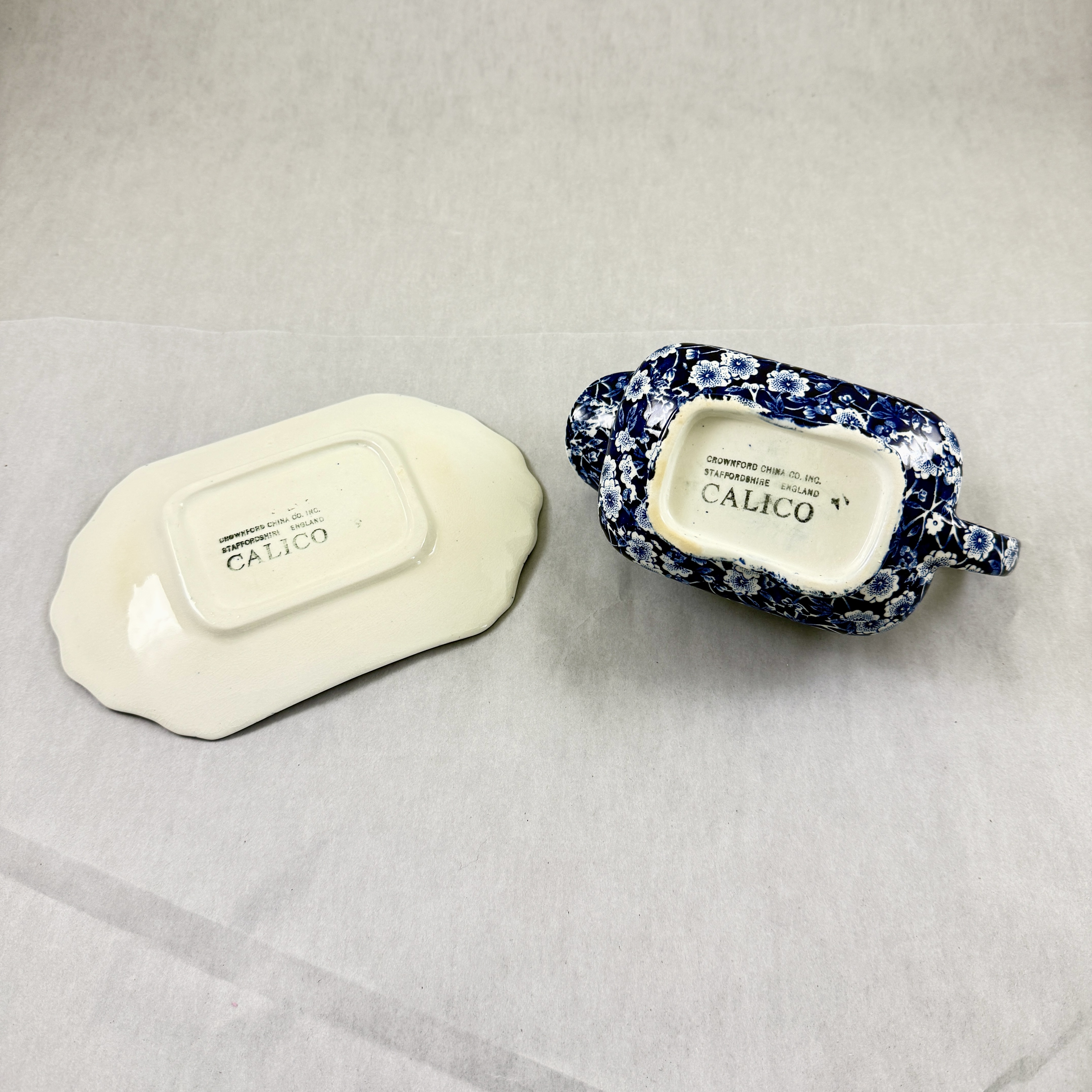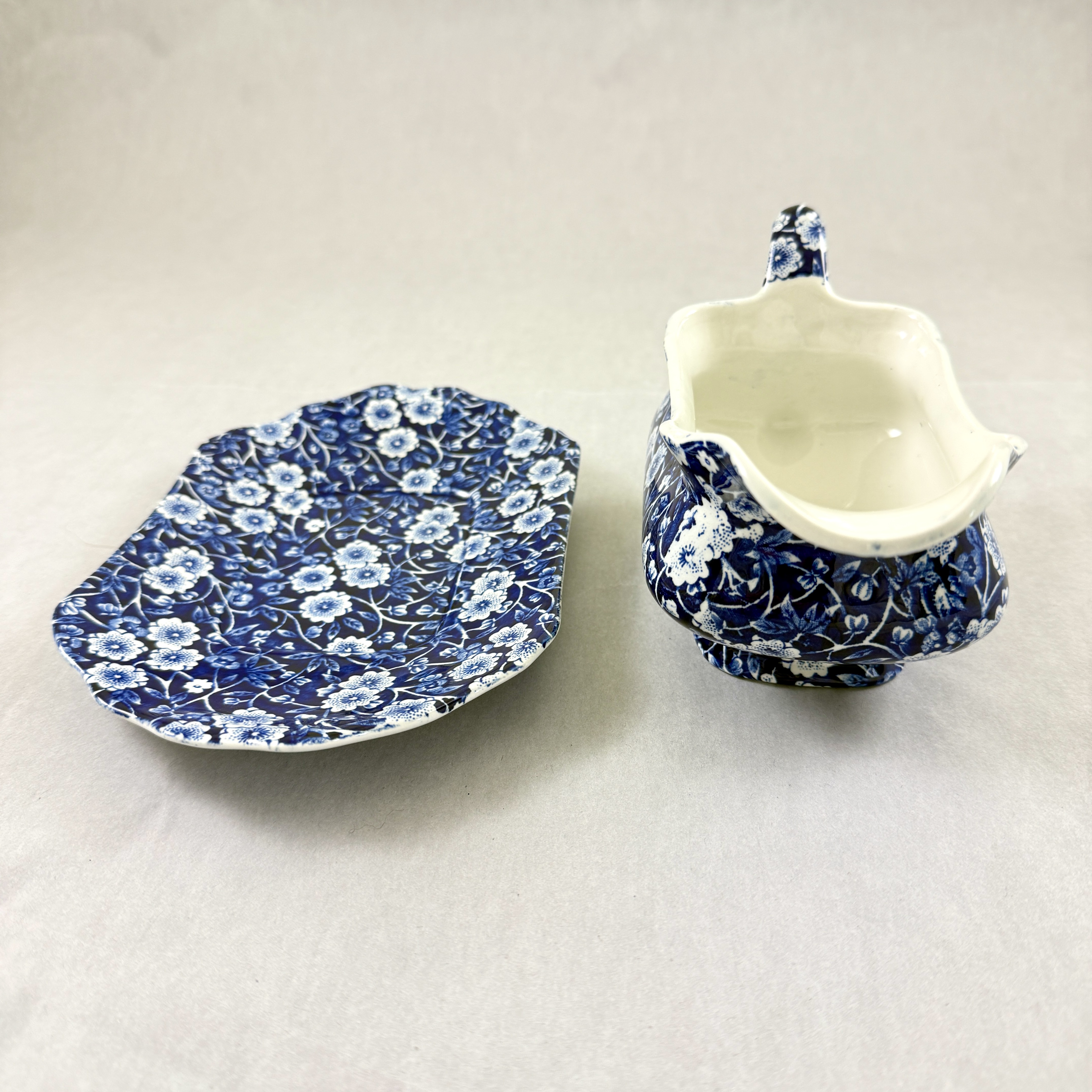 A Blue Calico transfer printed gravy boat and underplate, Staffordshire, England, circa 1940 – 1960s.