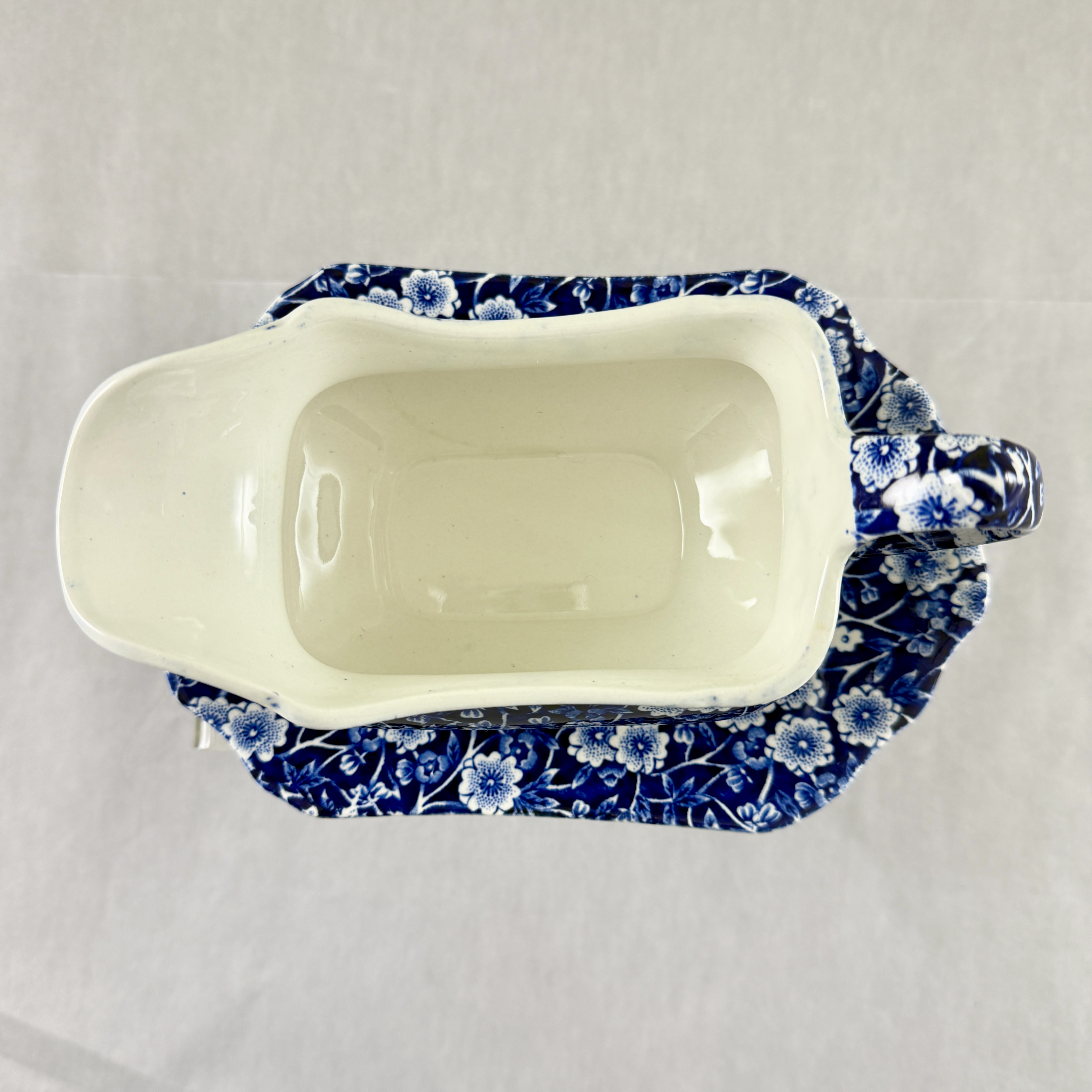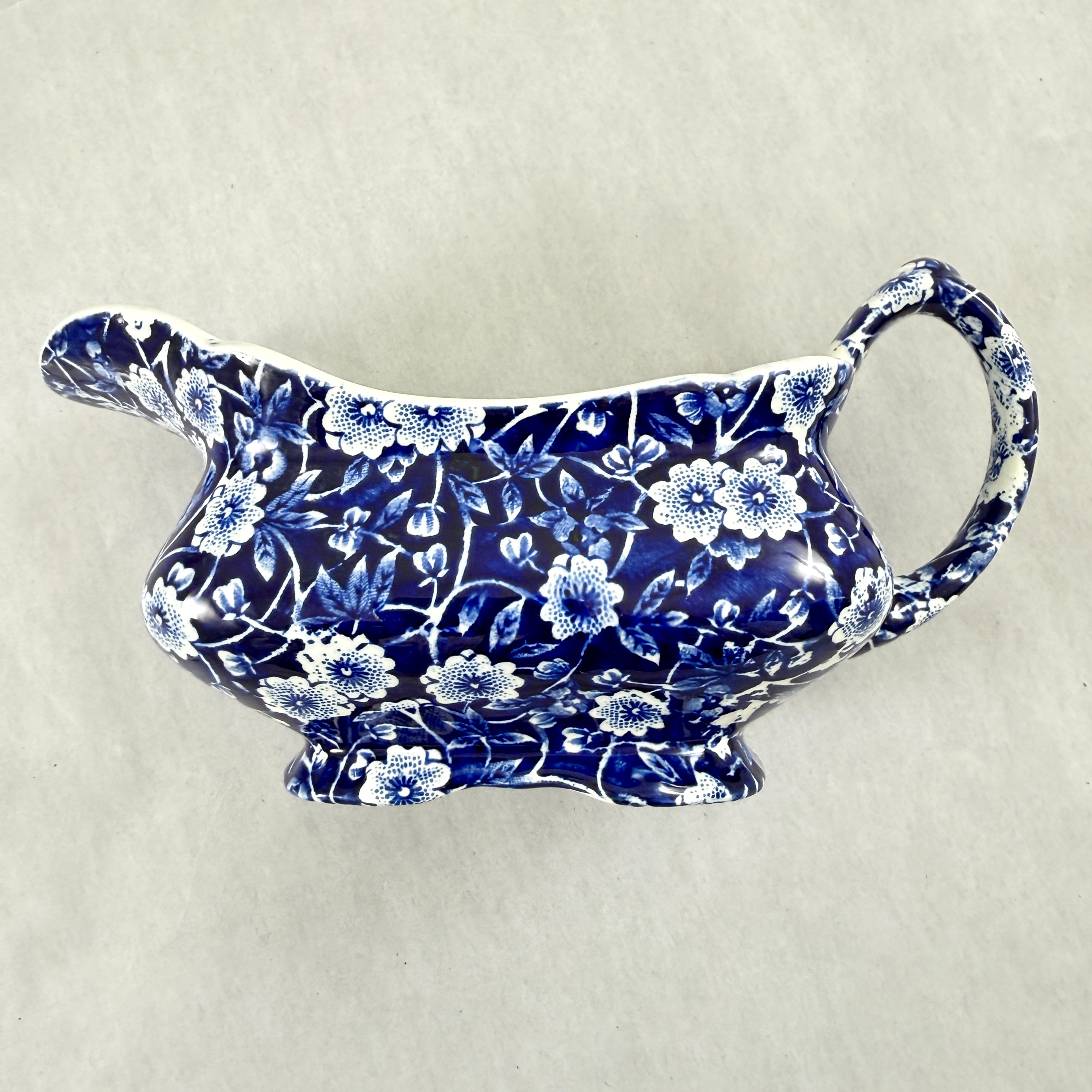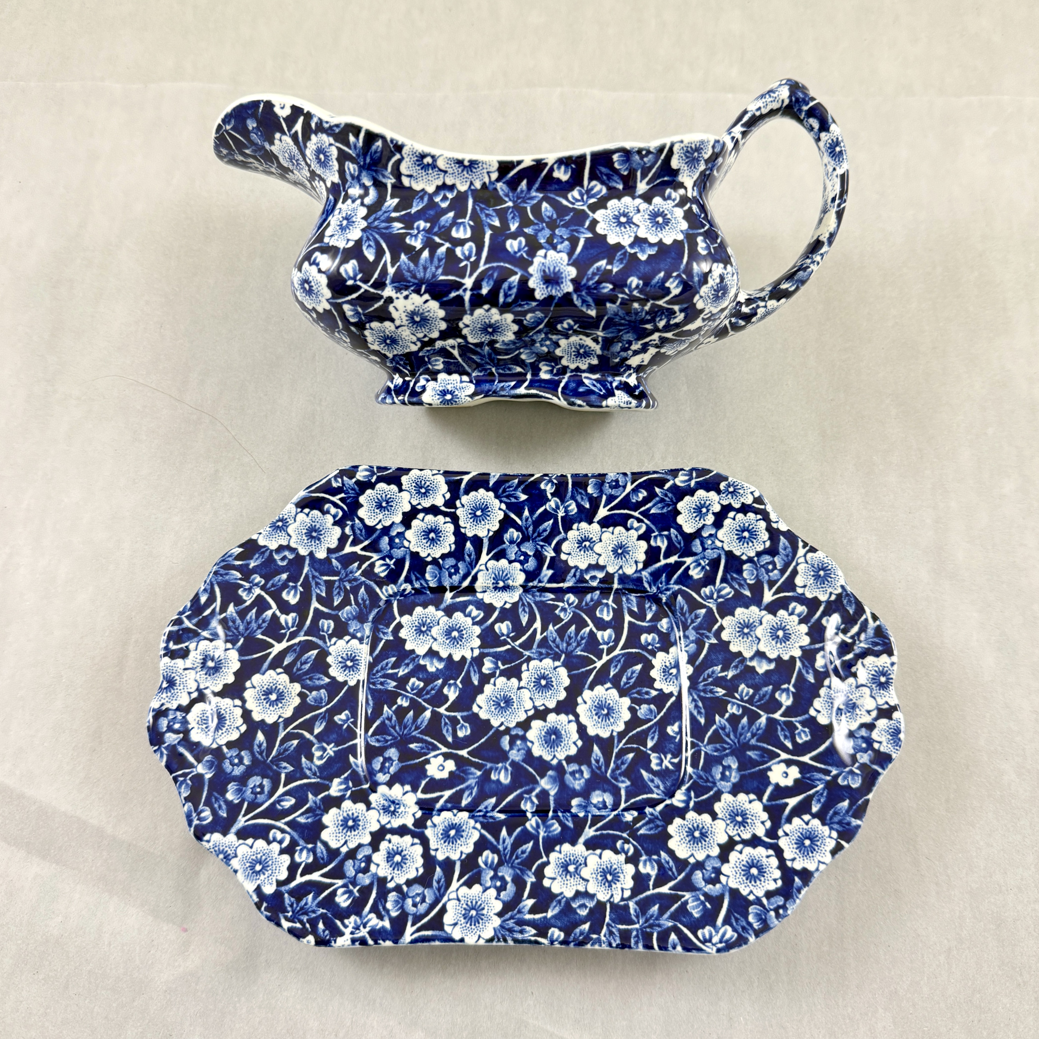 A Blue Calico transfer printed gravy boat and underplate, Staffordshire, England, circa 1940 – 1960s.