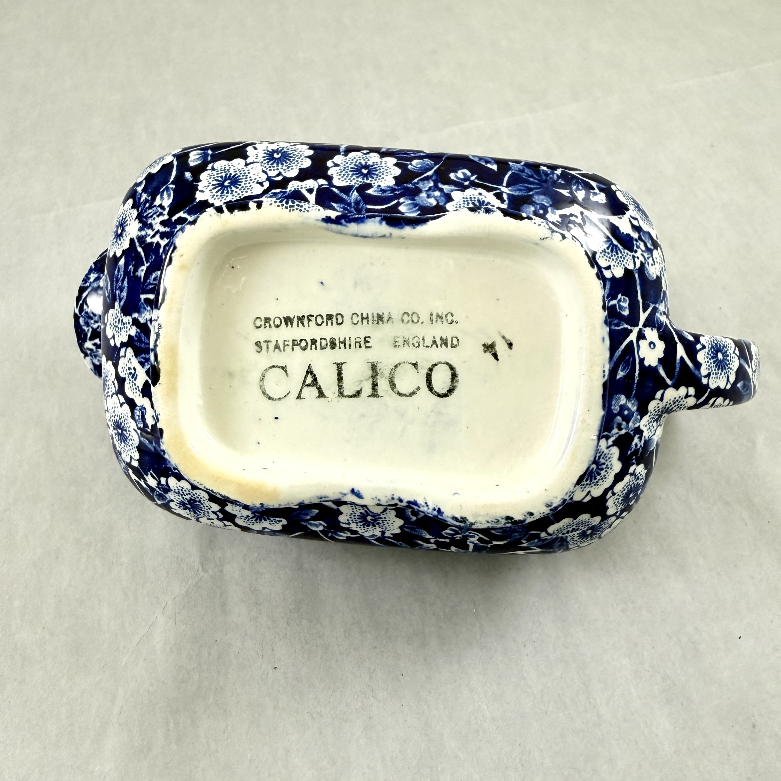 Crownford China Co. was a New York-based importer and distributor that marketed Staffordshire transferware china, notably the popular blue and white Calico pattern.
