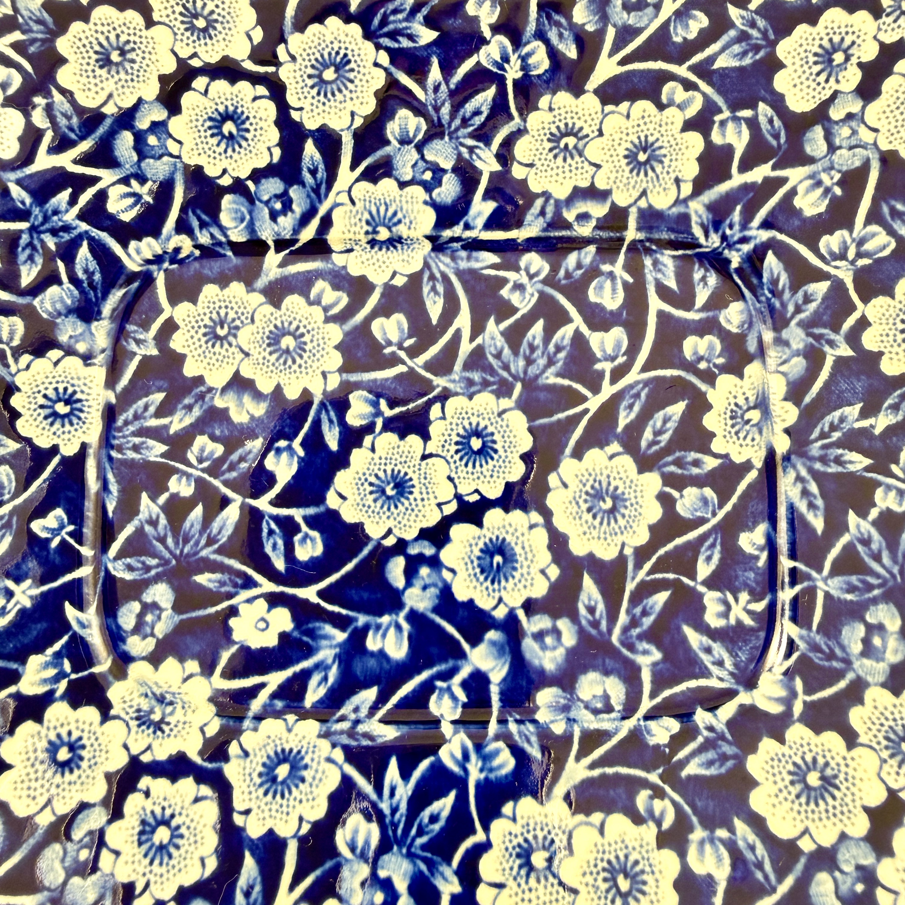 The “Calico” pattern features stylized, chintz-like flowers, characterized by its all-over, densely packed floral design, inspired by the older 19th century transferware.