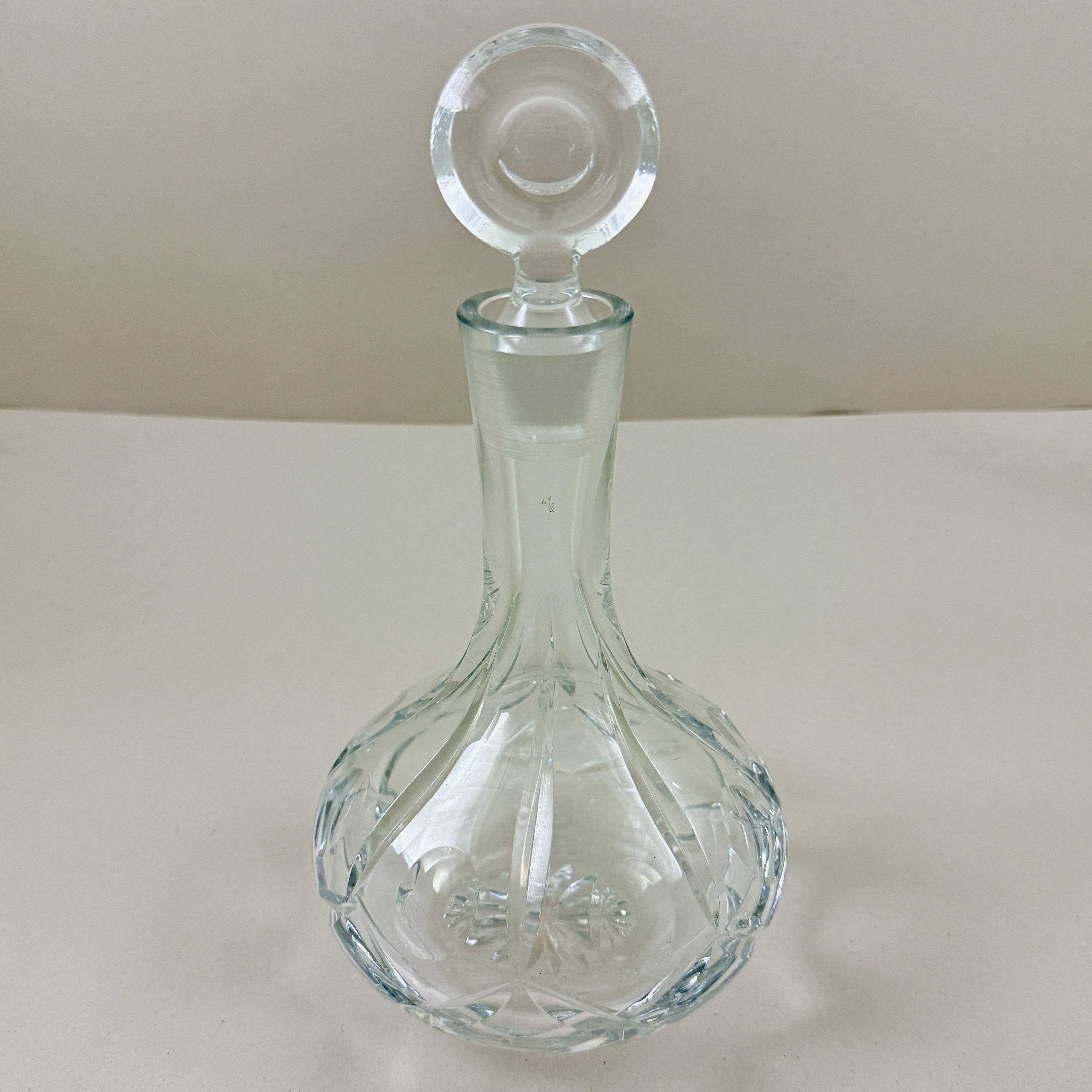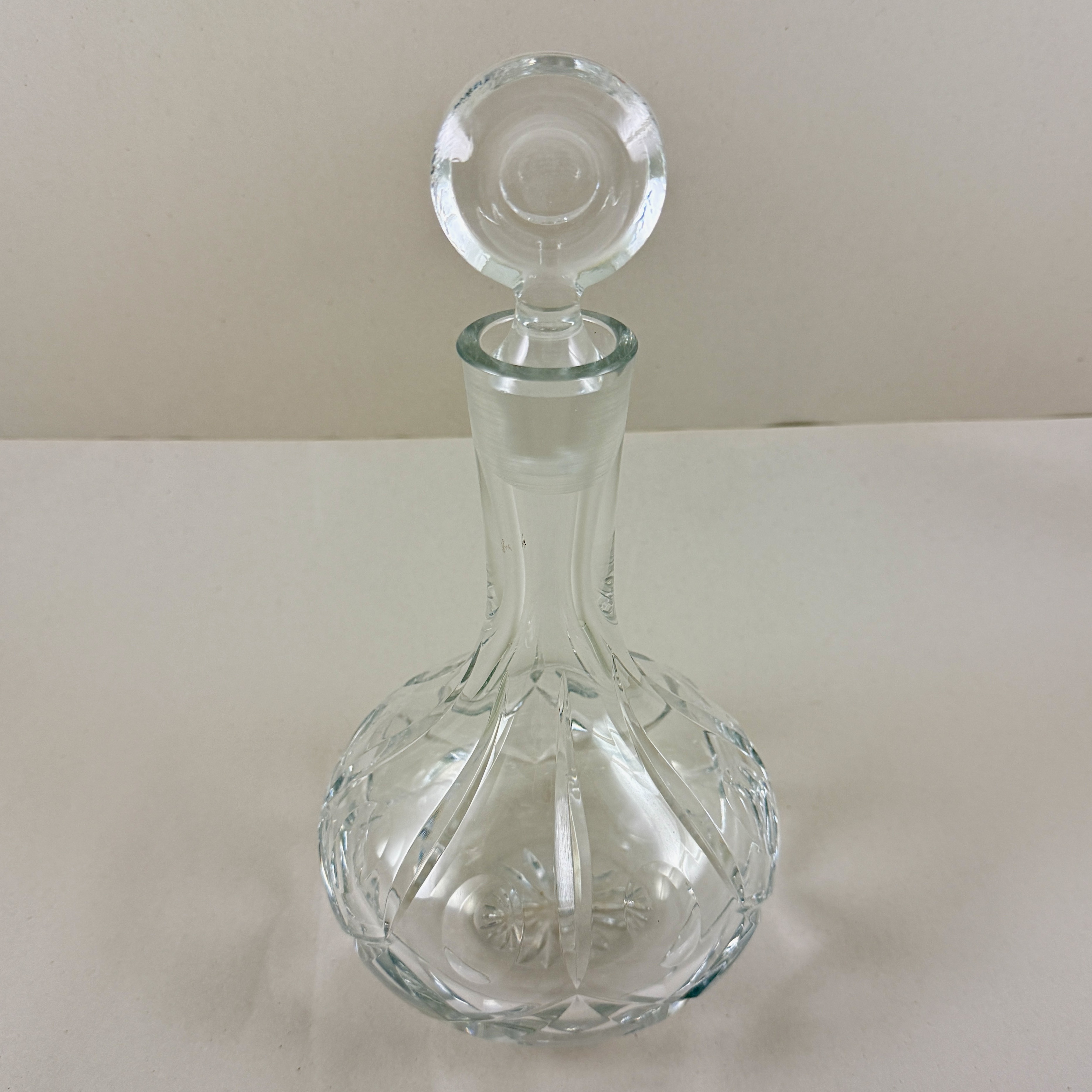 A vintage cut crystal decanter in the Ship Captains shape, with a top round stopper, circa early 1980s.