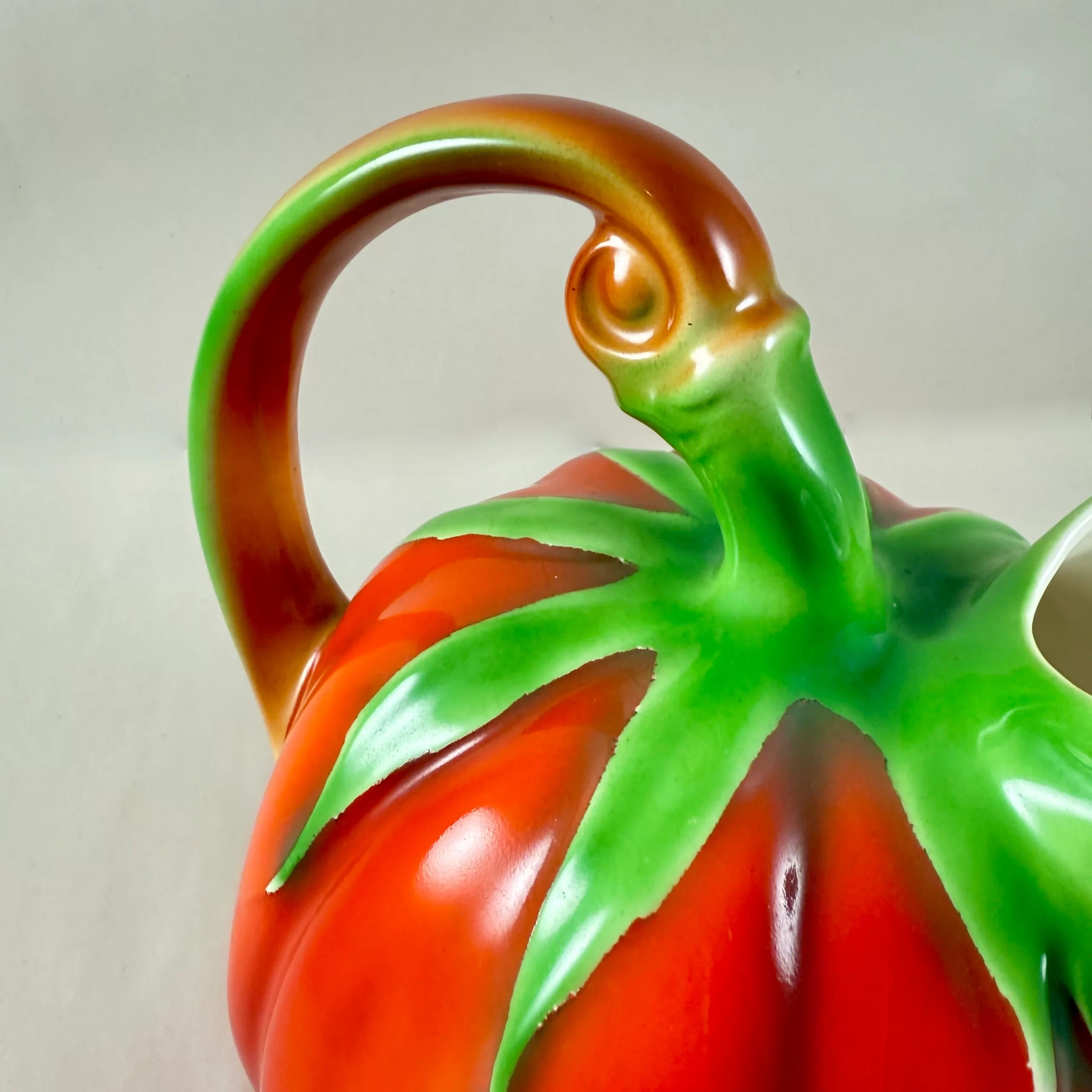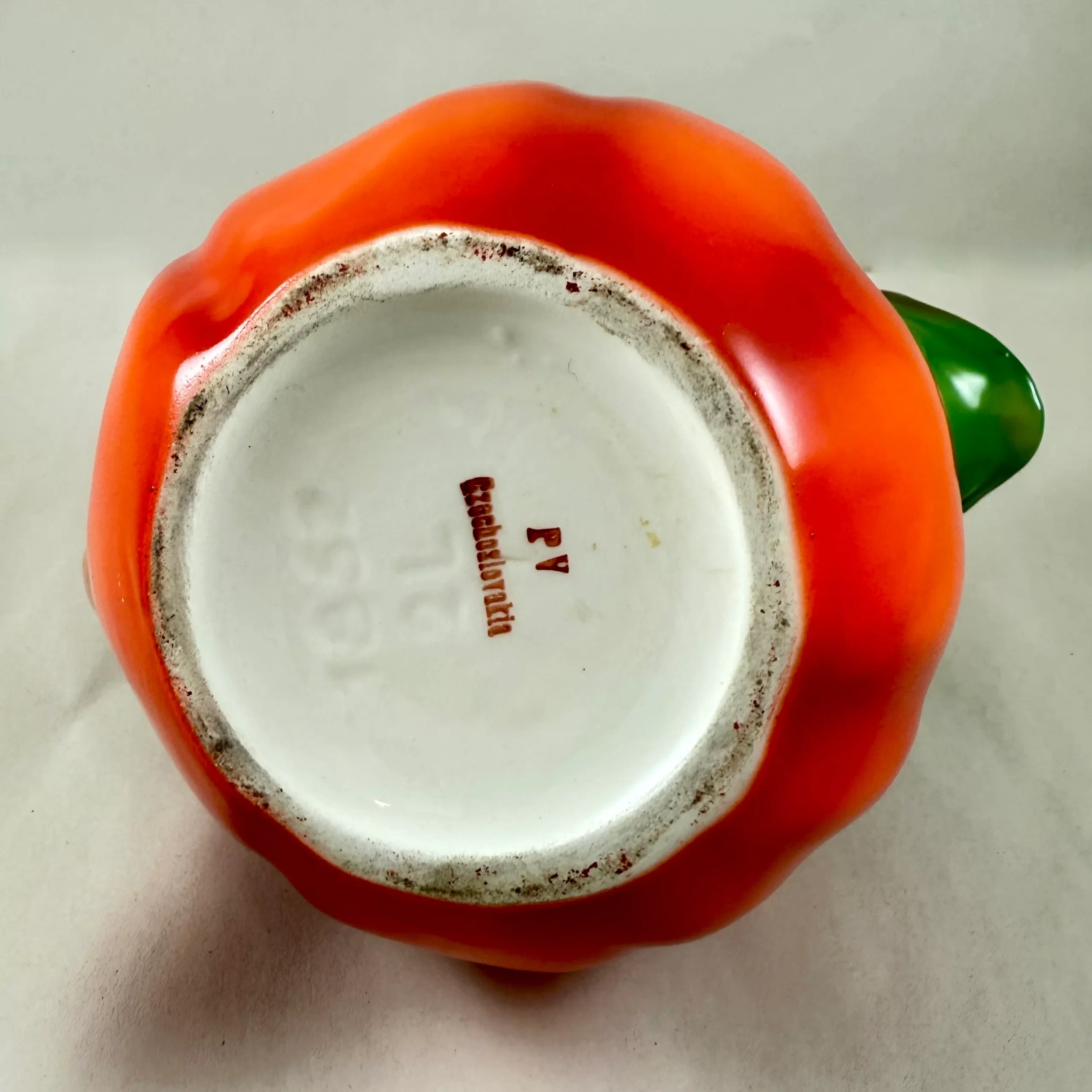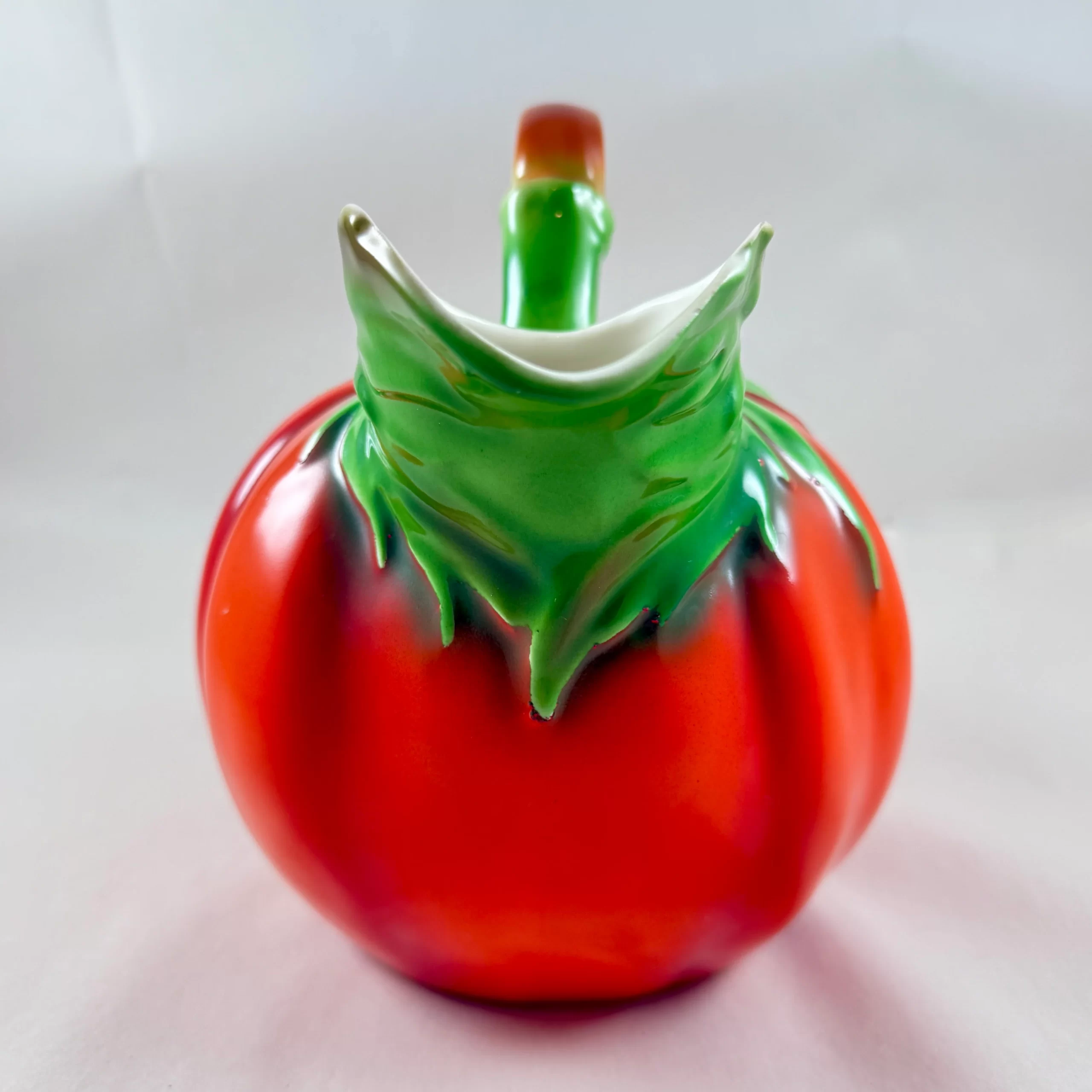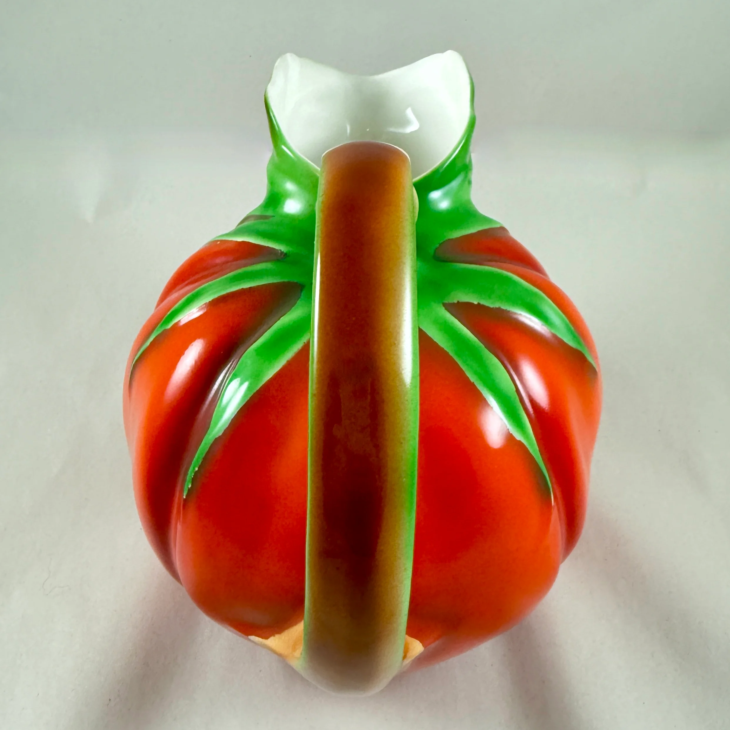 A bright red porcelain tomato pitcher, made in Czechoslovakia, circa 1920-1930.