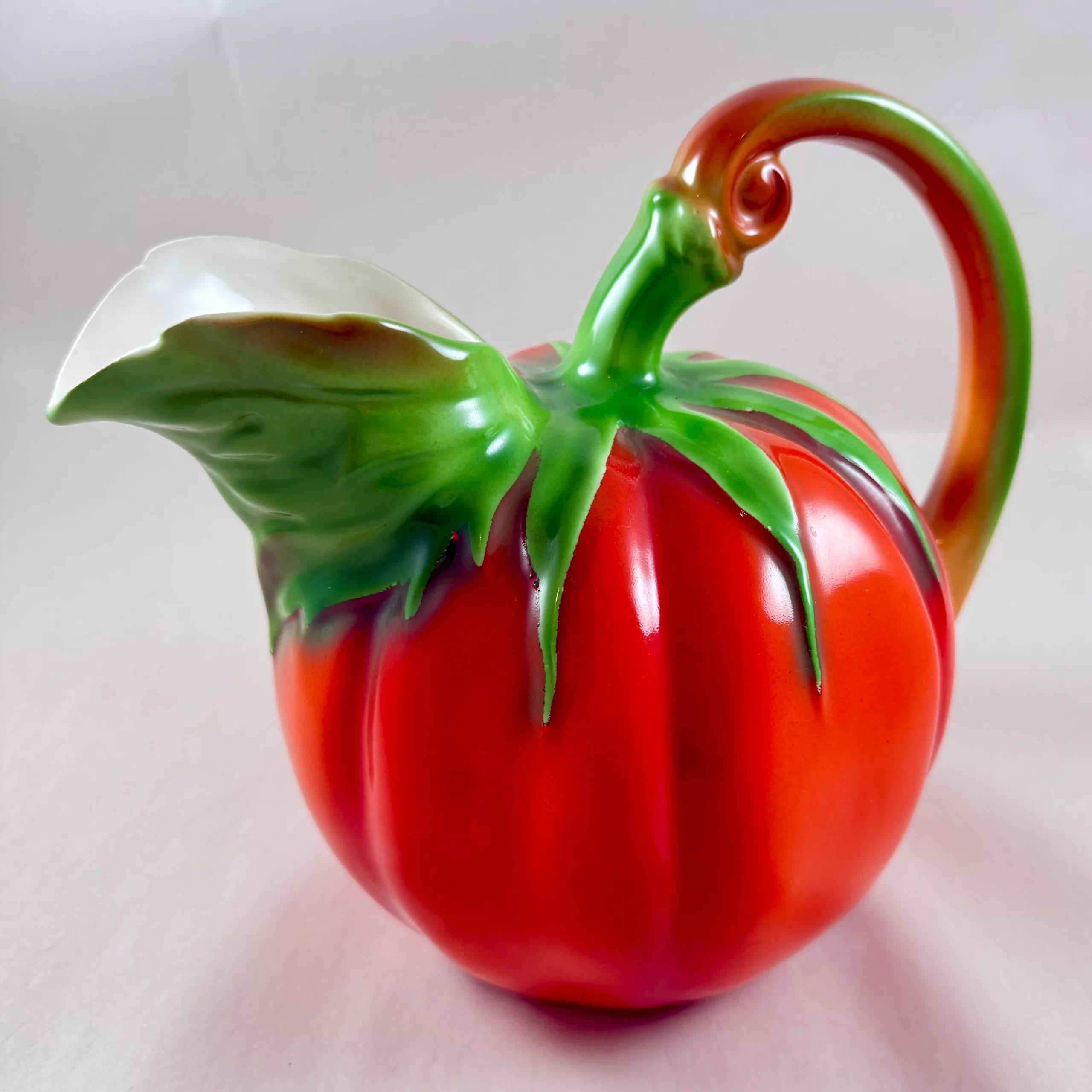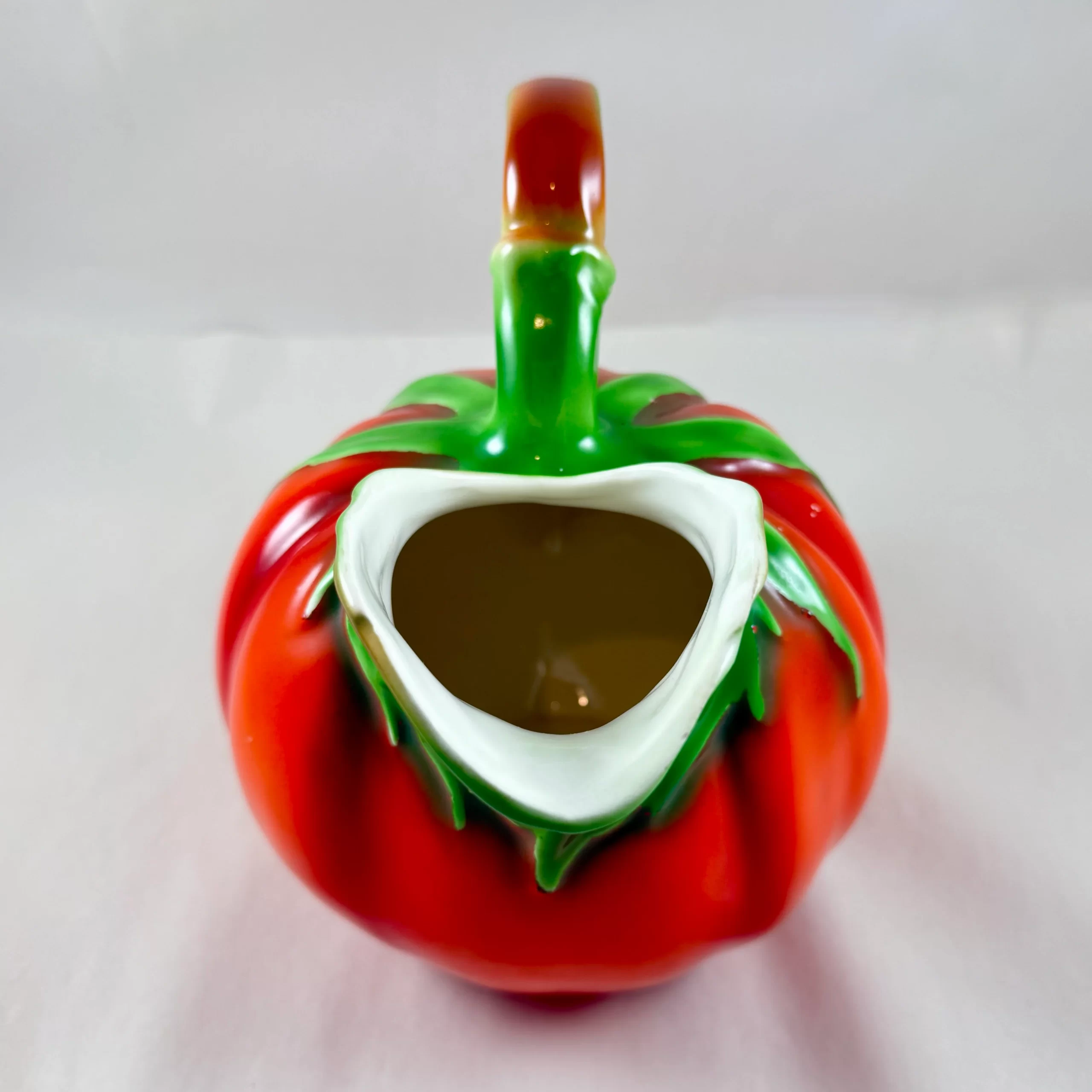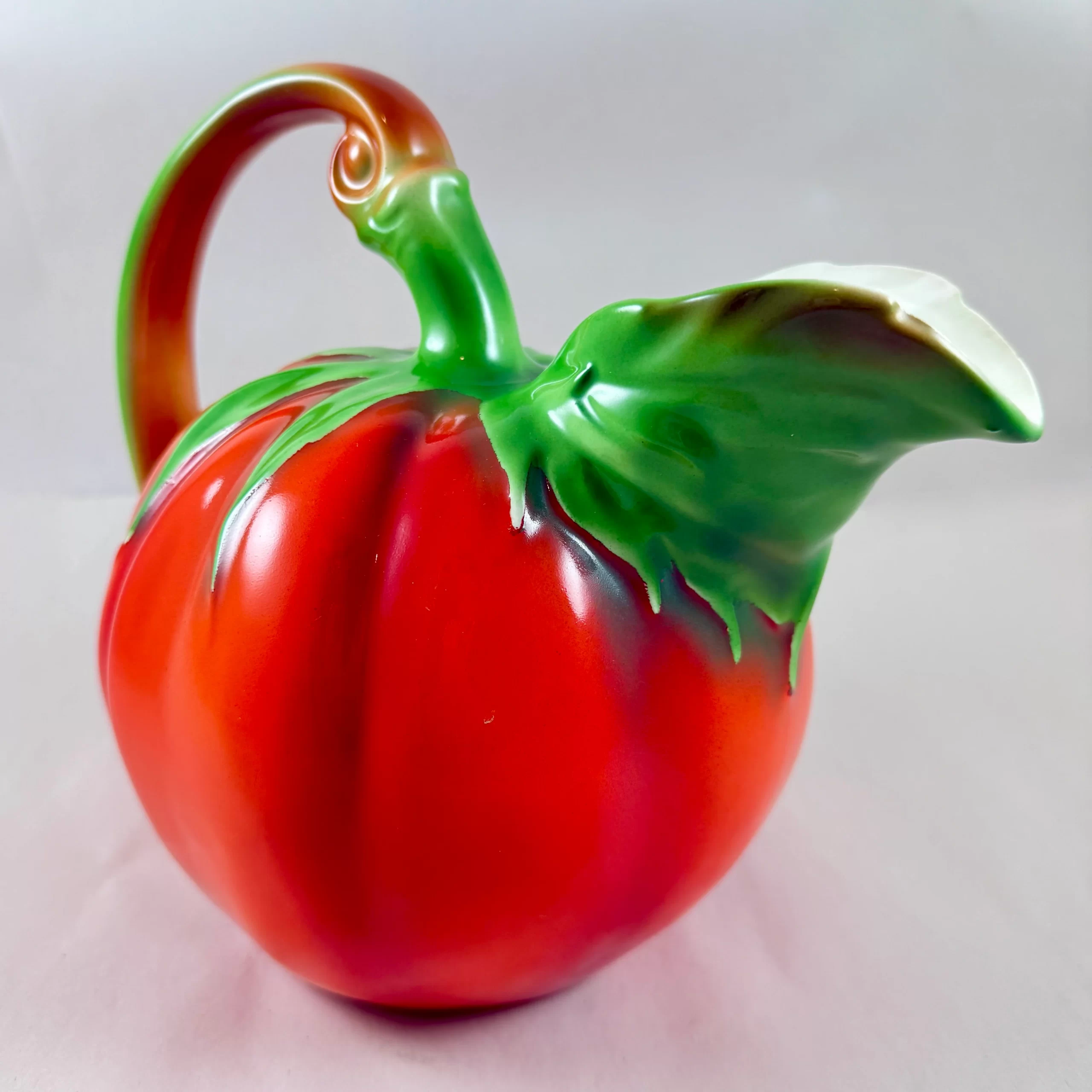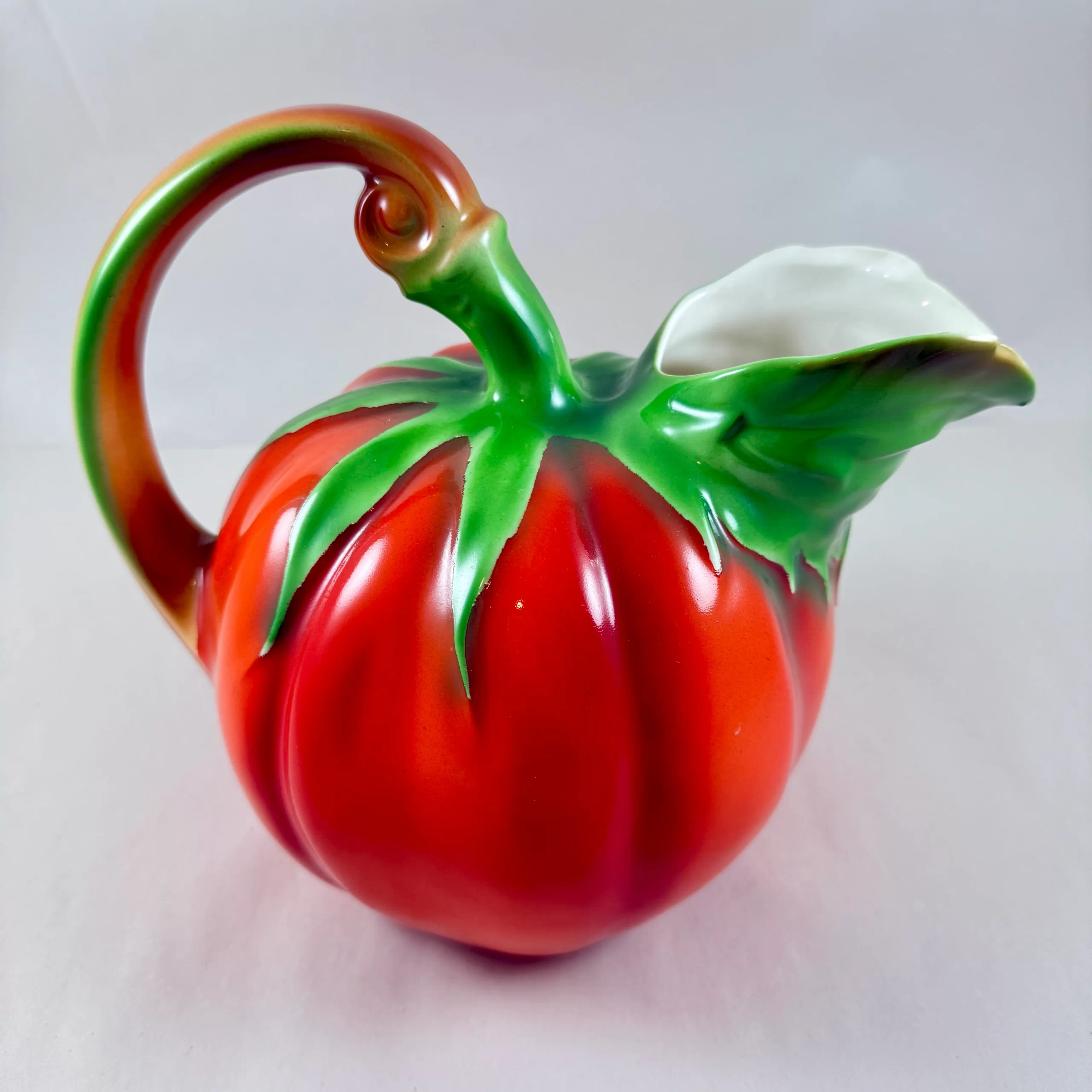 A bright red porcelain tomato pitcher, made in Czechoslovakia, circa 1920-1930.