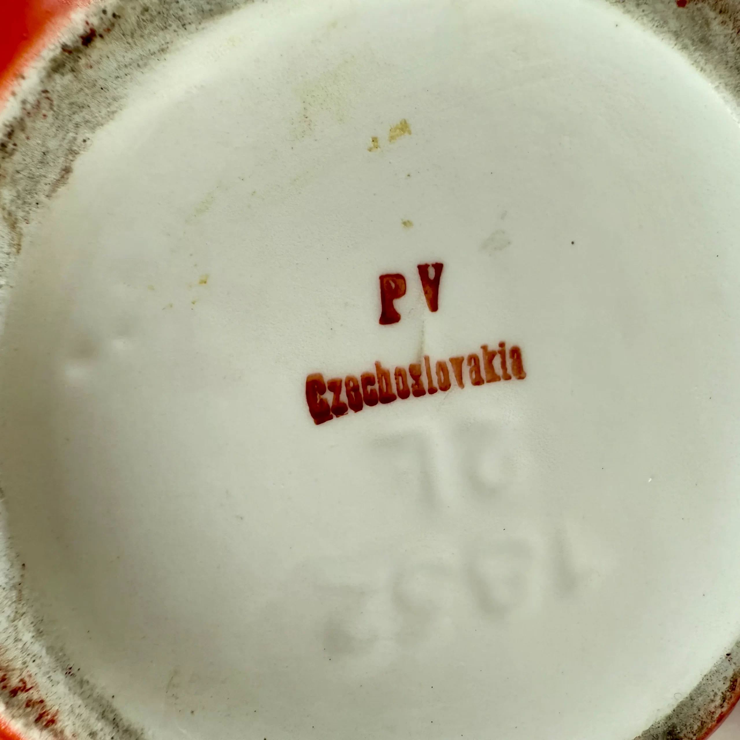 The “PV” likely stands for “Porcela Vapennice,” a factory that produced porcelain and art pottery of whimsical design.