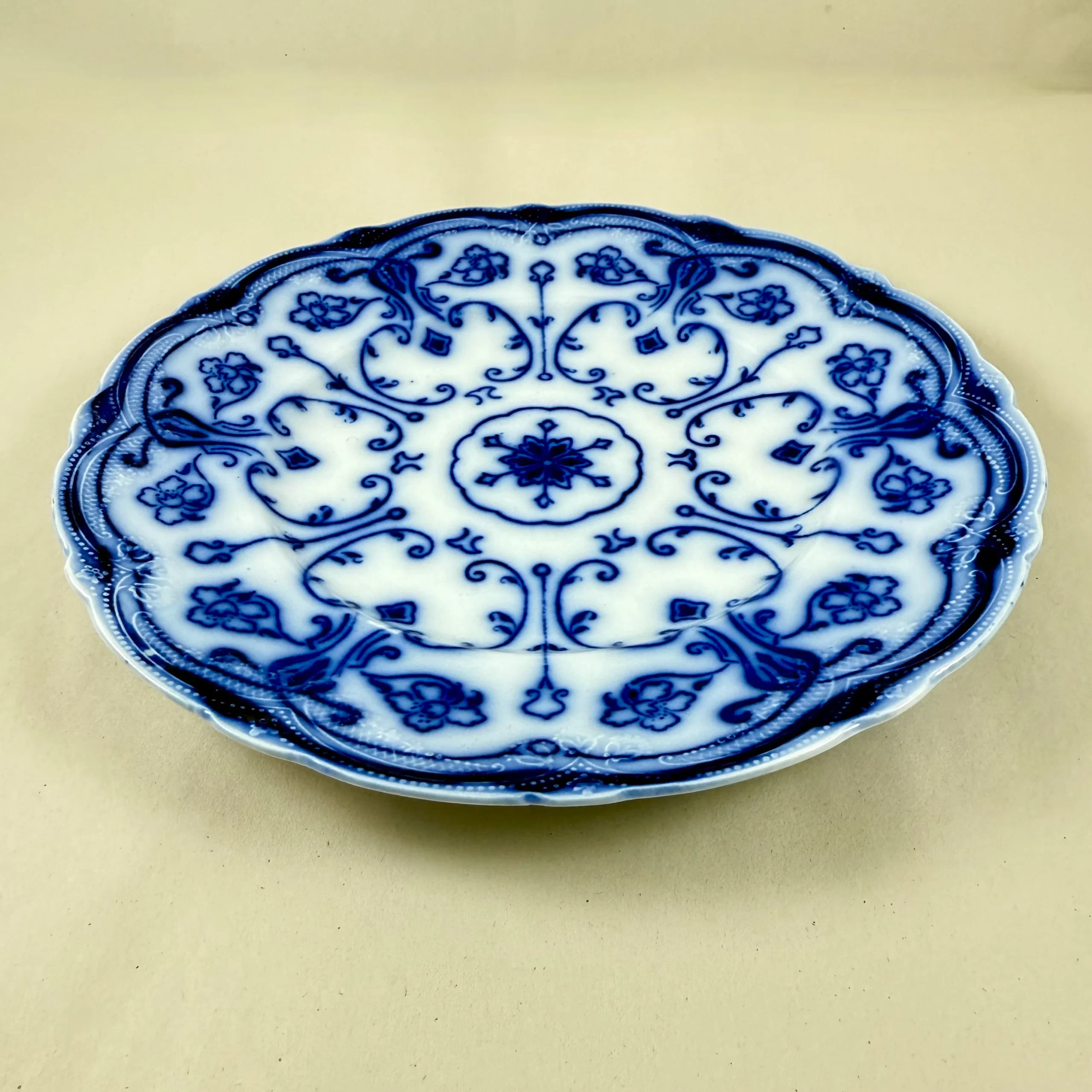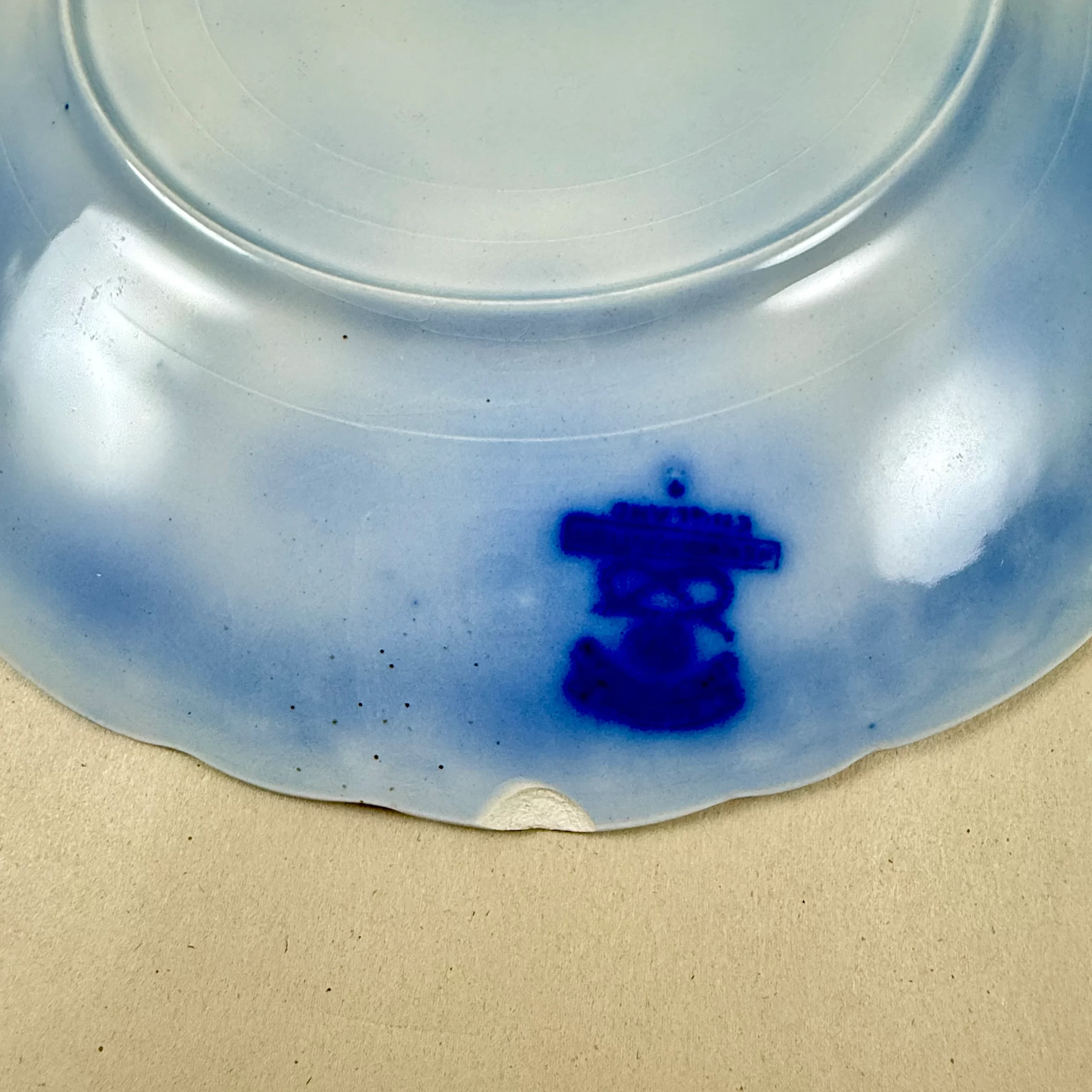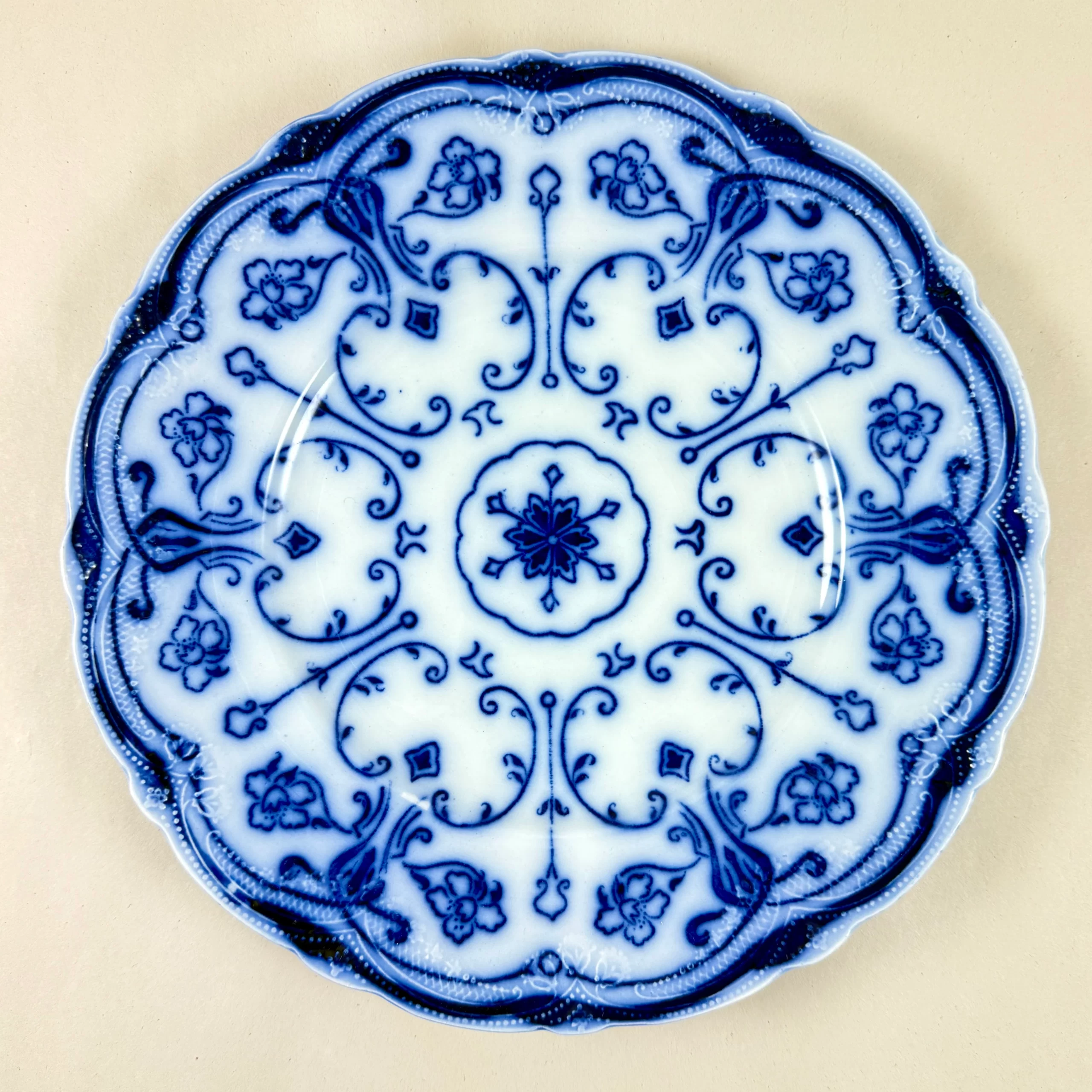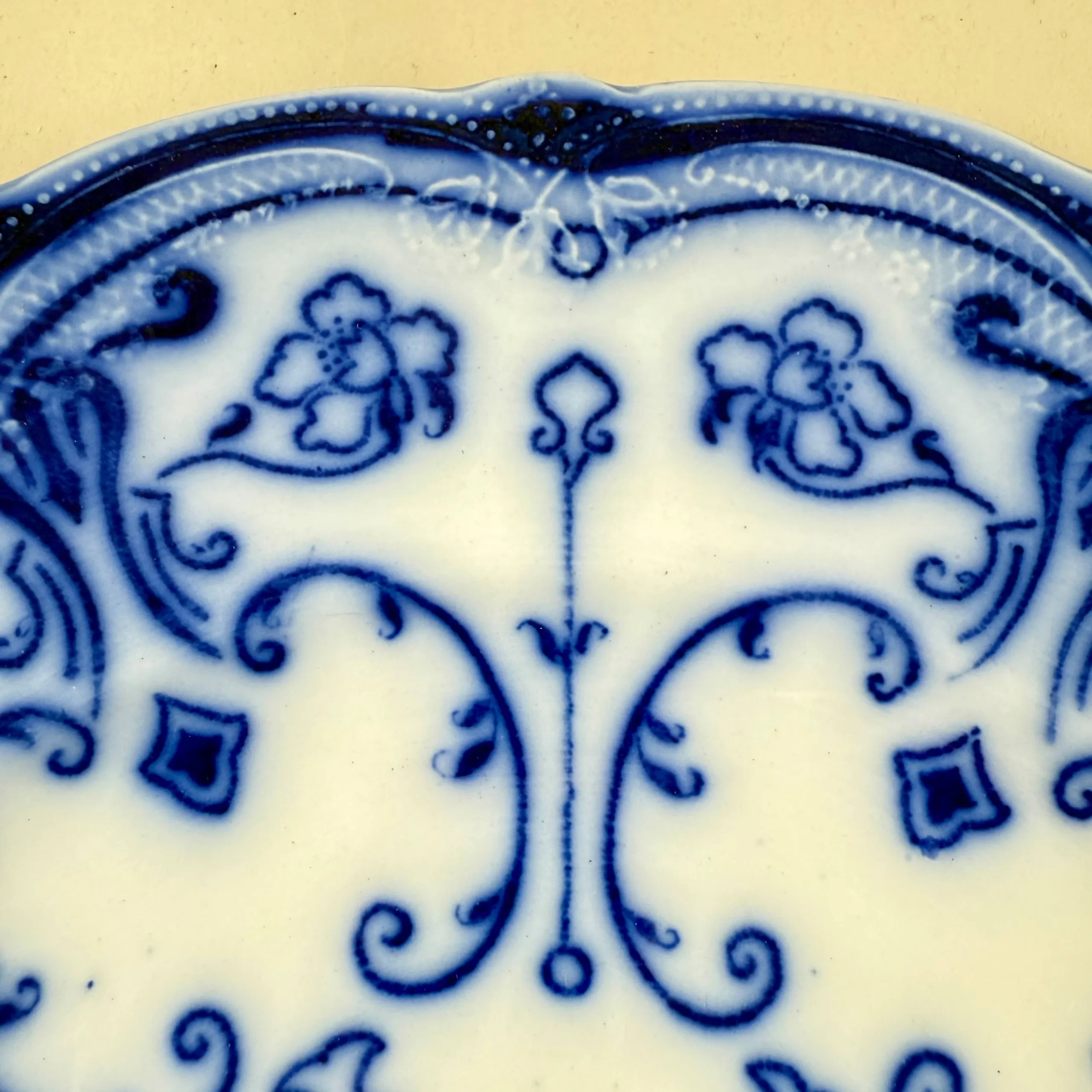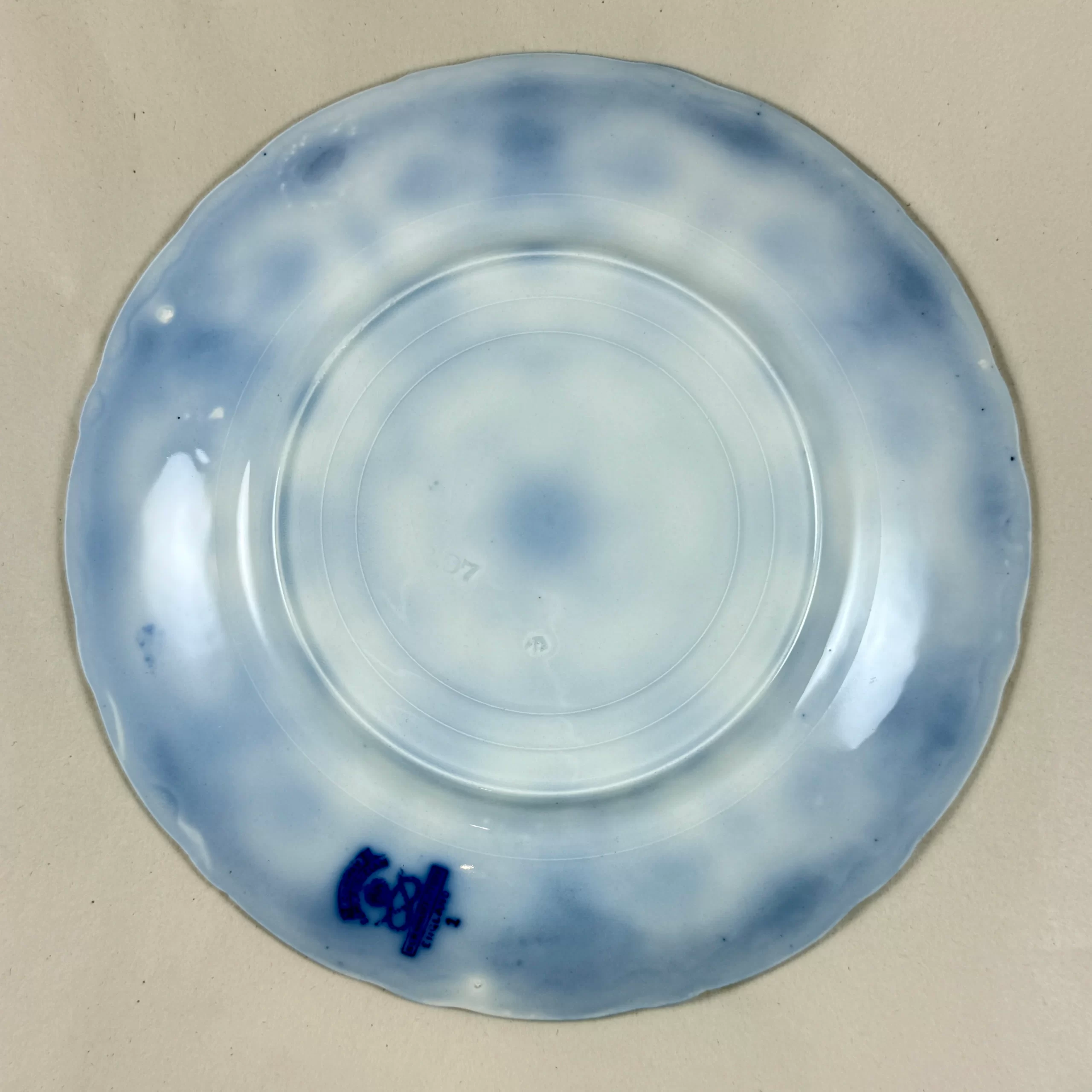 A set of four English Flow Blue Plates, in the Conway pattern, by New Wharf Pottery, circa late 1880s – early 1890s.