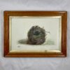 The subject is a nature study of a nest belonging to the English Willow Wren. The nest is surprisingly detailed and realistically painted, right down to the moss the little bird has used to cushion her nest. Â A single speckled egg is shown beside the nest.