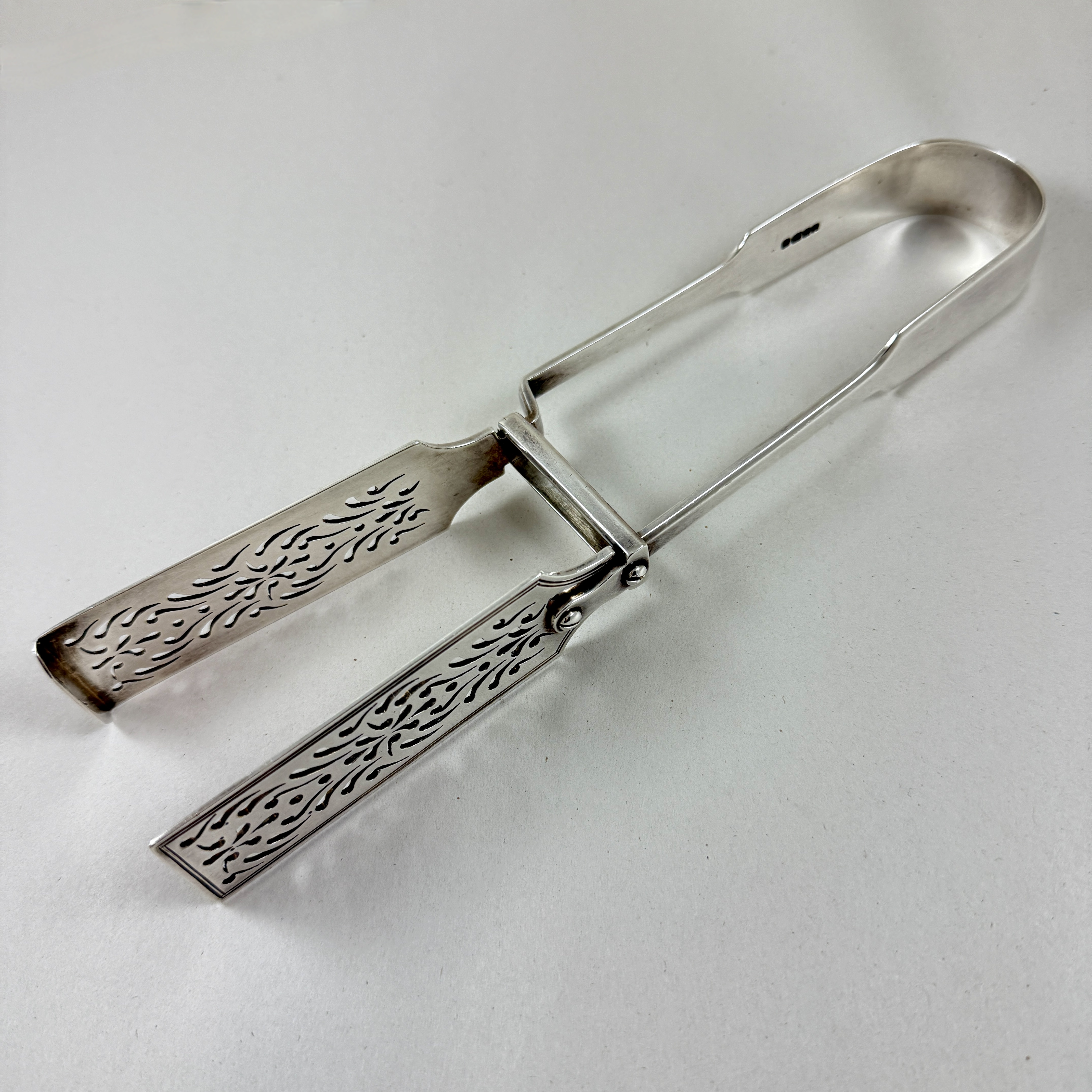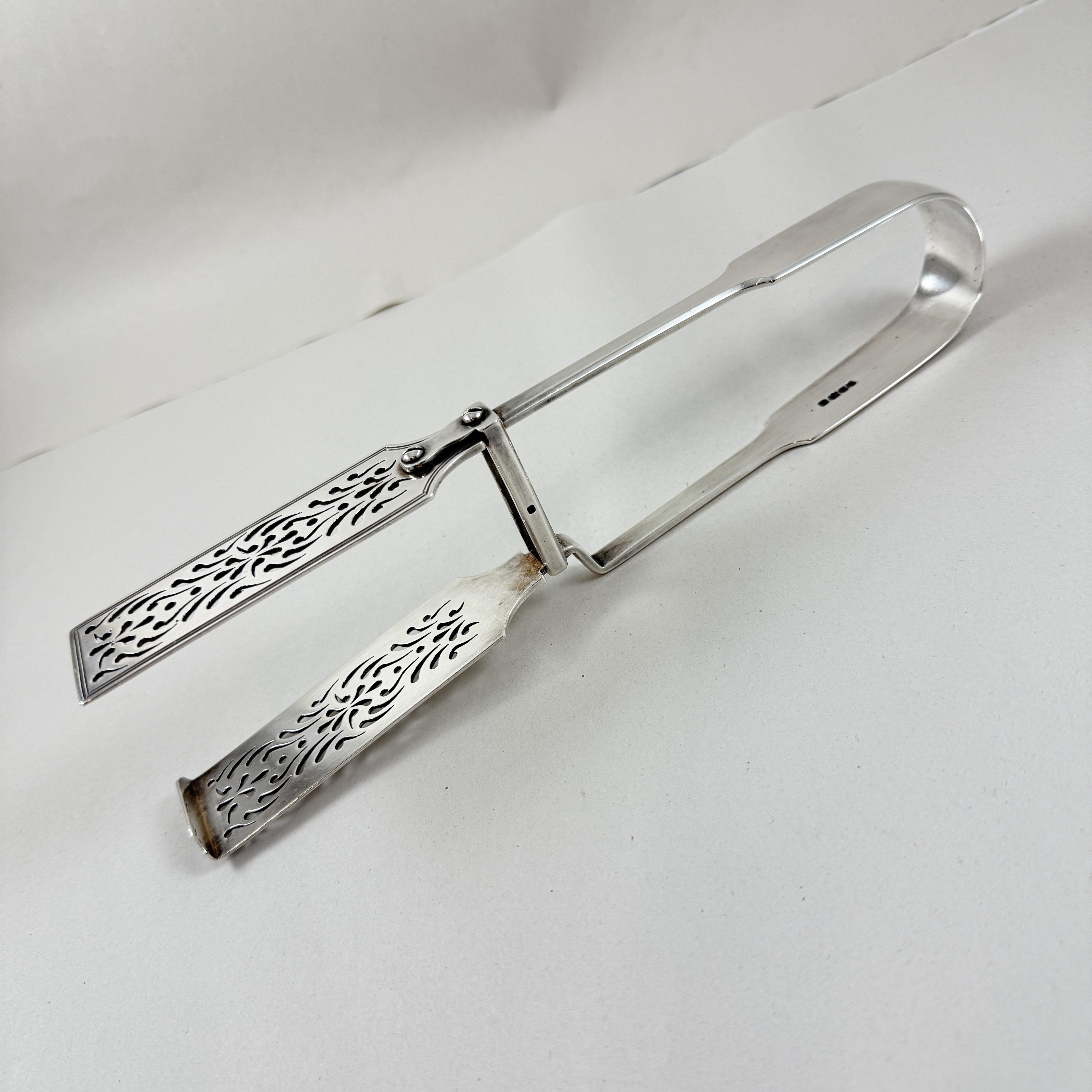 From the Victorian Era, a English hand-made Sterling Silver Asparagus master serving tongs. London, circa 1838,