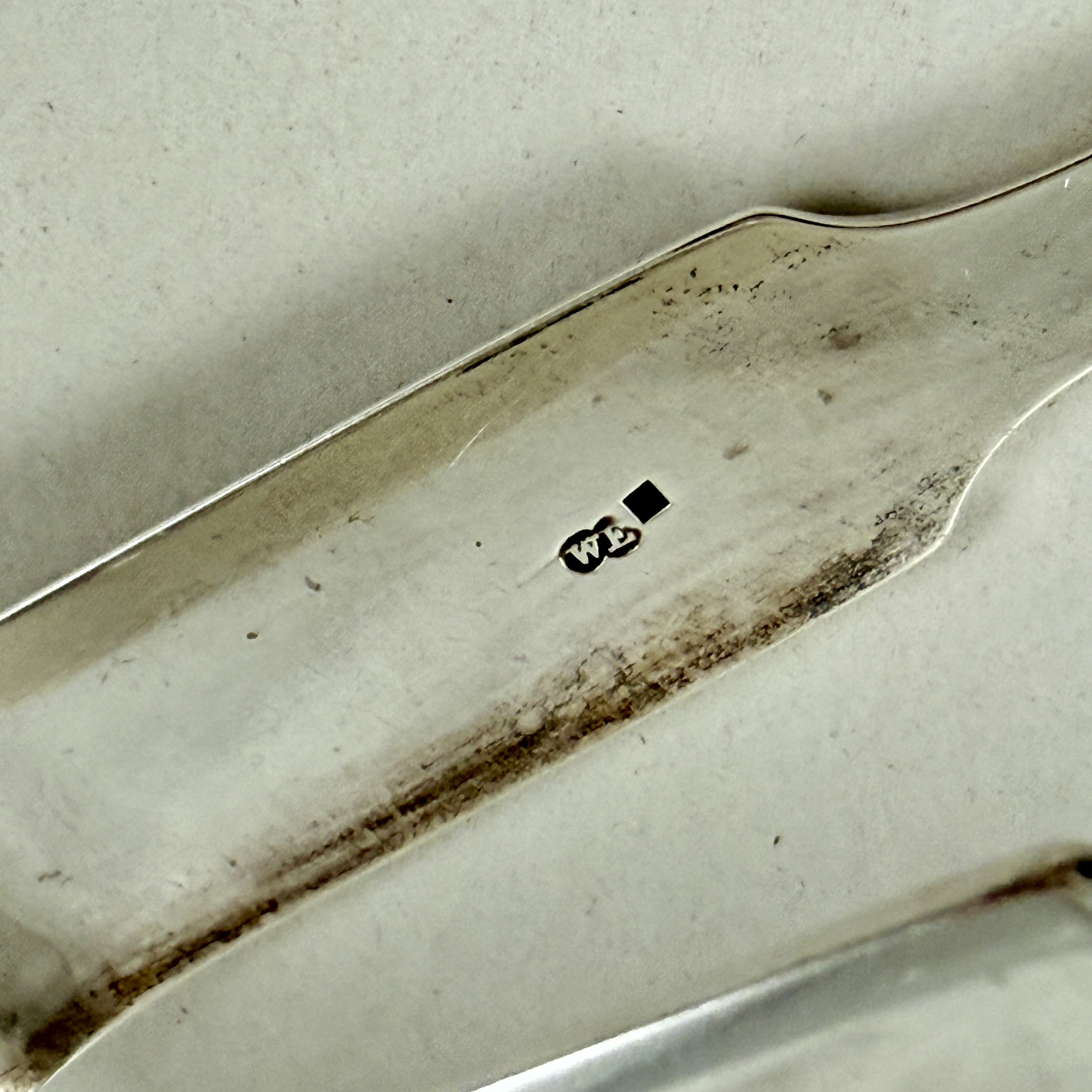 In The Fiddle Pattern, with beautifully ornate hand-pierced blades, one blade with a raised lip for easy grabbing of asparagus spears.