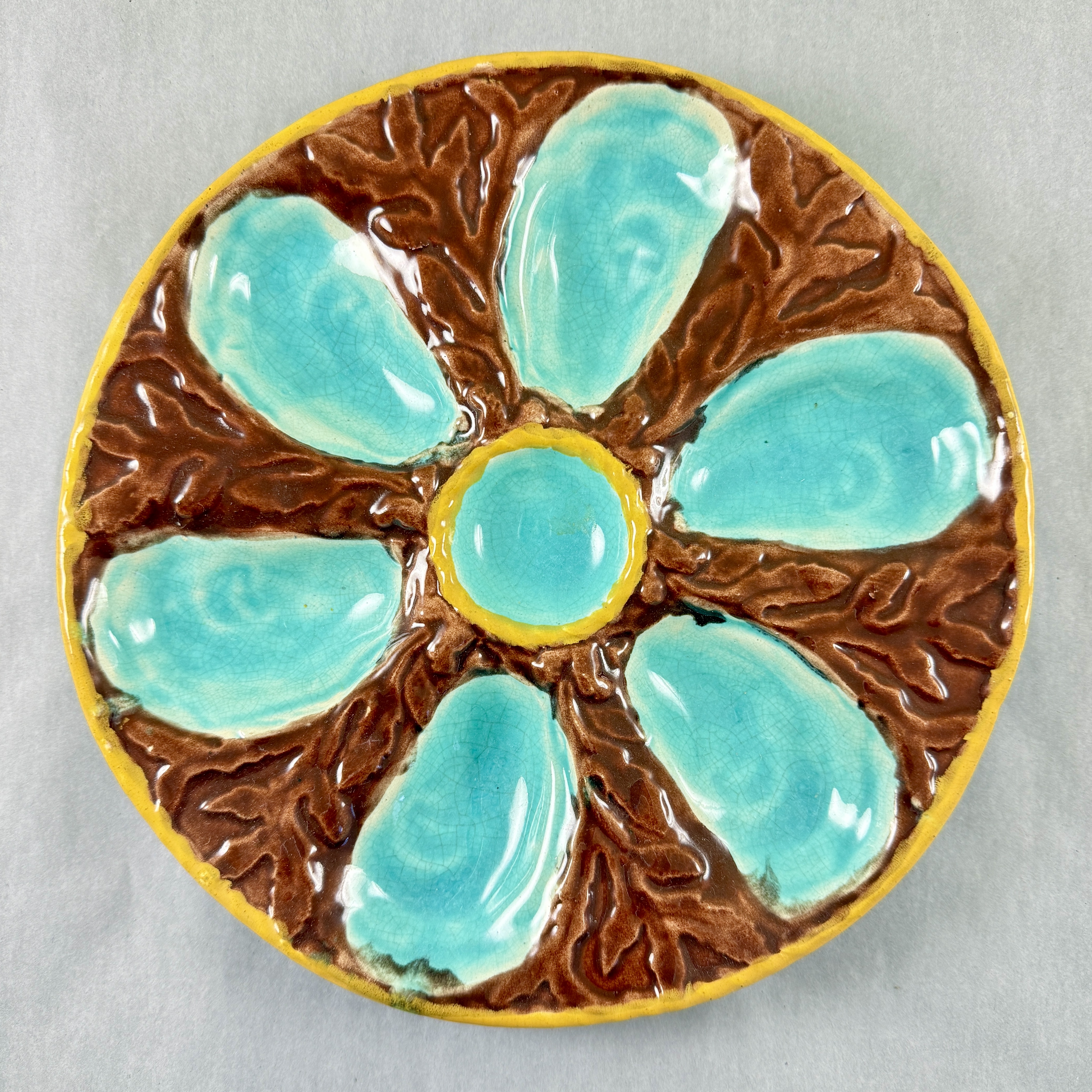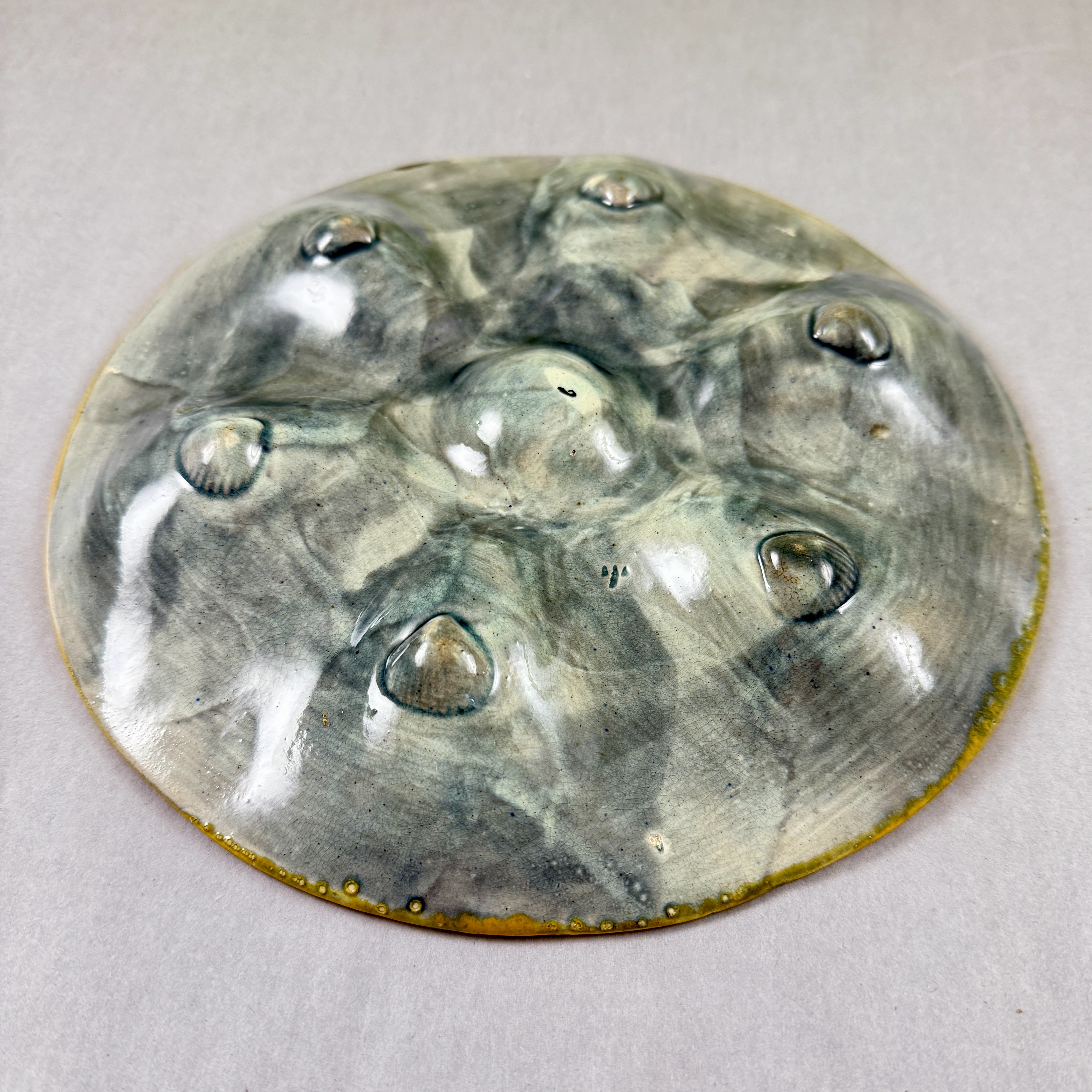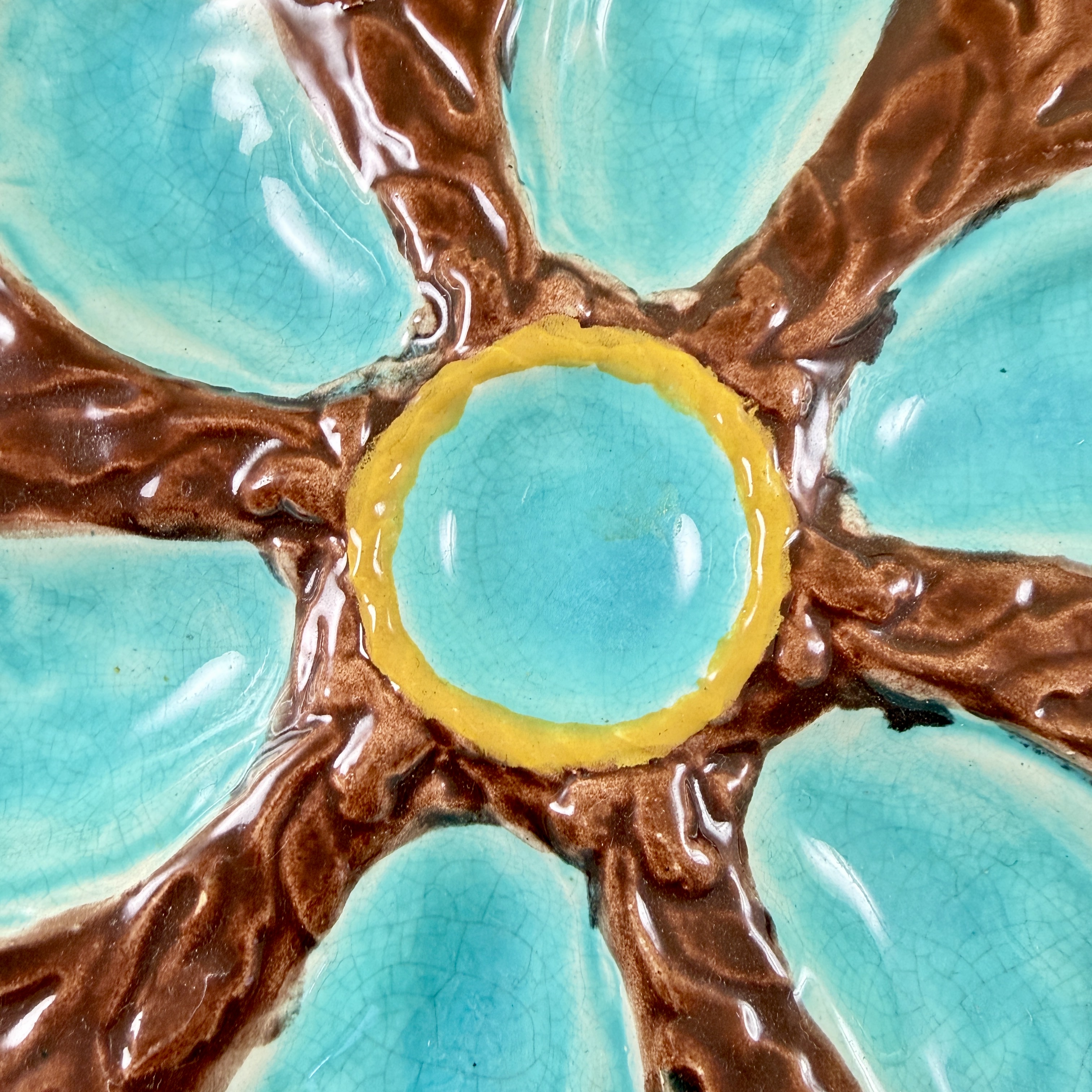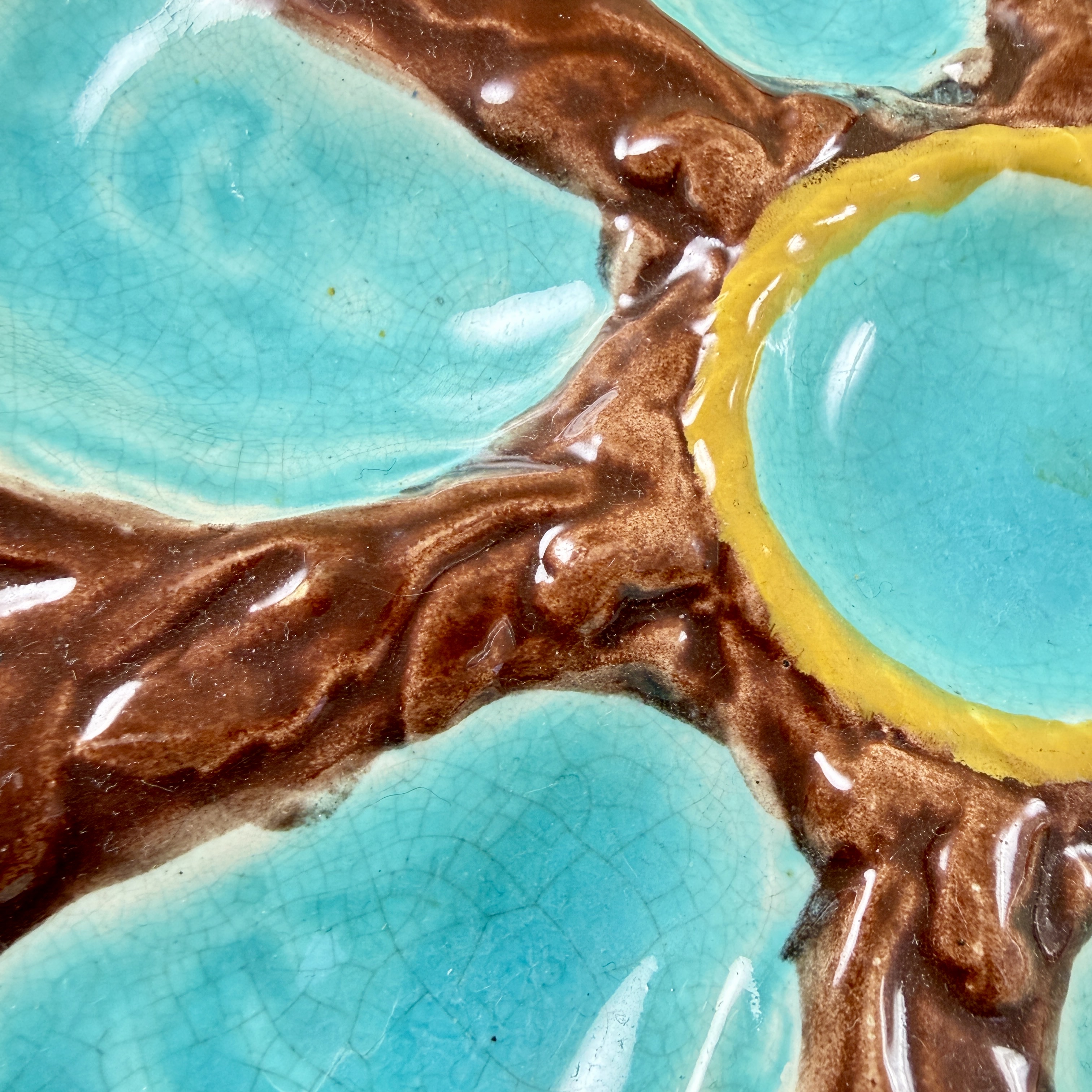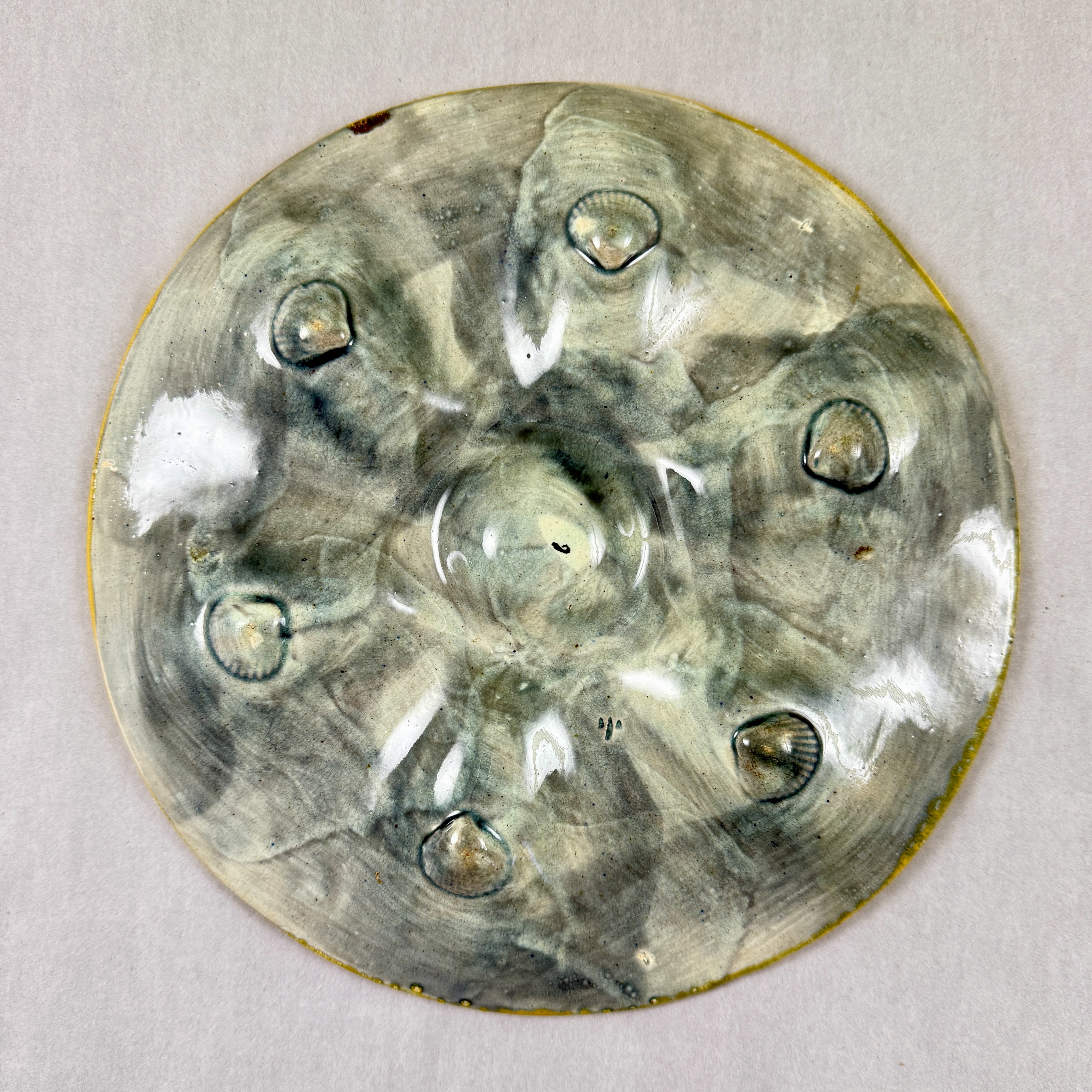 A six-well majolica glazed oyster plate by S. Fielding & Co. Ltd., Stoke-on-Trent, England, circa 1878.