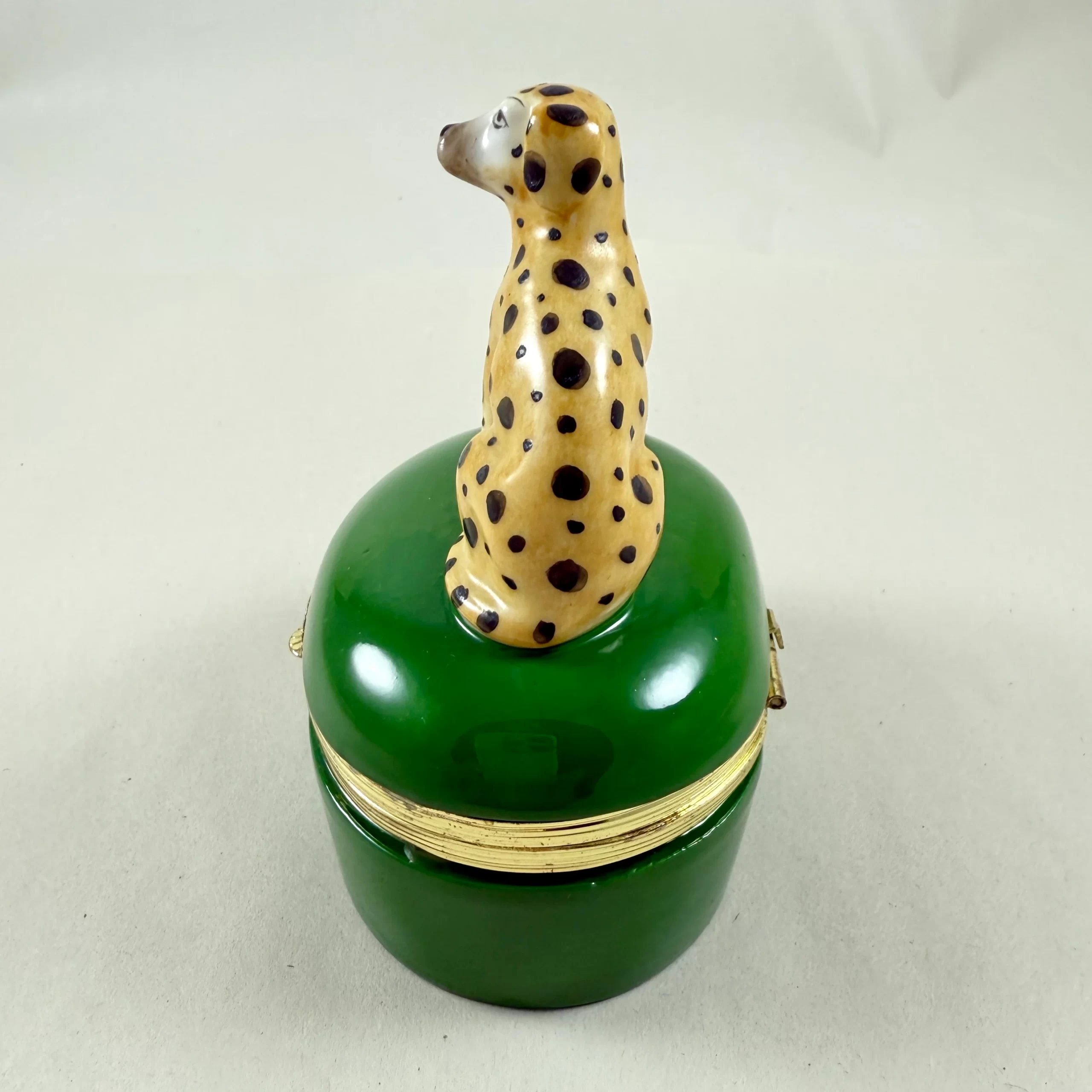 From Fitz and Floyd, a charming porcelain Dalmation trinket box, dating to 1985.