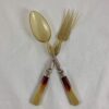 A French Art Deco styled salad serving set made of natural horn, Bakelite, and silver plate, circa 1920s. Found in une vente de Maison de Maitre in Vouvent, the Vendée region of France.
