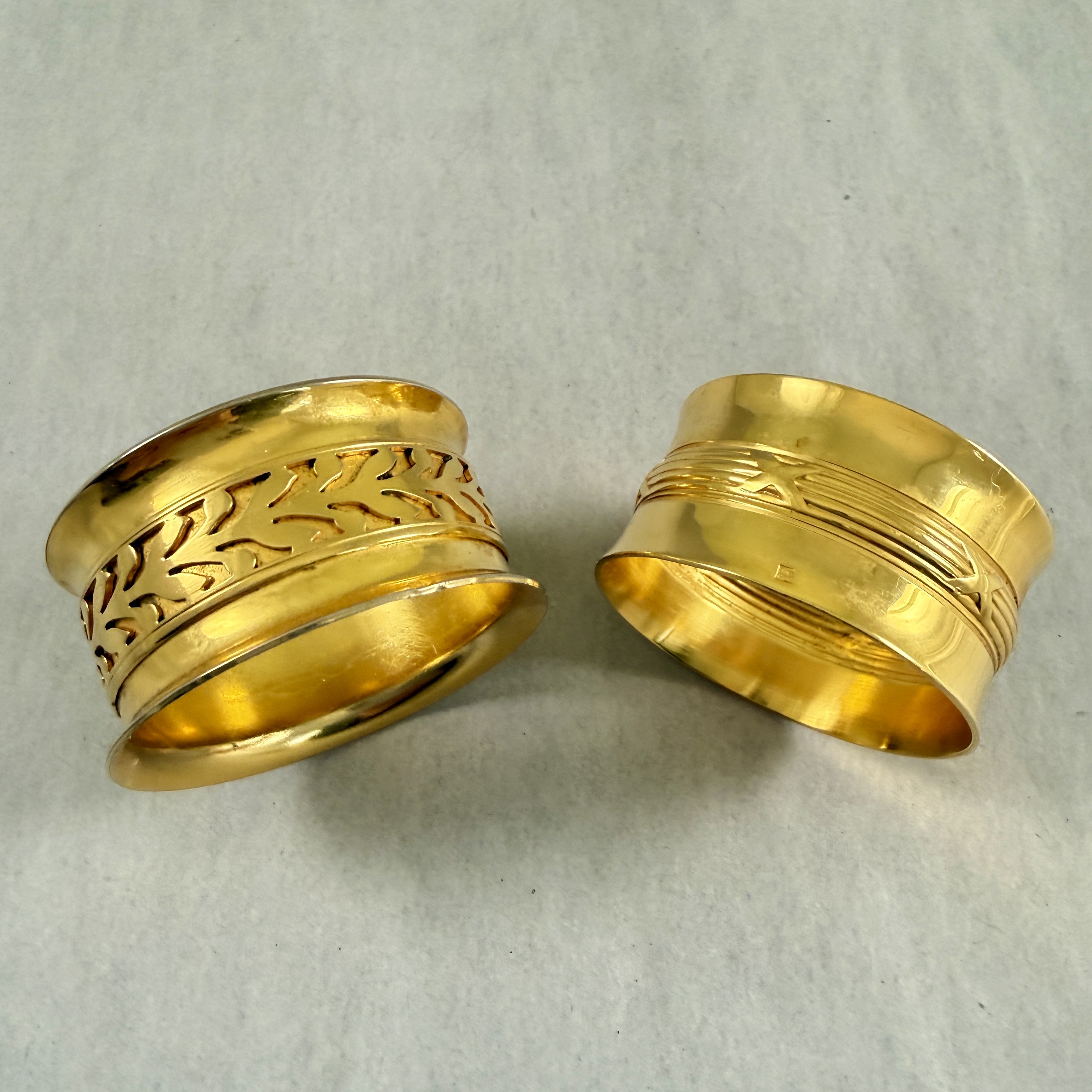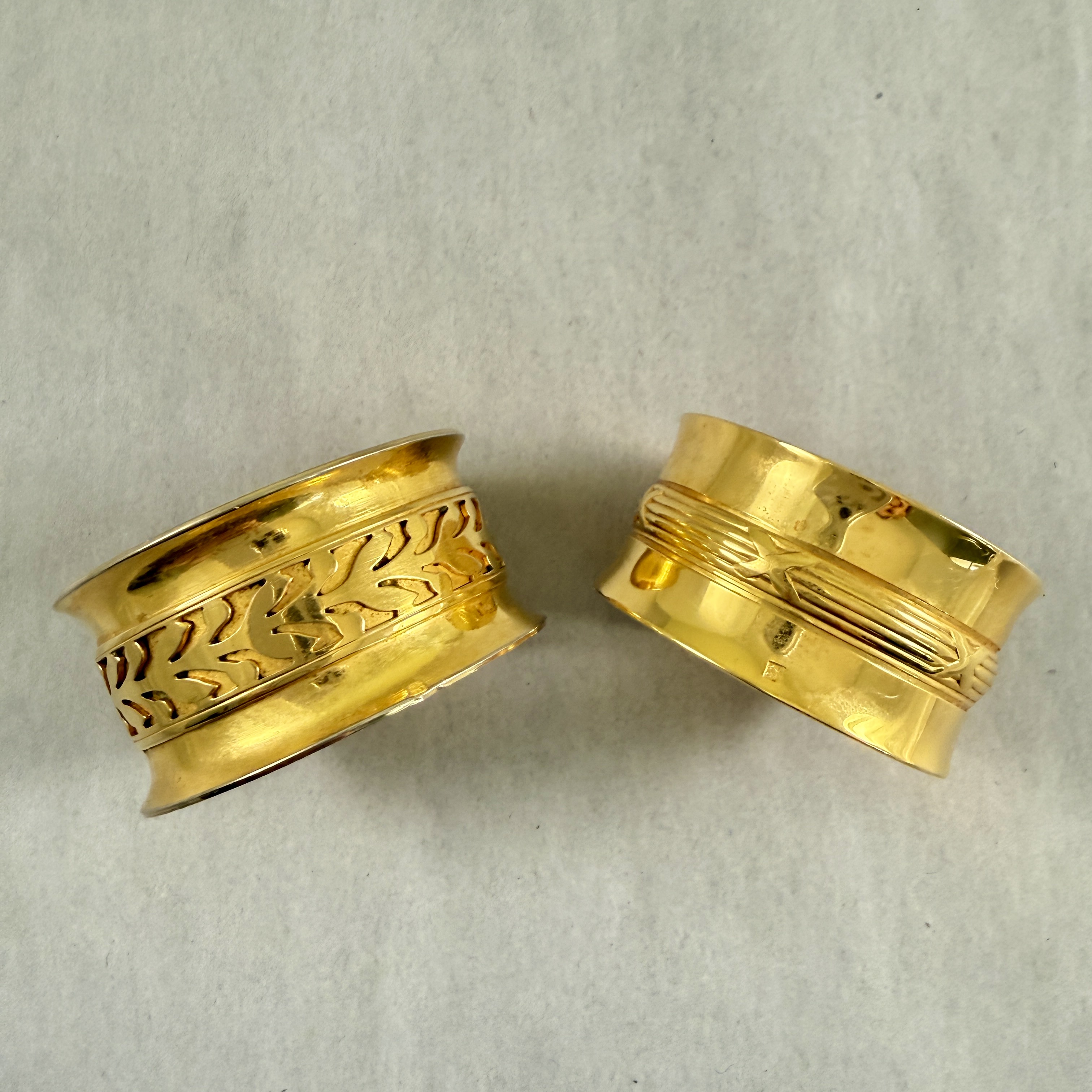 A mixed pair of gold-plated napkin rings, from France, circa 1920s.