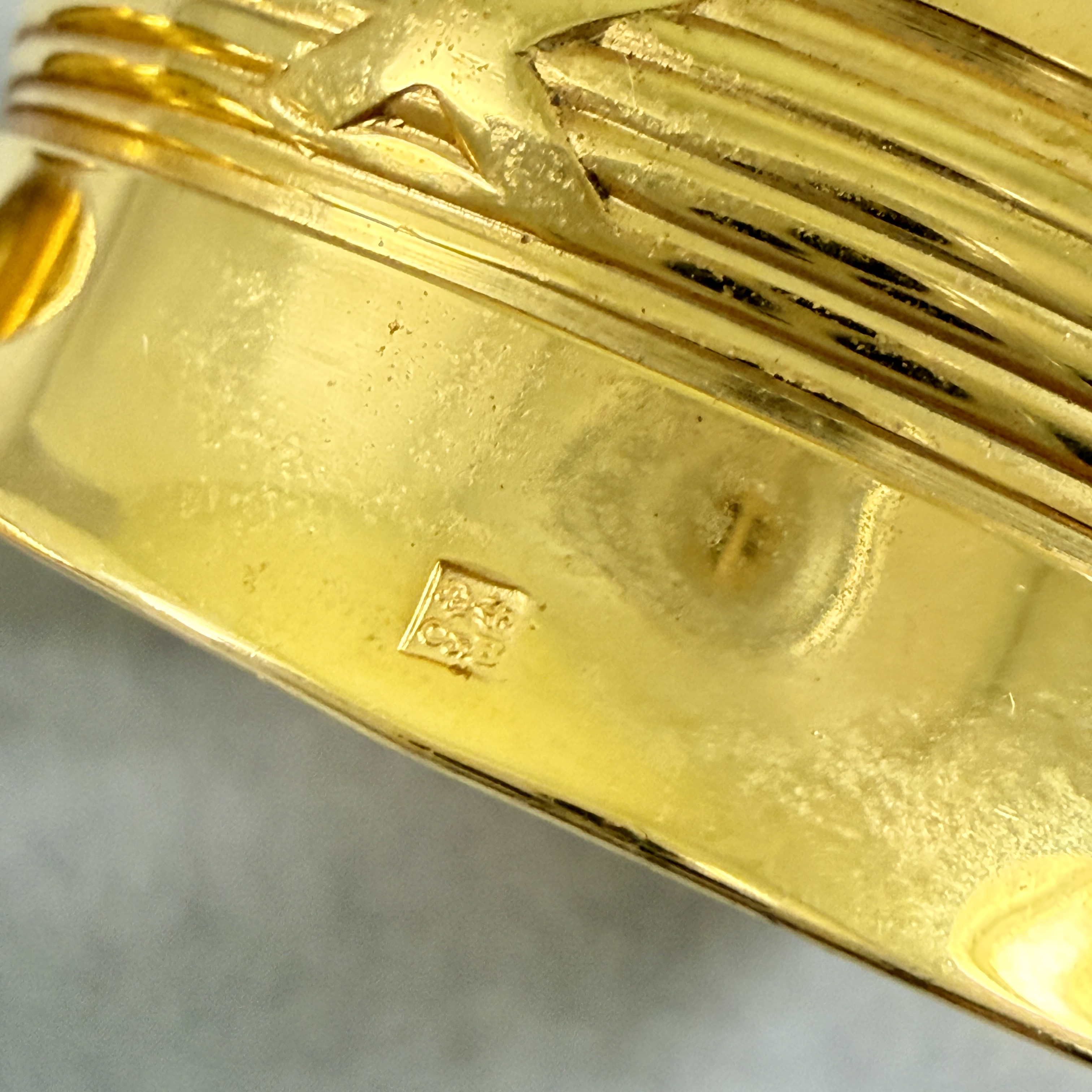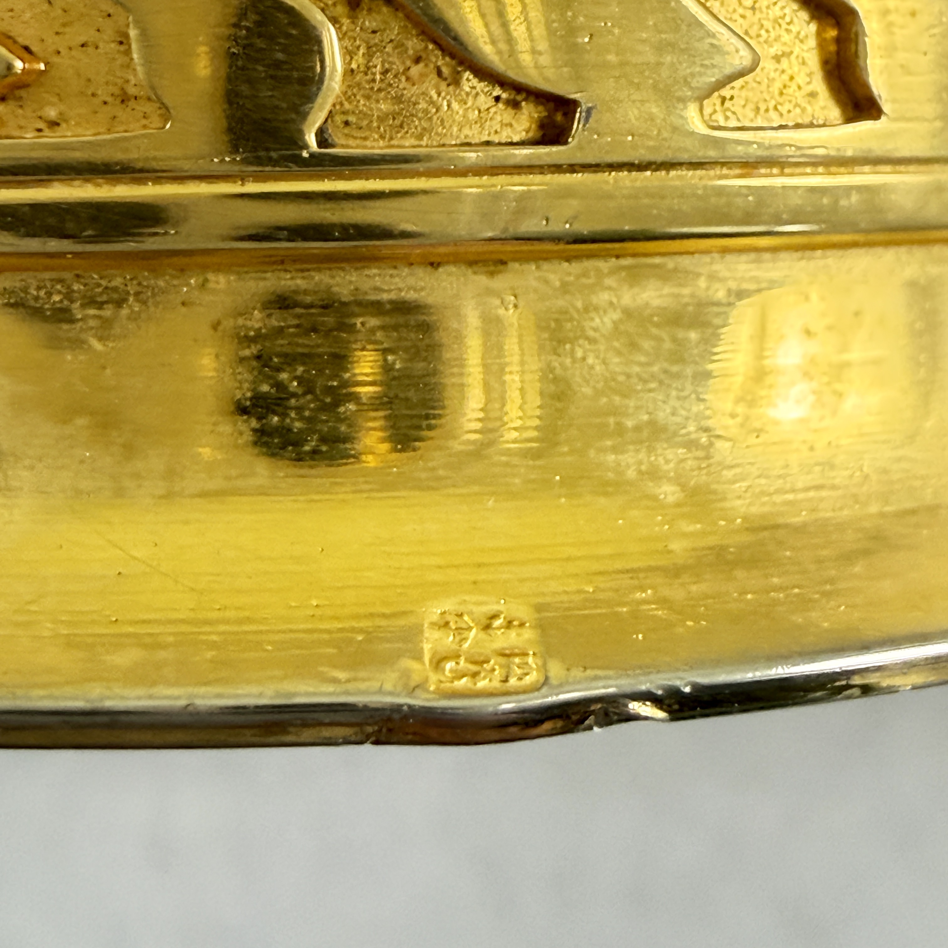 French gold plate, or plaqué, is typically identified by a square-shaped maker’s mark called a poinçon de maître, often featuring initials, a symbol, and sometimes the letters GP. Both of these rings show the makers stamp.