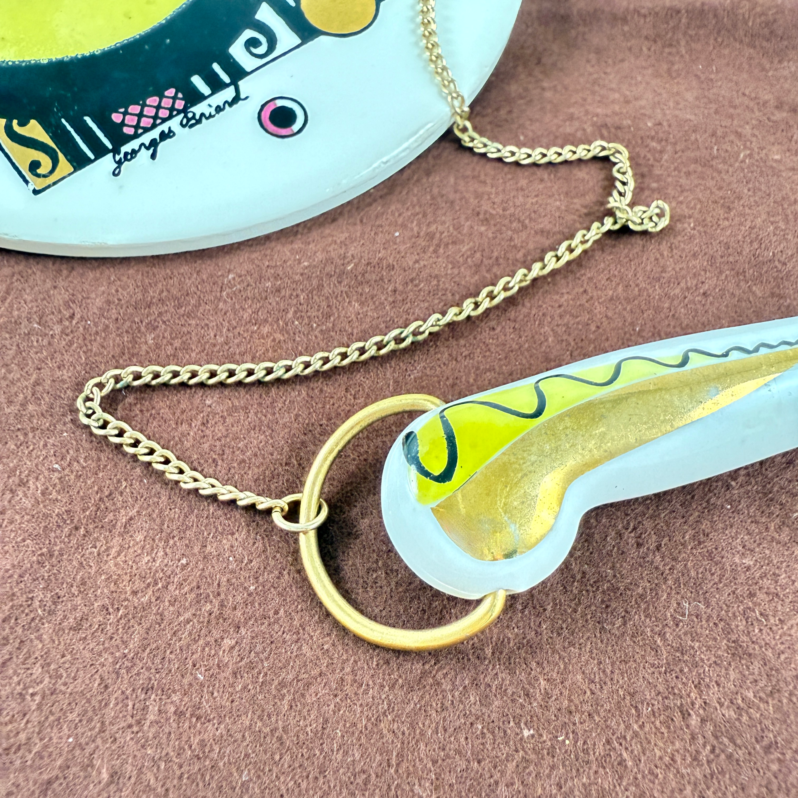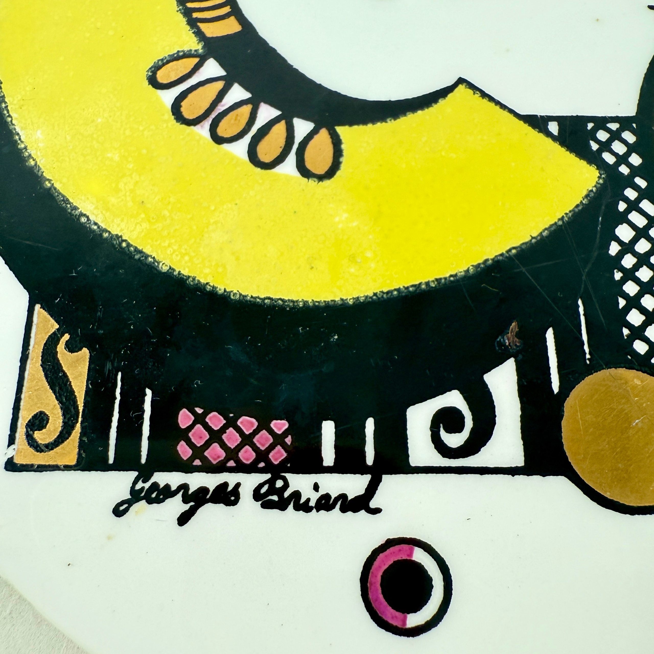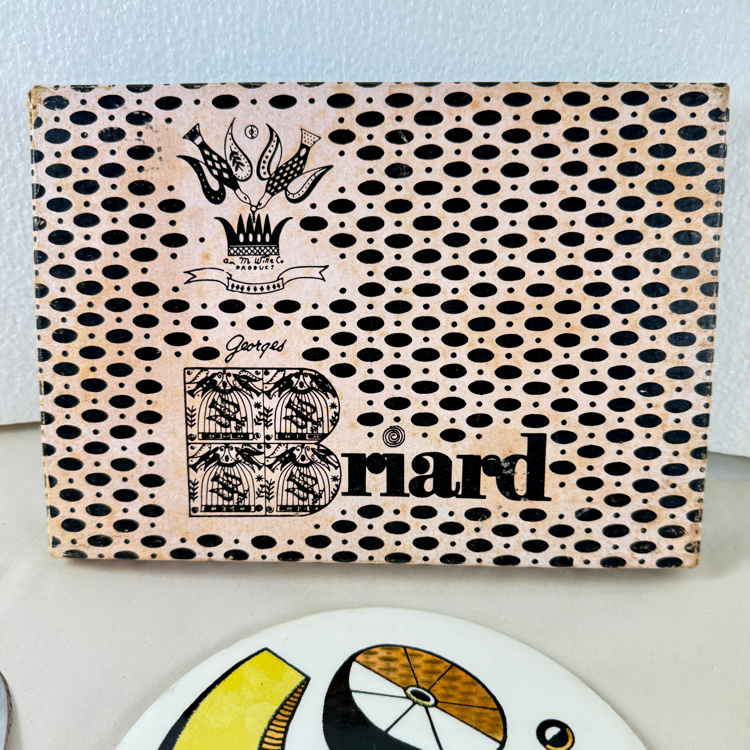 Georges Briard created award-winning designs for items including glasses, trays, coffeepots and dishes in materials like glass, ceramics, metal, wood, and gold-plated serveware. His serveware was especially popular from the 1950s to ’70s. It was produced by companies including Culver, Pfaltzgraff and Medina Glass and sold at high-end department stores like Neiman Marcus and Bonwit Teller. Briard’s designs were found in the homes of the most fashionable hosts of the mid-century. Today, they are highly prized by collectors.