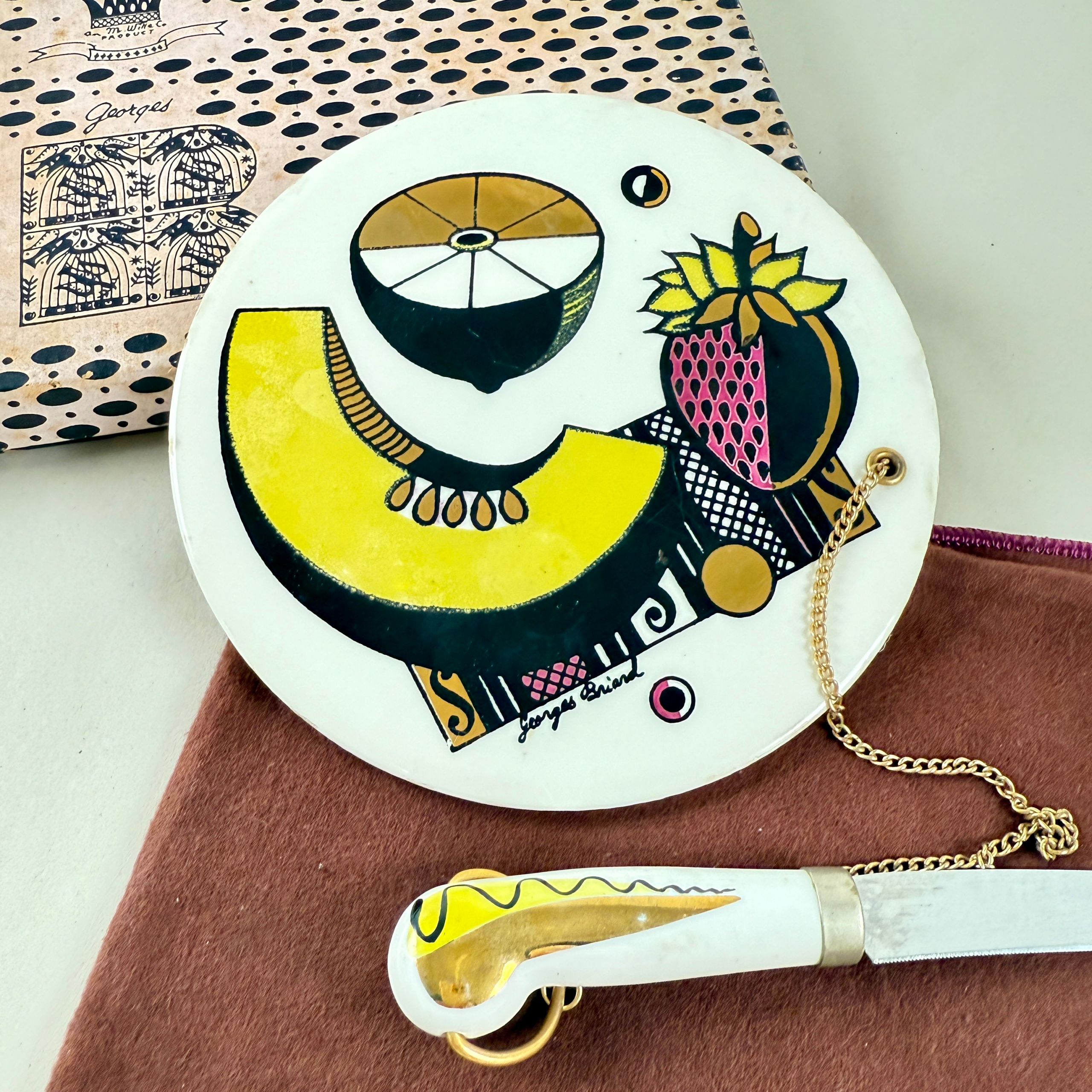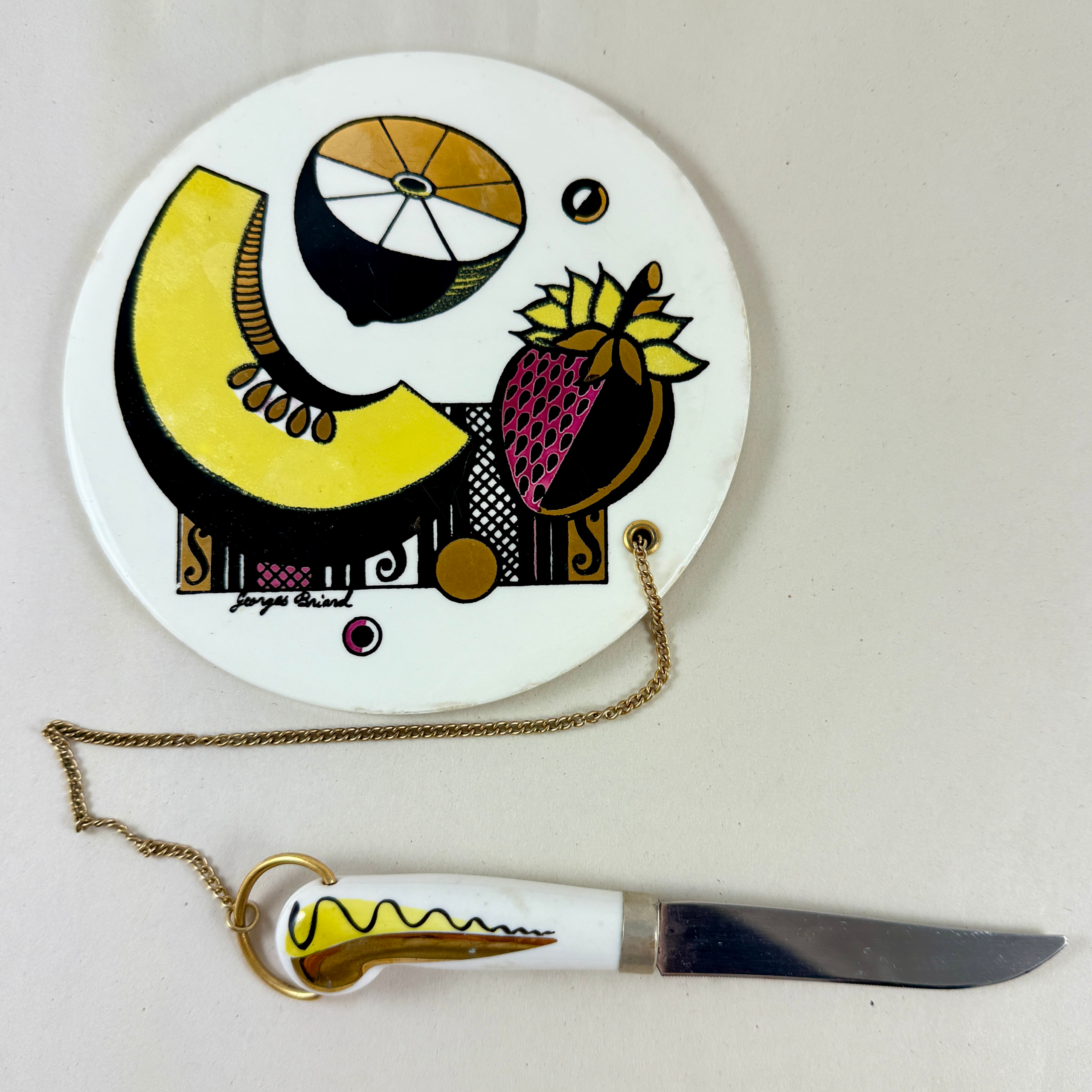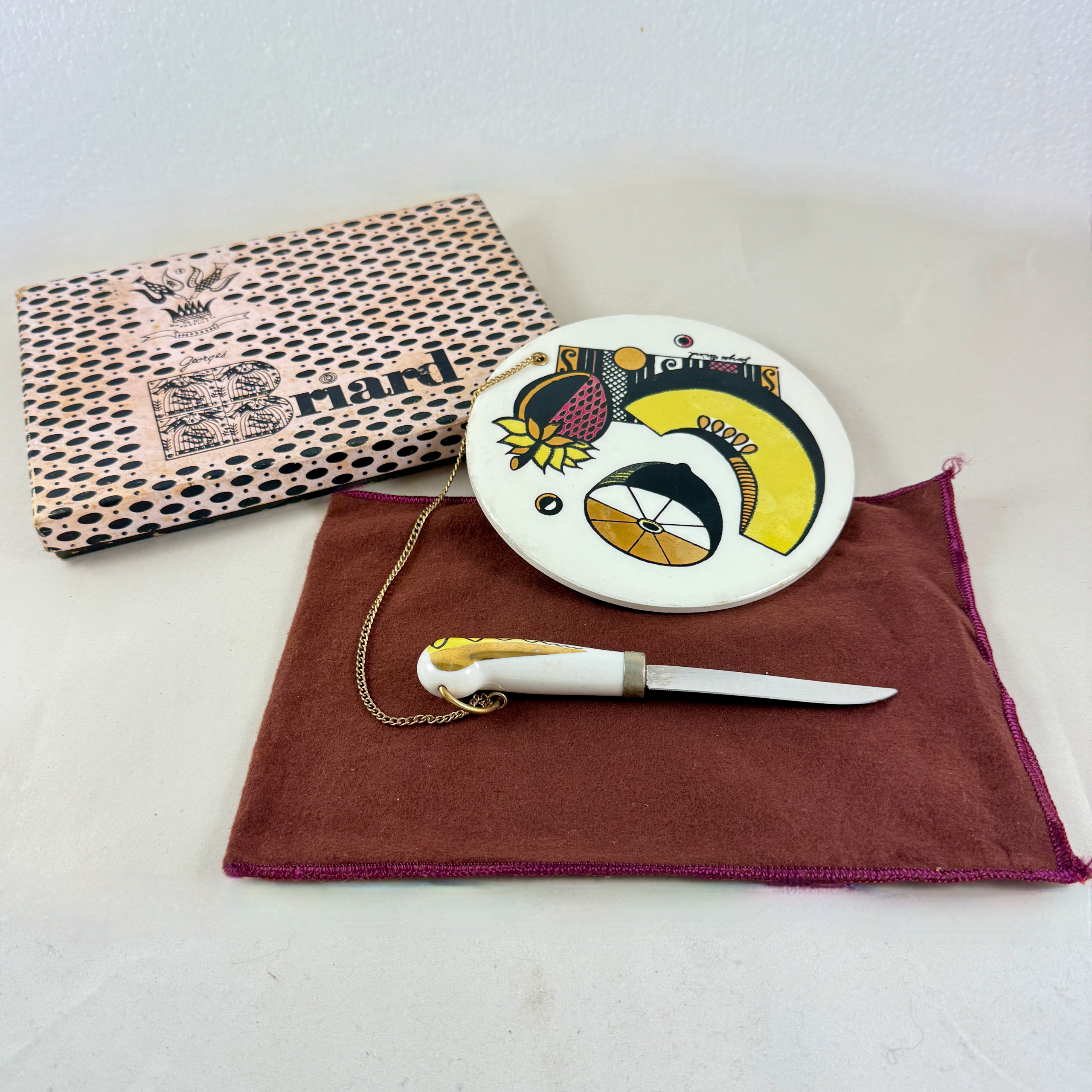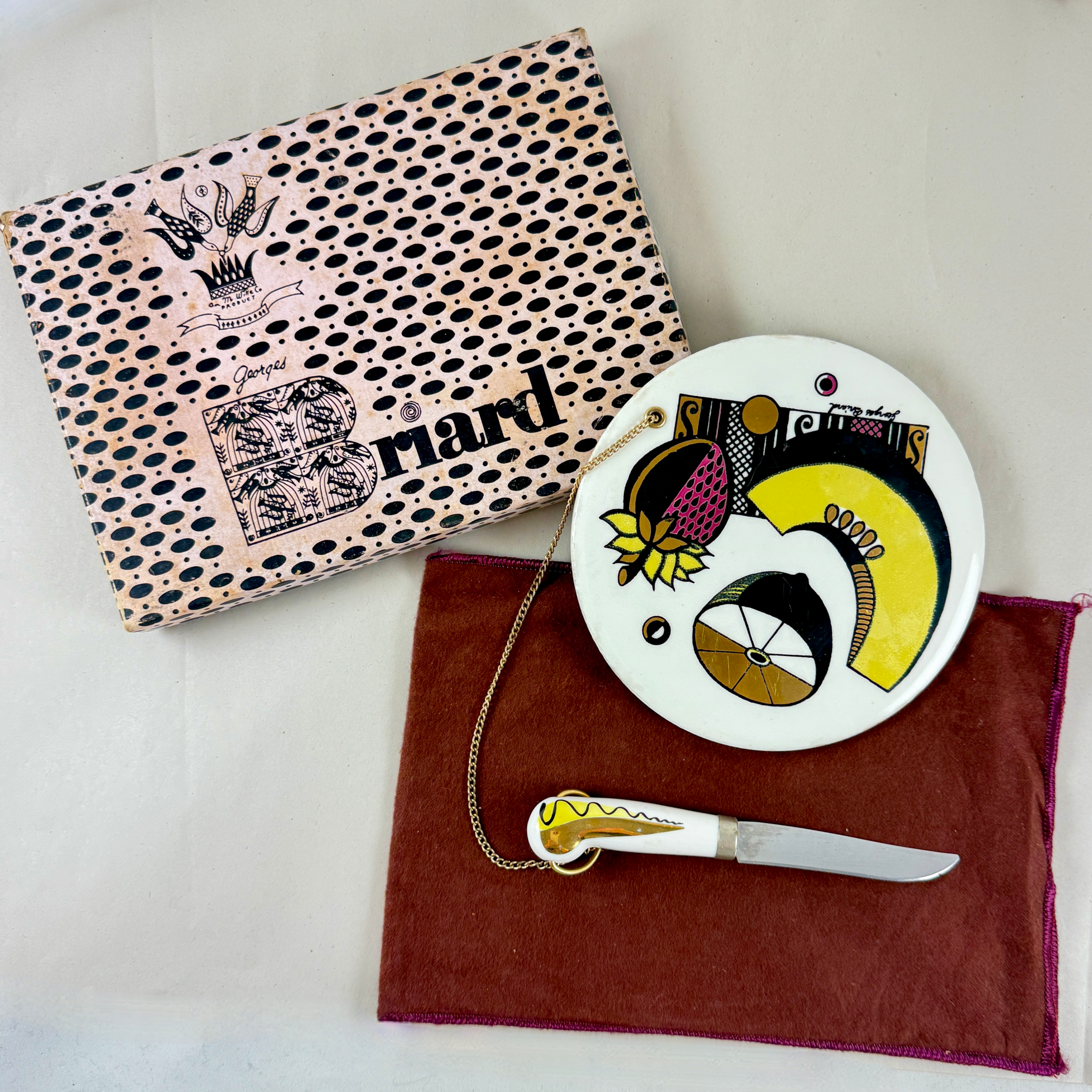 From Georges Briard, in the Ambrosia pattern, a cheese board with an attached knife, complete with storage pouch and the original box, circa 1957-1967.