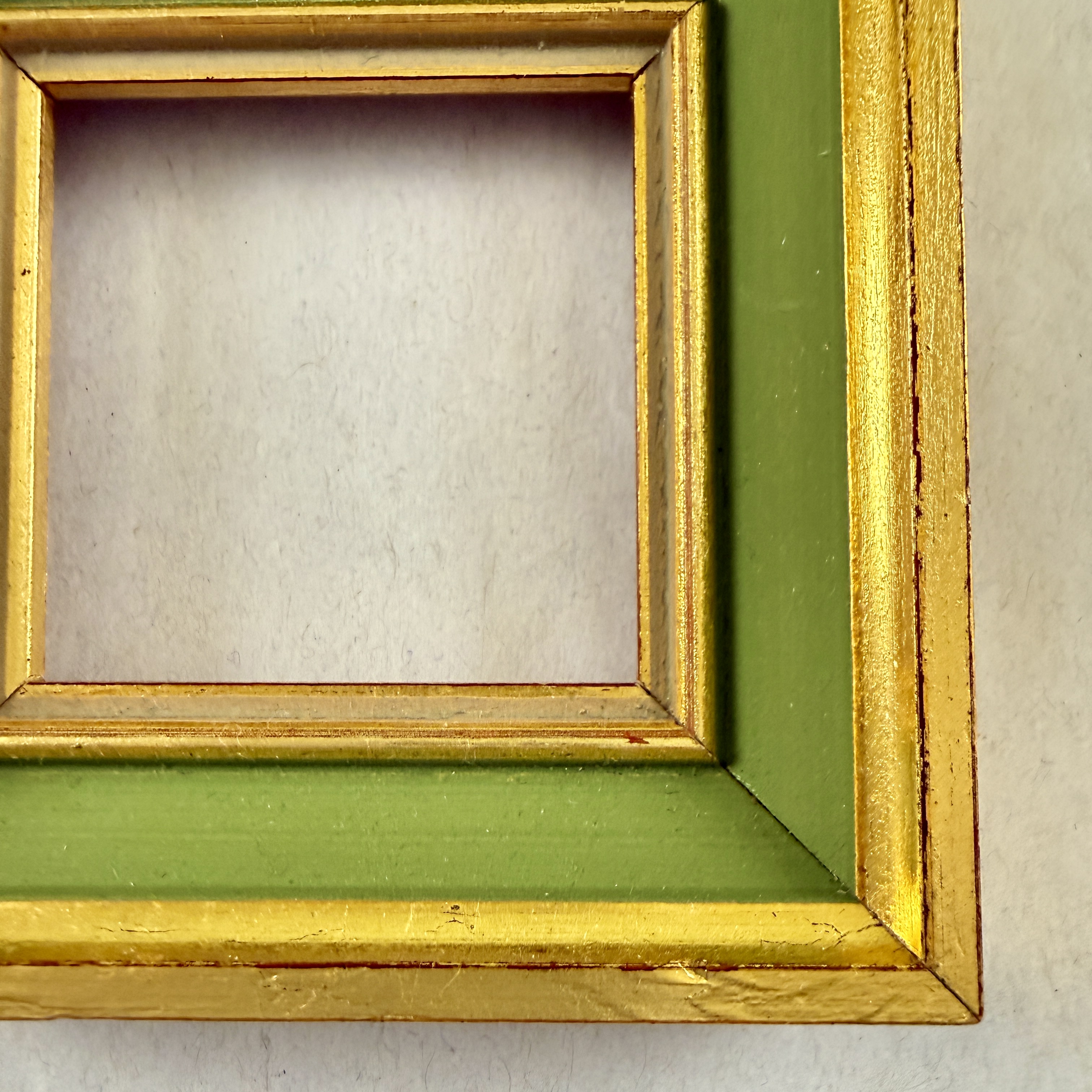 Gold leafed with an inner border painted in green.