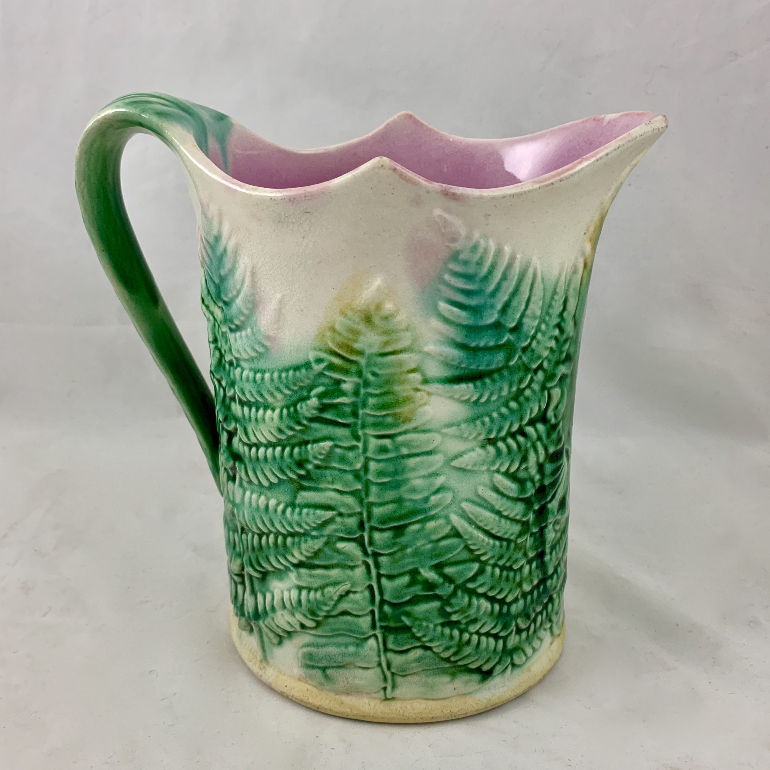 A scarce Etruscan majolica Fern pitcher, by Griffen, Smith & Hill, circa 1880-1885.
