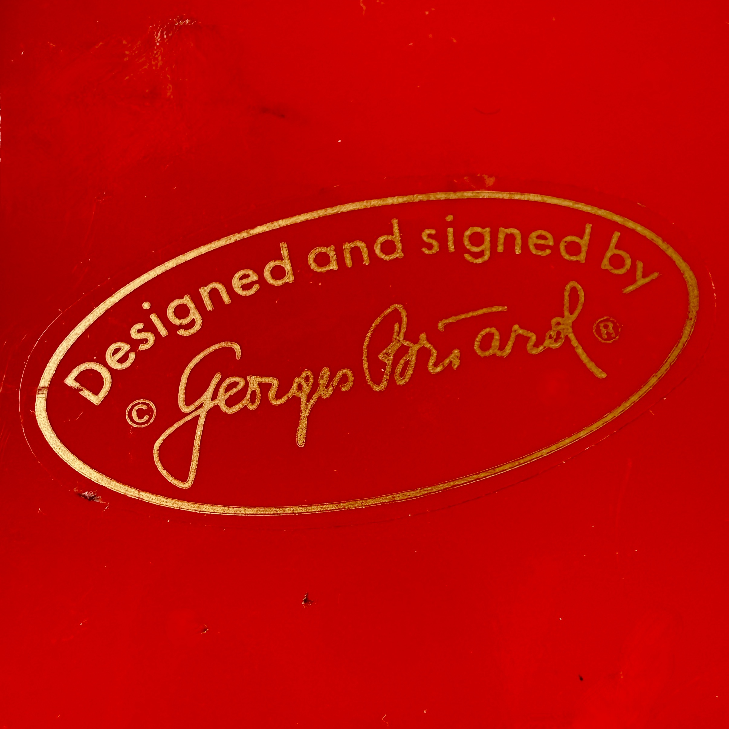 With the original labels on the bottom: Designed and Signed by Georges Briard, Made in Japan.