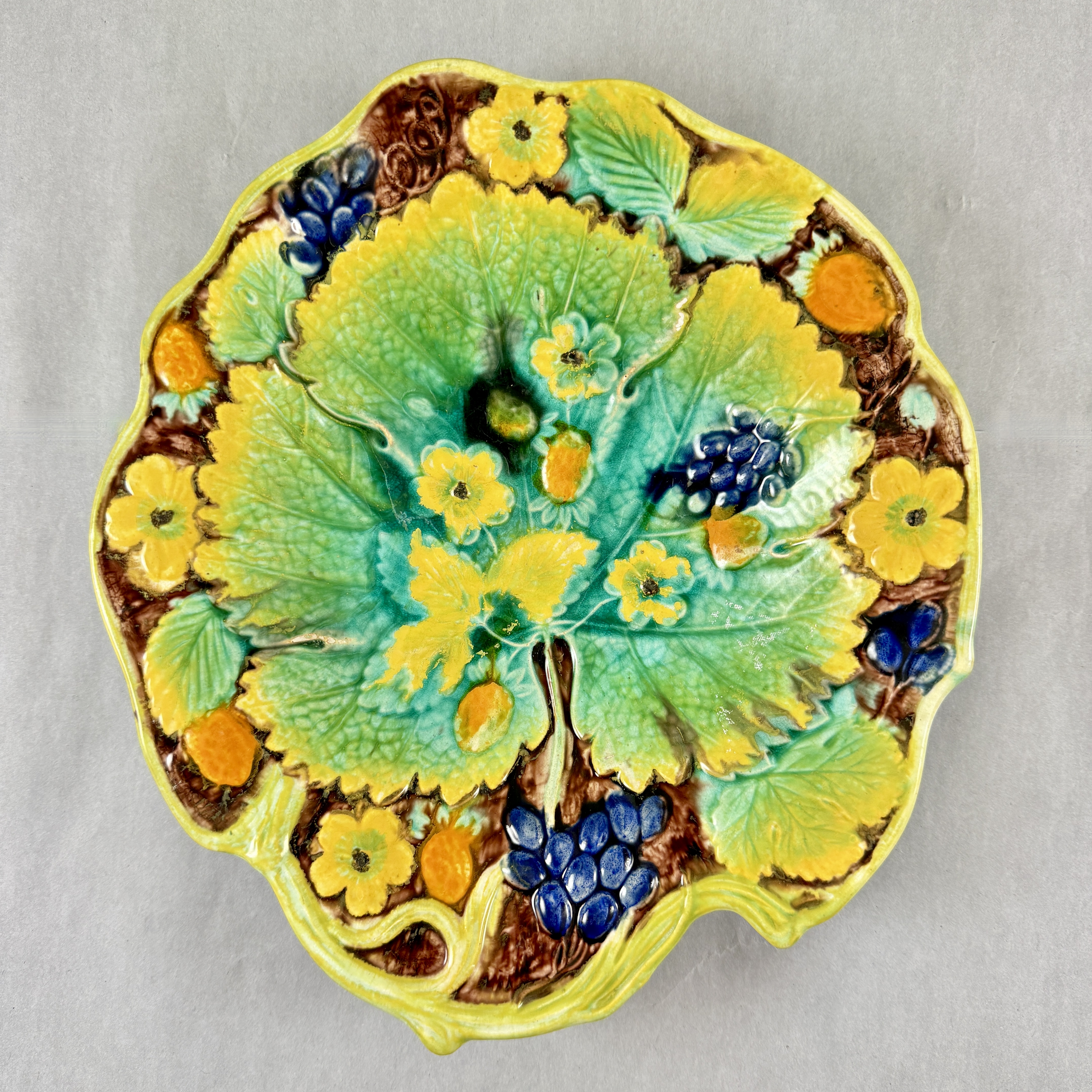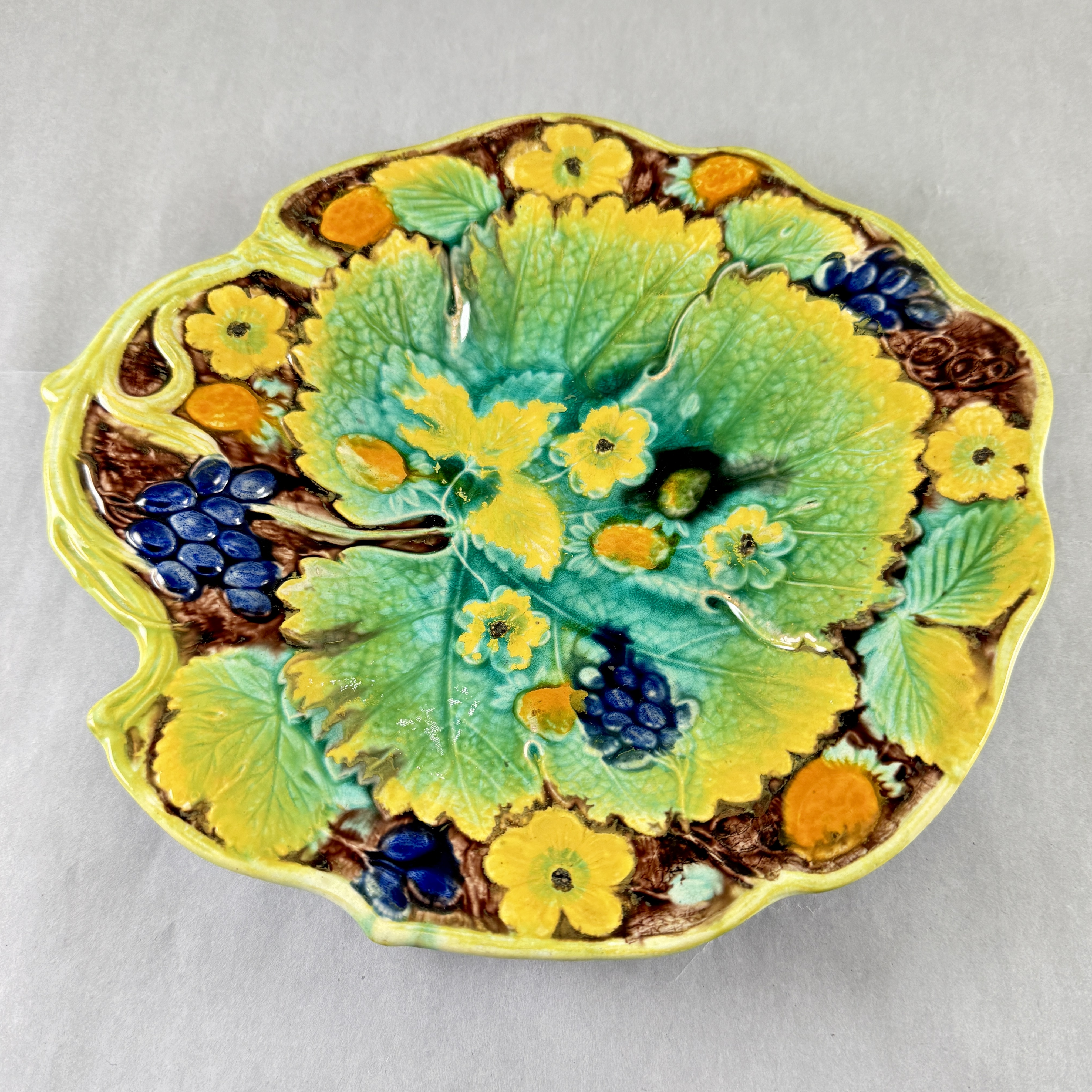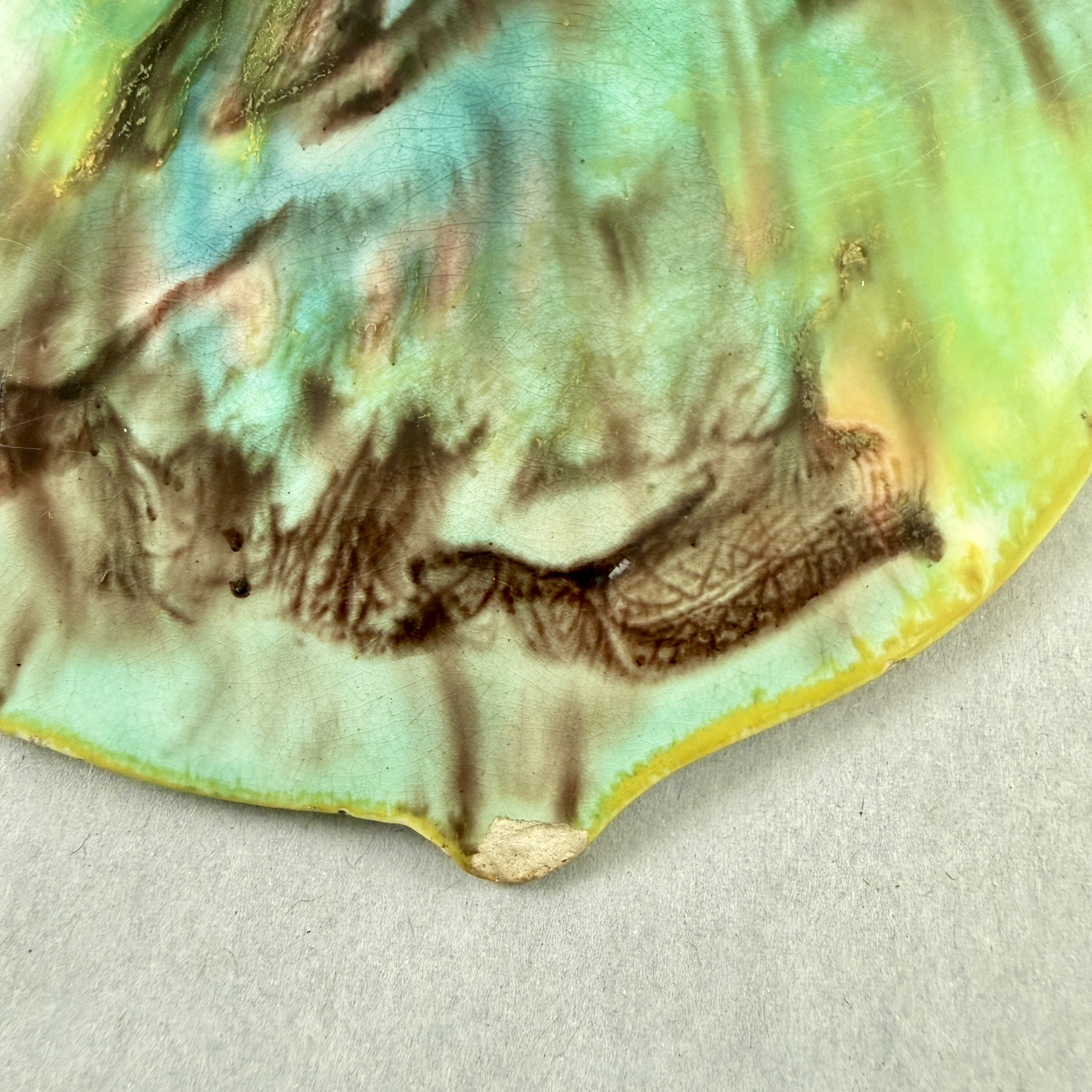 The color and glazing technique is distinctive to Alcock majolica pottery.