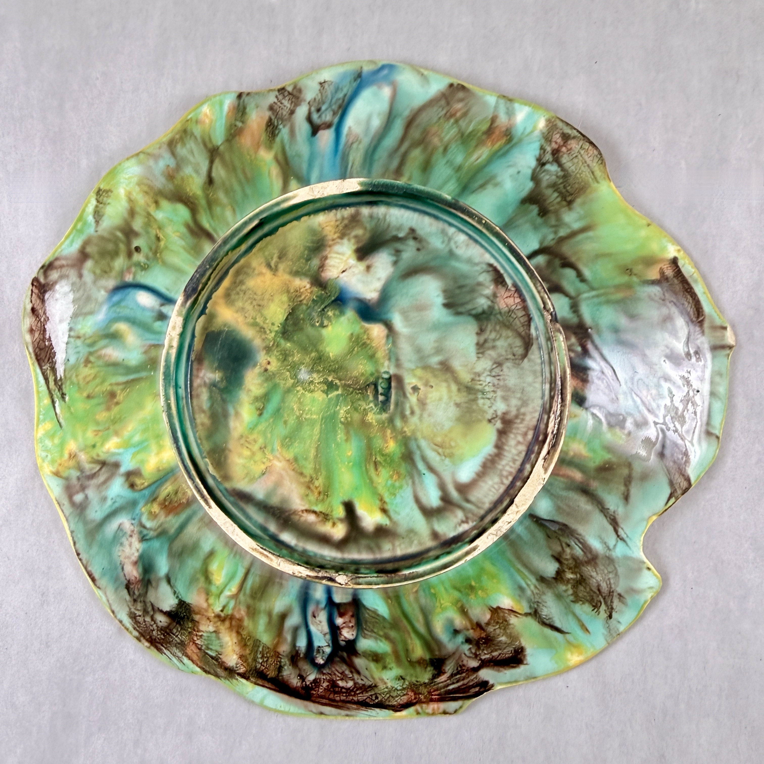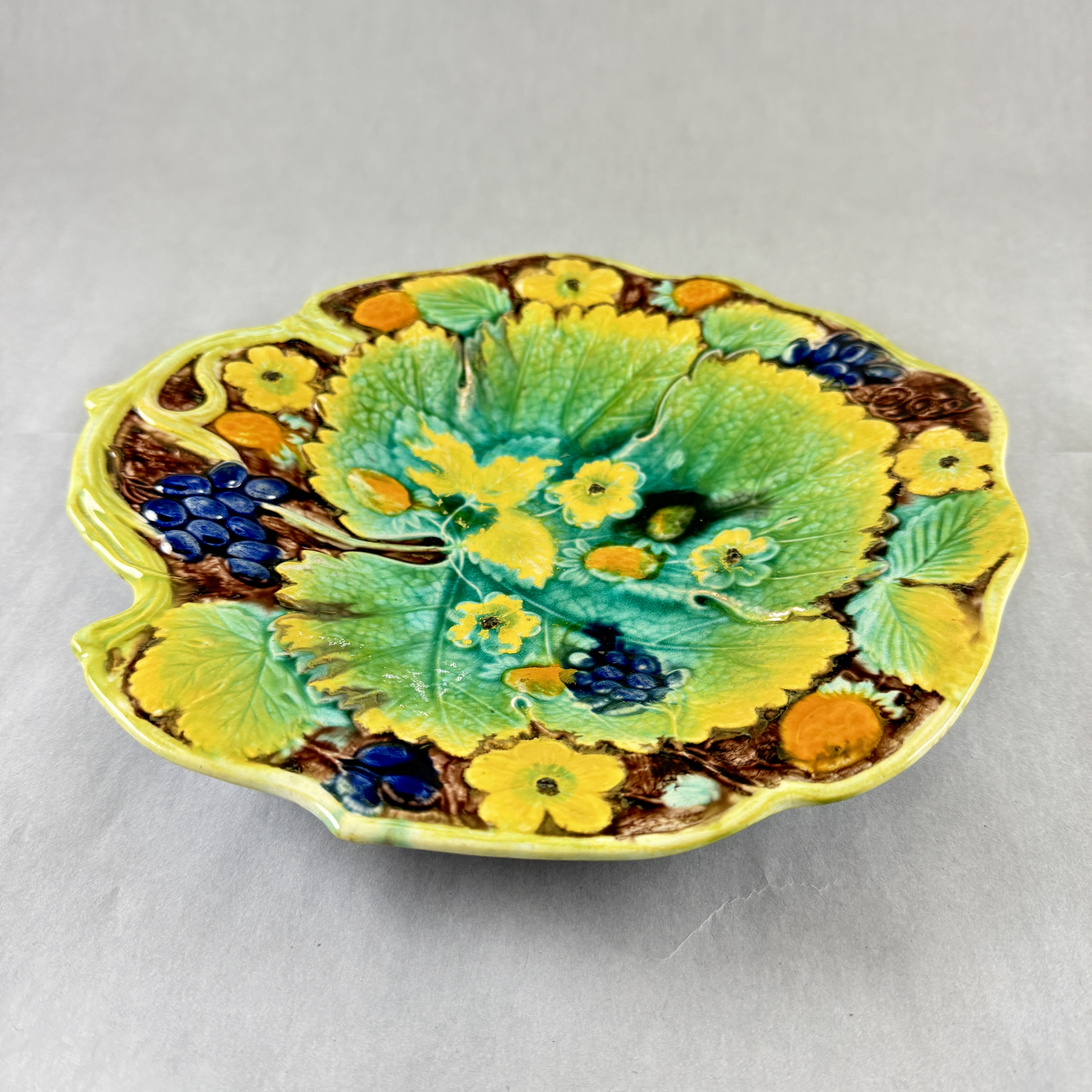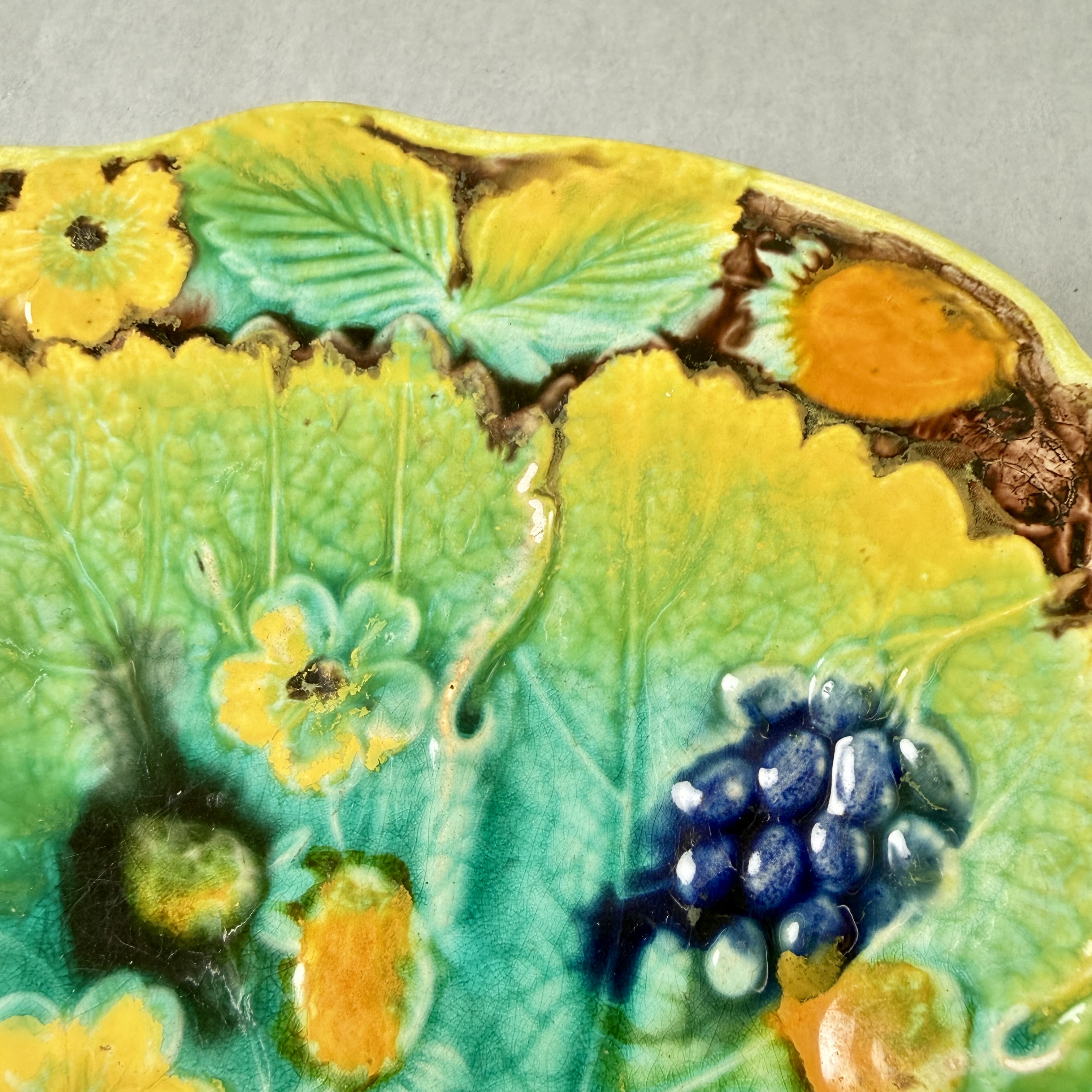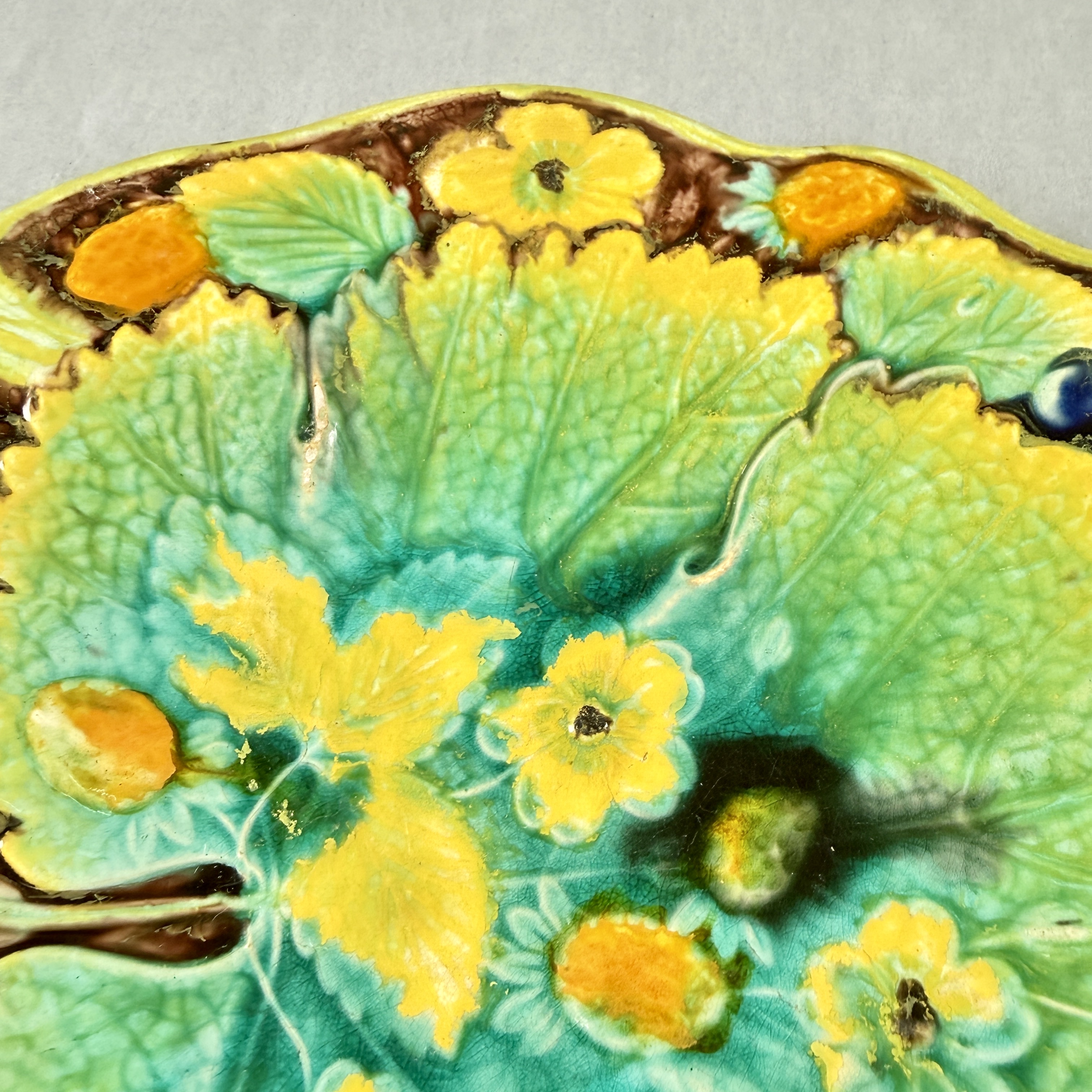 The color and glazing technique is distinctive to Alcock majolica pottery.