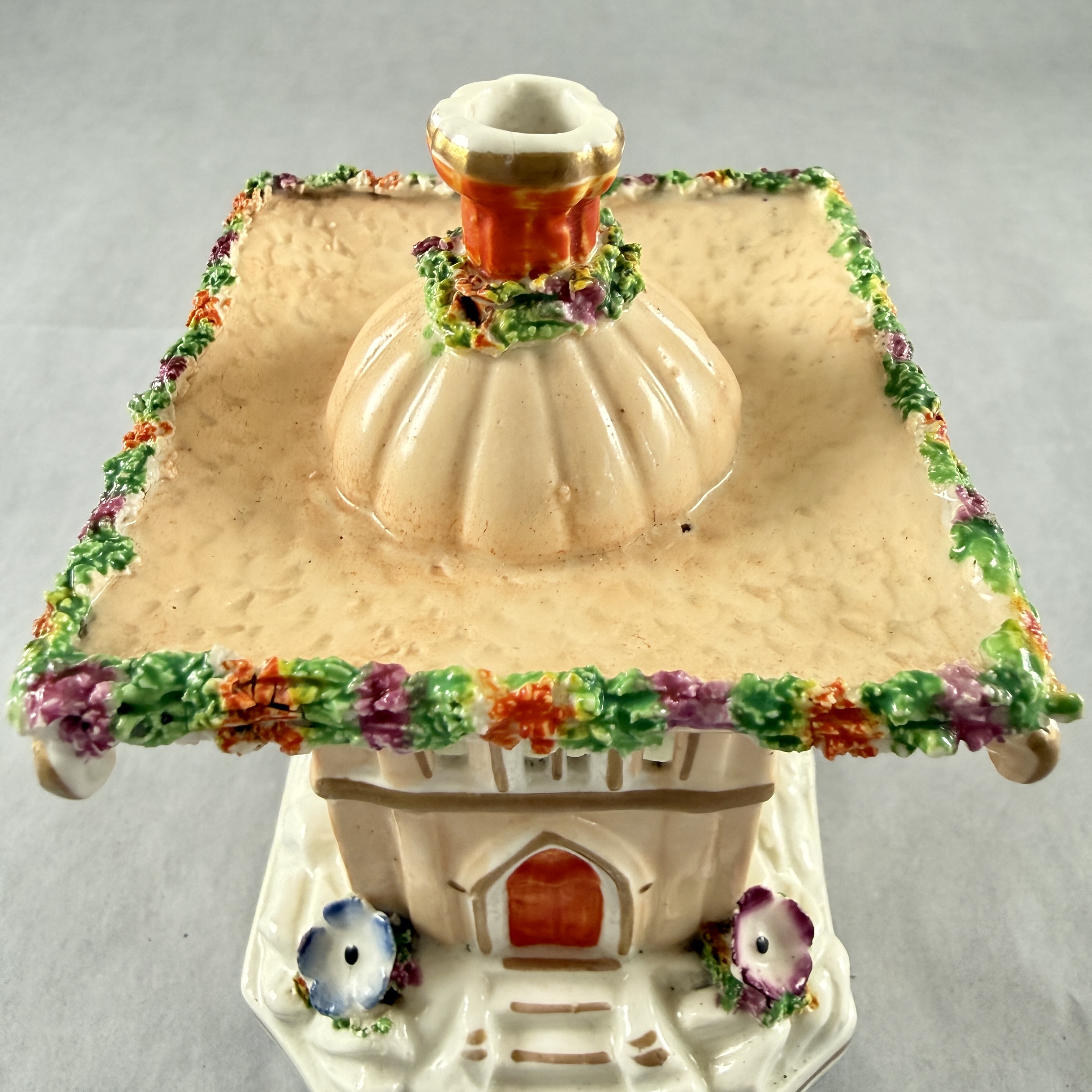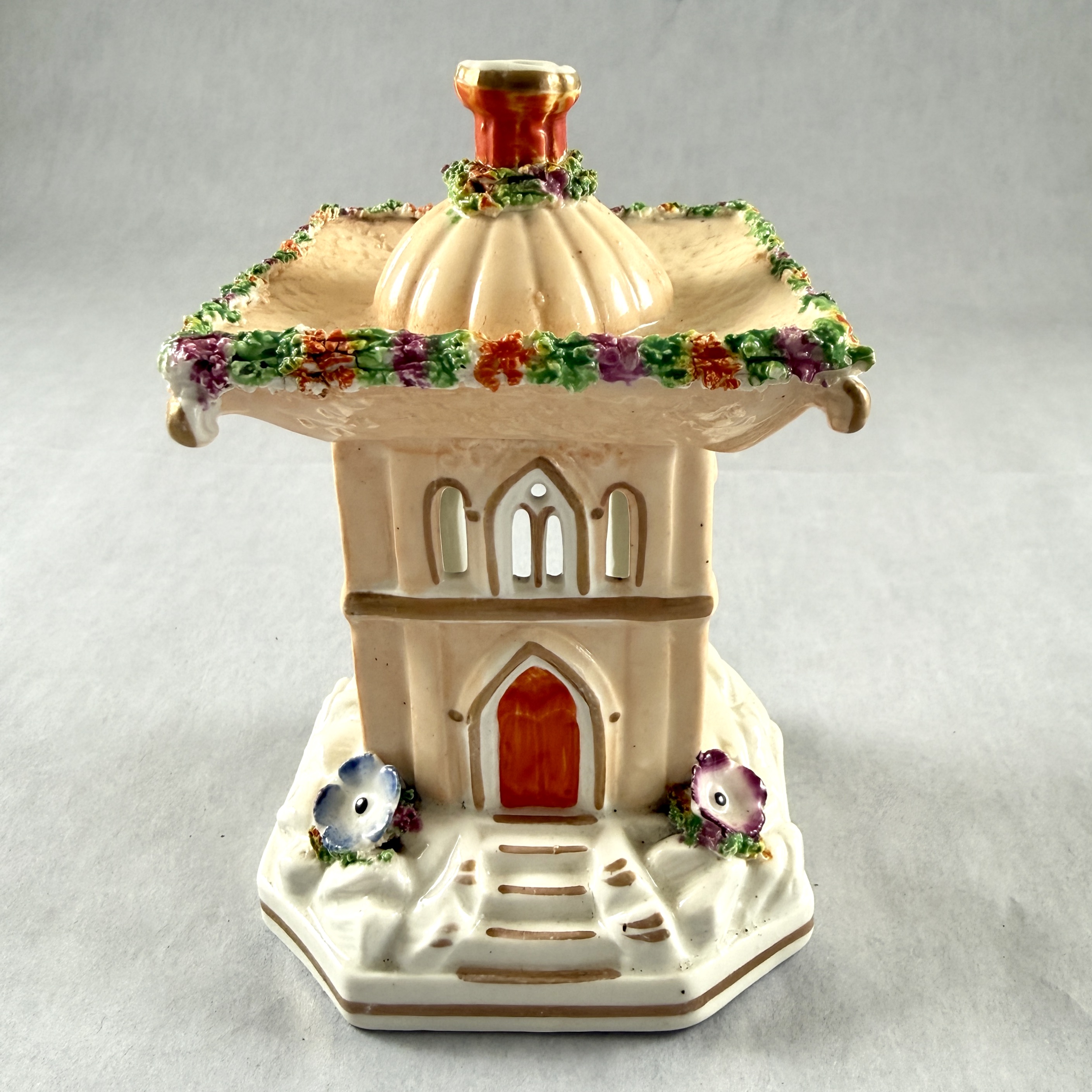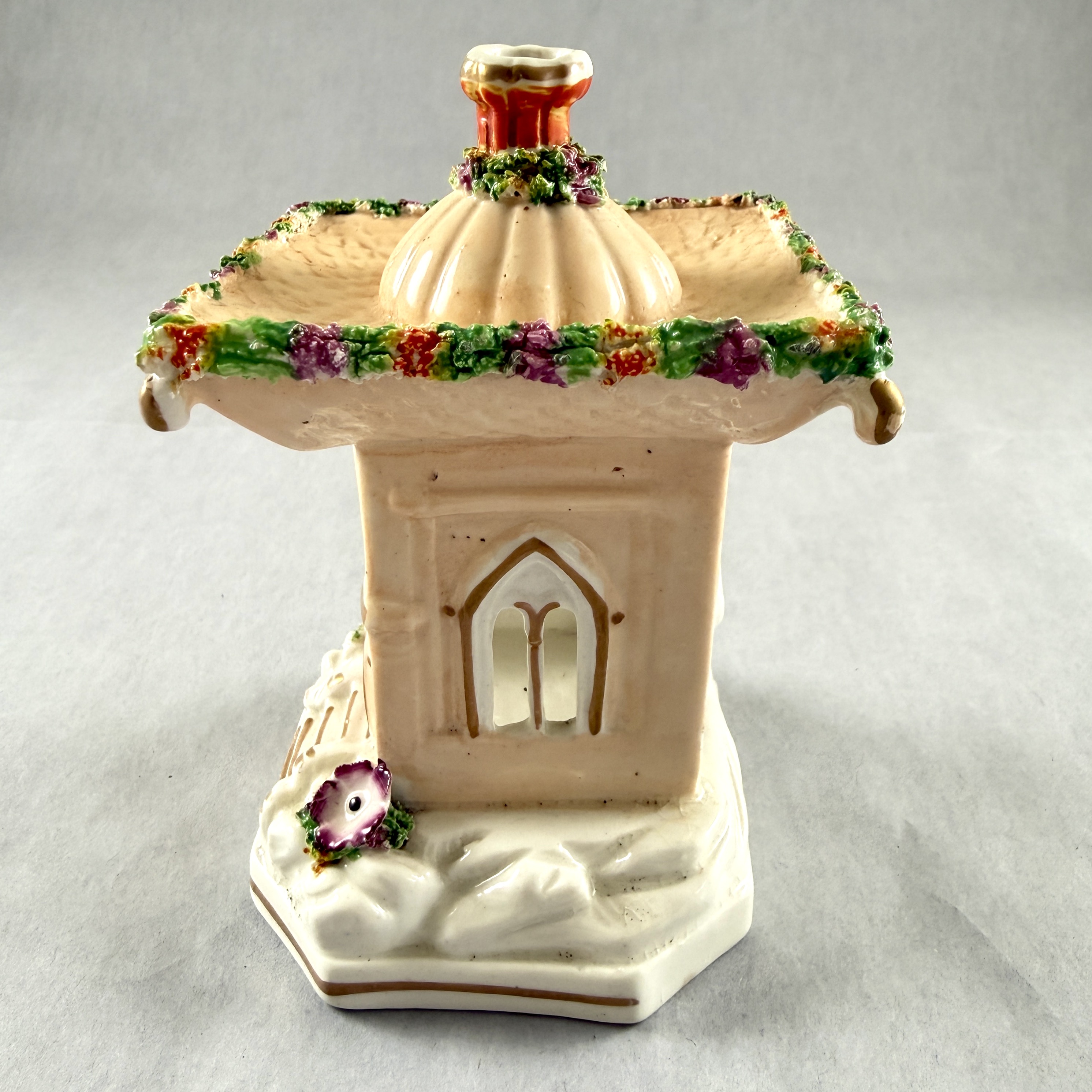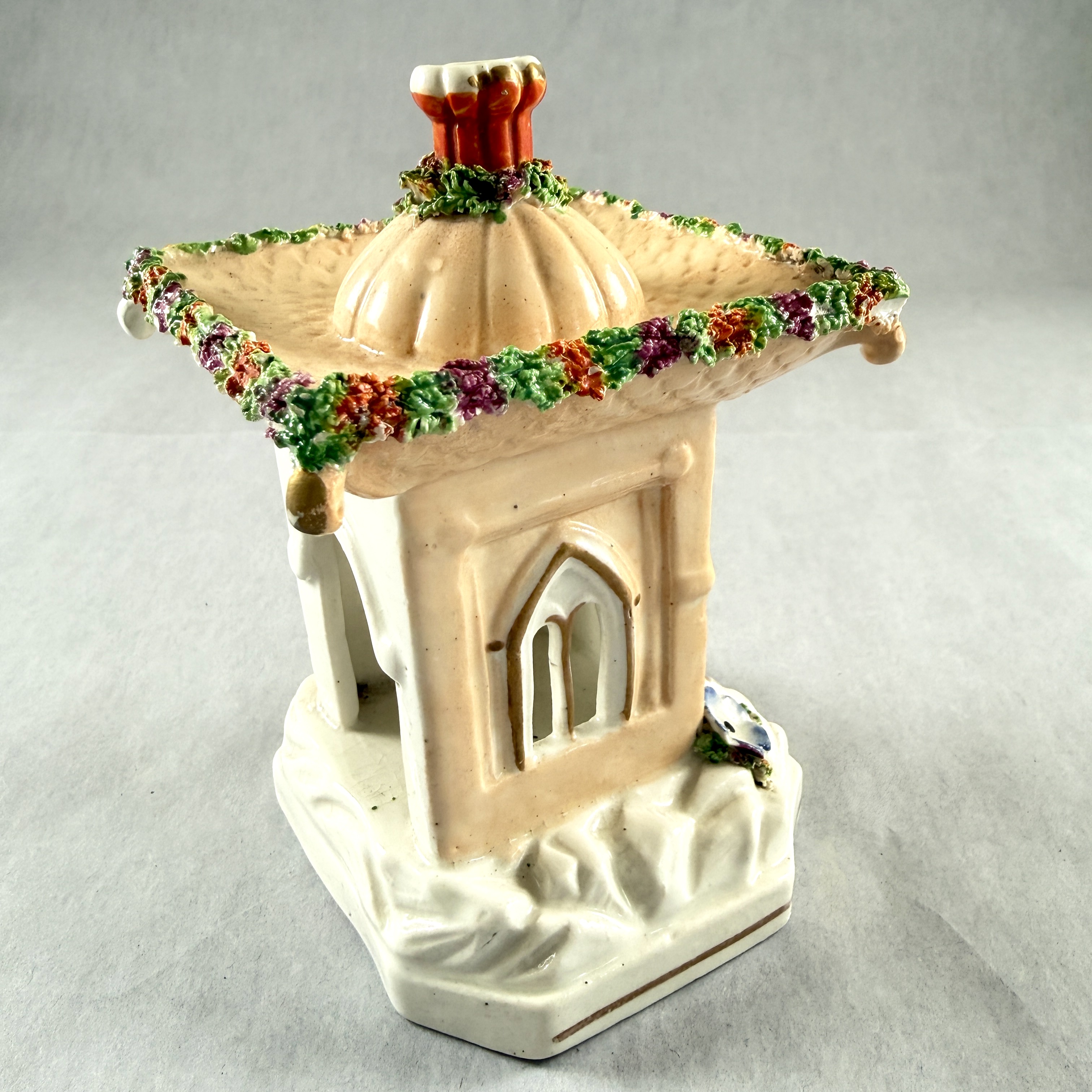 Pastille burners were shaped as dovecotes, cottages, churches, castles, and flower-covered summer houses.
