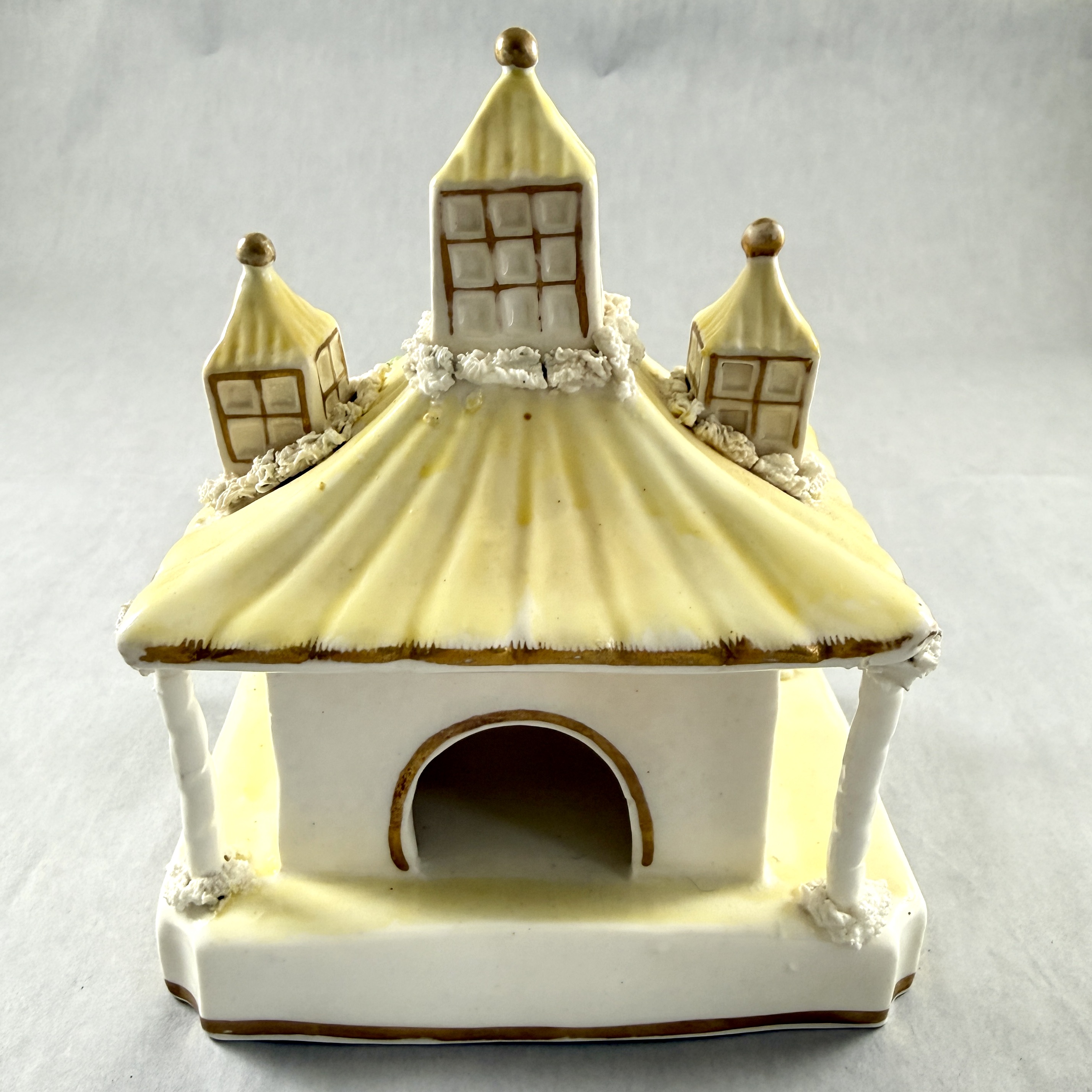 Pastille burners were shaped as dovecotes, cottages, churches, castles, and flower-covered summer houses.