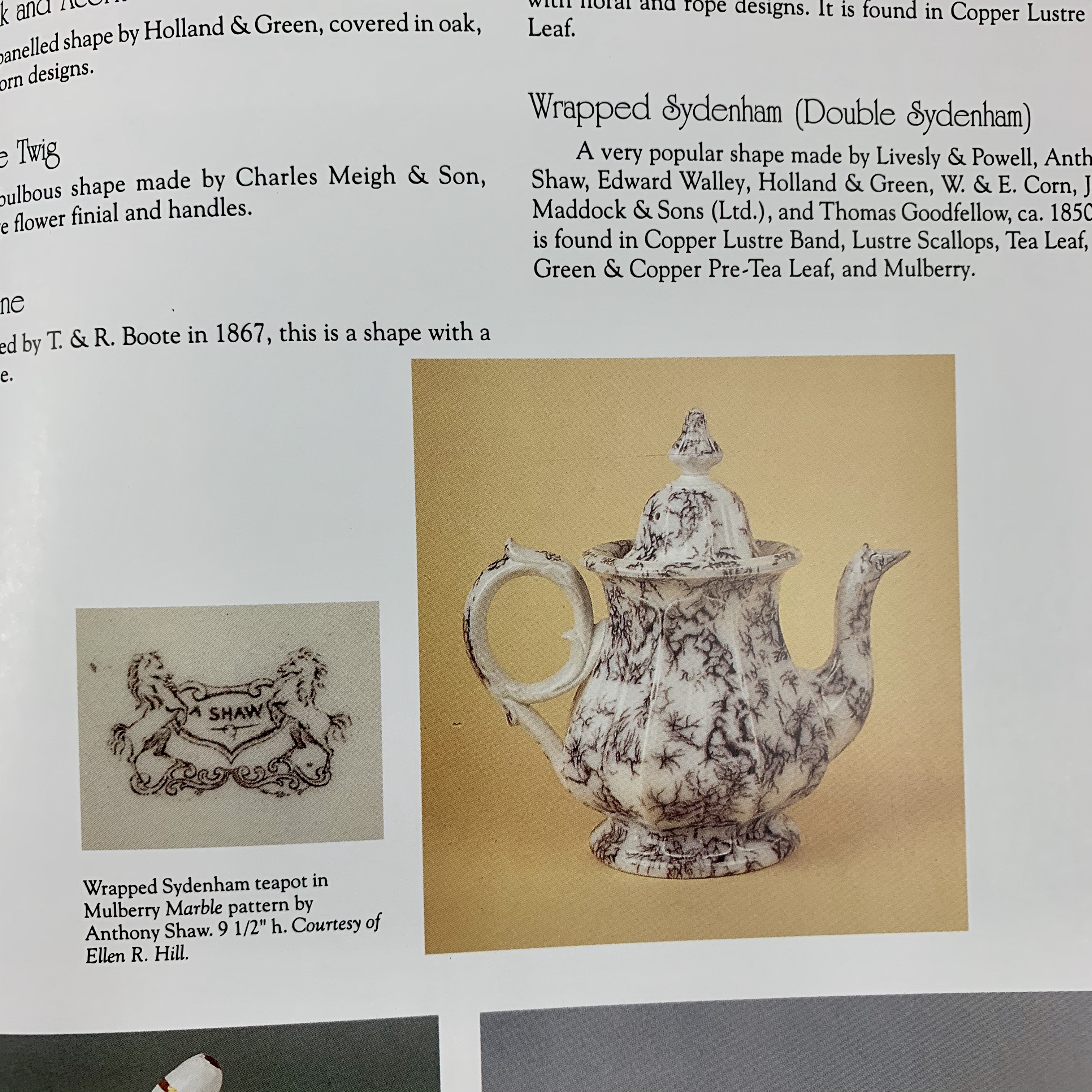 A collectors’ reference guide with an alphabetic listing of known shapes and their makers, illustrated with more than 700 color photographs. In depth coverage of makers’ marks, date lines and a price guide.